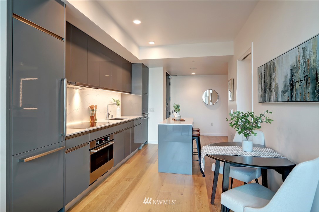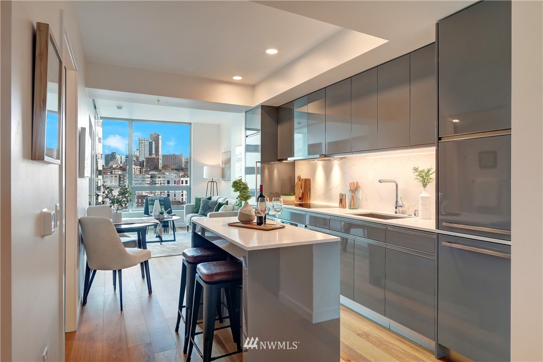 Modern sophistication awaits in the sought after Nexus condos. Light bright interior a perfect oasis from the stresses of daily life. Attentive details designed into the stylish kitchen & living spaces. Relax in the cozy LR & enjoy the ever changing skyline. Large office space for all your work-at-home needs, or perfect home theatre/gaming rm. Smart automation system throughout. Secure garage w/assigned parking & EV charger. Gorgeous state-of-the-art amenities include lavish top floor deck, private dining facilities, game room, theatre room, fitness center, co-working spaces & dog run w/wash area. LEED Gold Certificate for green building design. Steps to Amazon campus, Lake Union + tons of dining & entertainment options. Don’t miss out!!!