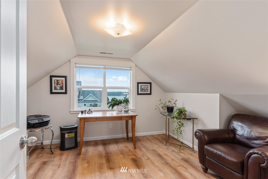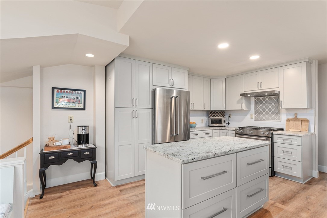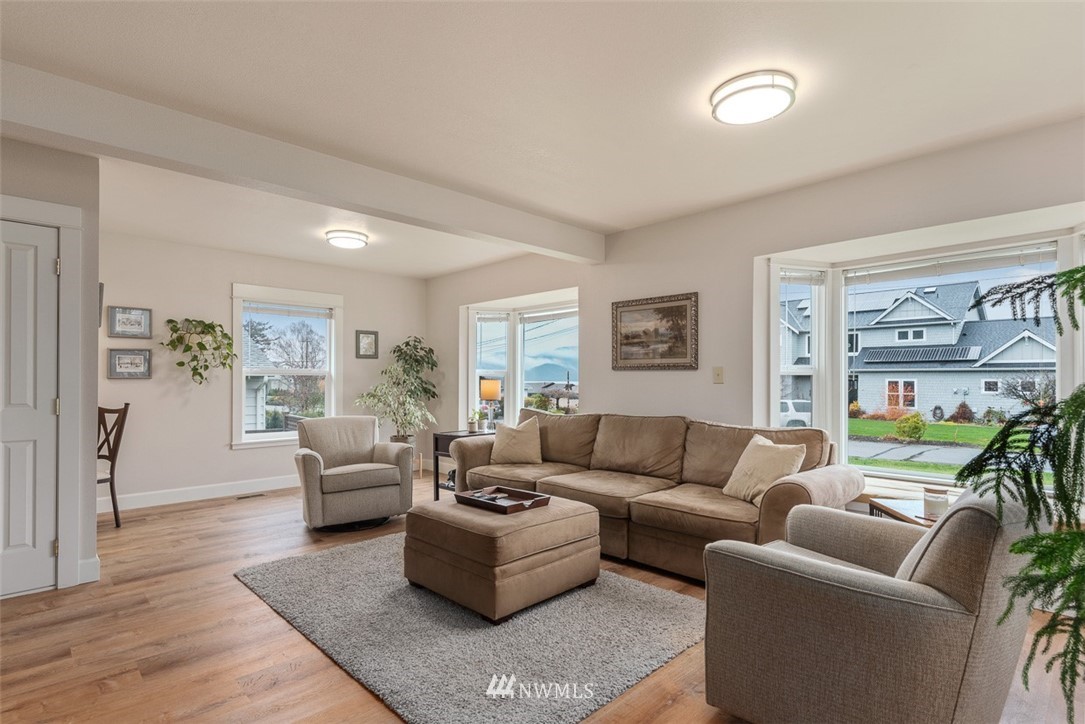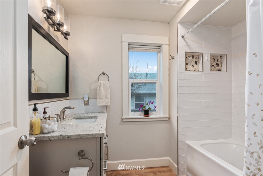 Beautifully updated home in very desirable Old Town with views of the Guemes Channel. Comfortable living room is filled with natural light plus bonus window seating & office nook. Well appointed kitchen with ss appliances, island, honed granite counters & banquette seating dining area. Primary bedroom suite with walk-in closet & full bath on the main level plus two bedrooms upstairs. Fully finished basement has laundry, full bath, storage & two larger areas gives multitude of uses - rec room/gym/office/more. Wonderful corner lot, partially fenced boasting stone patios & options of un/covered deck space. Off street parking & 2 car garage with mudroom landing entrance into the home. Just wait until you experience the charm of this house.