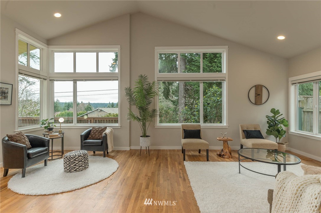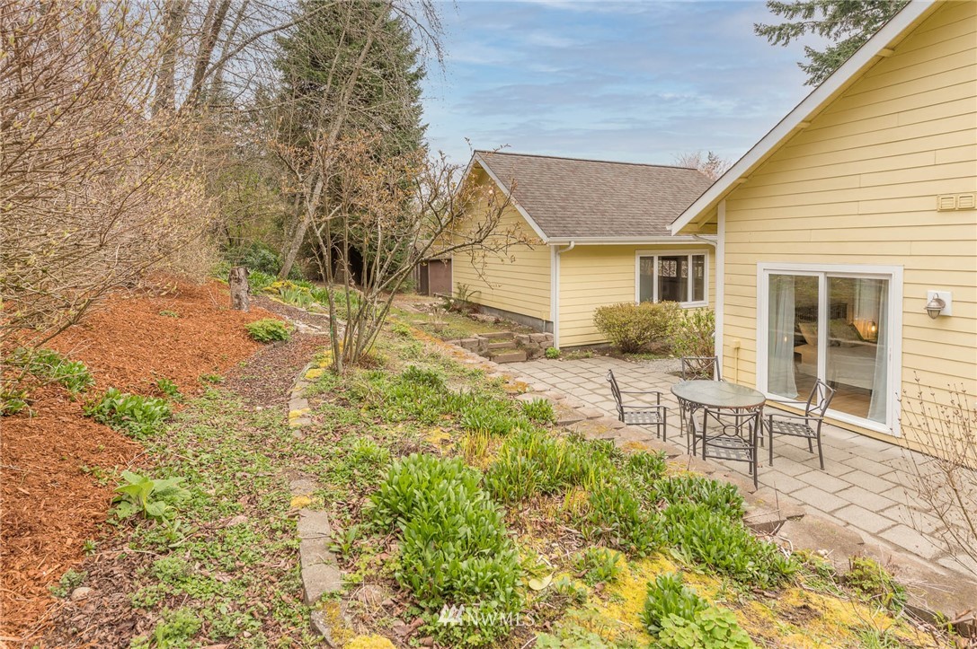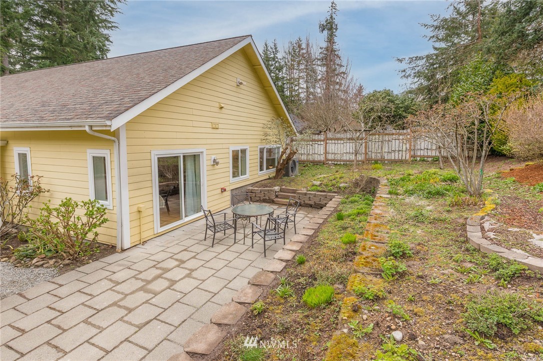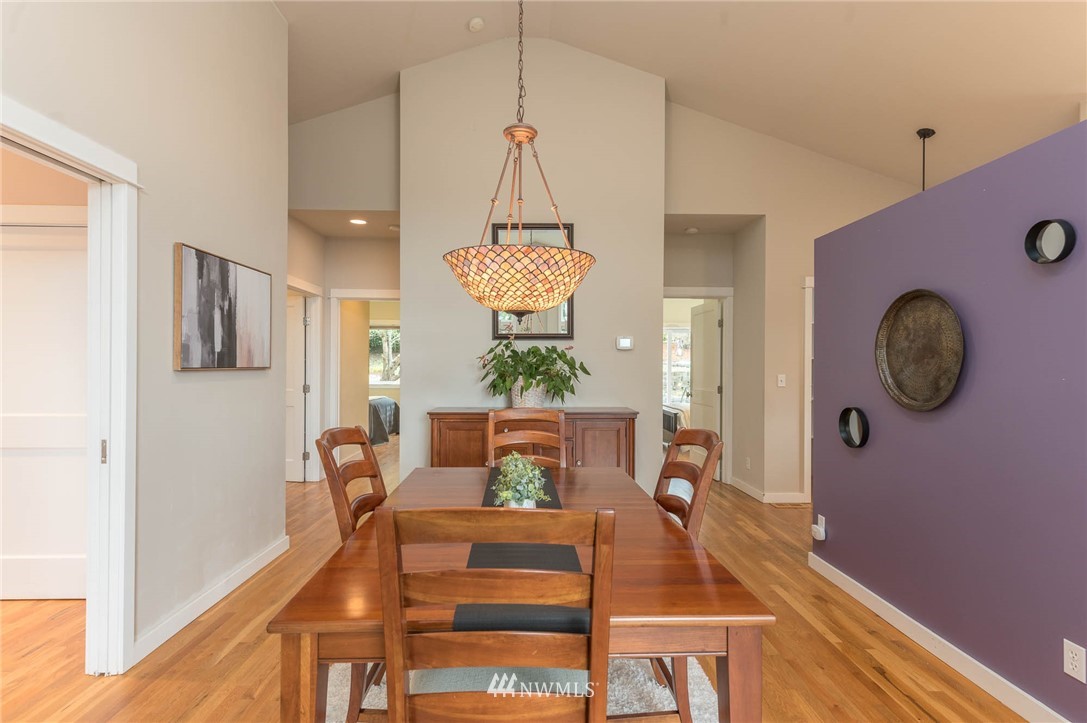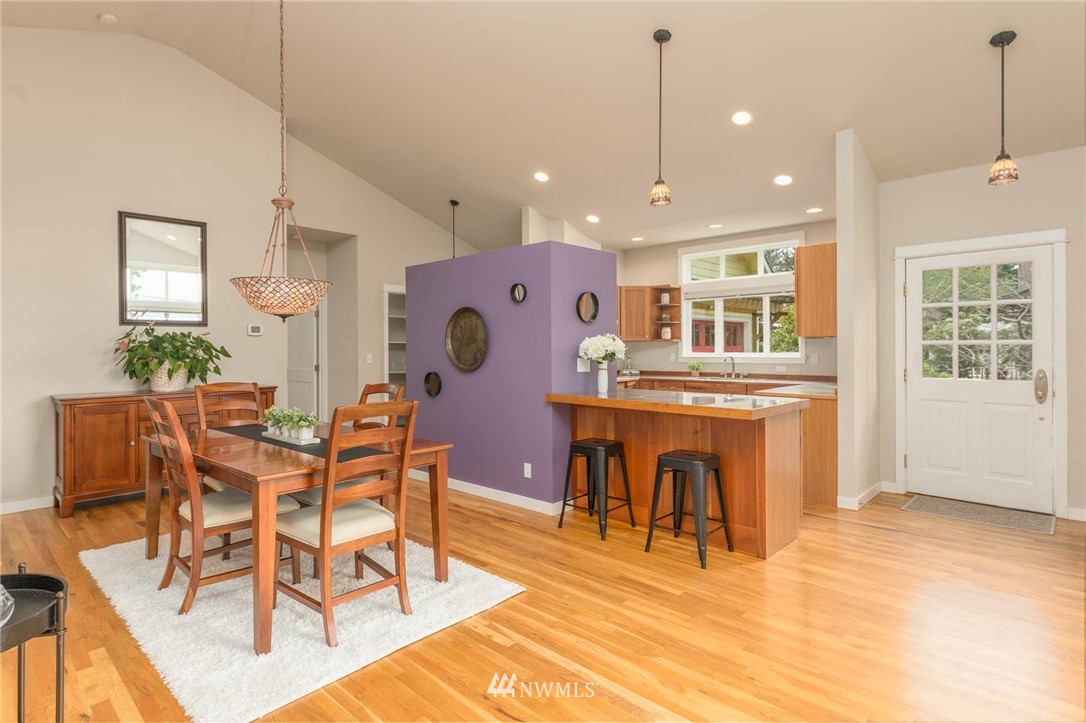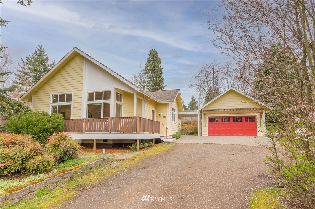 Here, a perfect balance of Bainbridge Island’s living in Winslow: a single level, stylish home, featuring vaulted ceilings, and a large wall of south & west facing windows, together create an airy and bright living space. Two bedrooms plus a spare room for office, den, guests, all connect to an open concept dining, living and kitchen area. Warm hardwood flooring throughout! A favorable breezeway connects the two-car garage. The home is surrounded by fruit trees, distinct gardens for growing flowers and food, and patios and decks for entertaining in every season. One block from schools, a moment from shopping and restaurants, natural areas, and the beach! Take root in the new spring and live in abundance in the heart of Bainbridge Island.