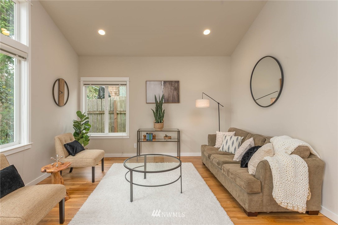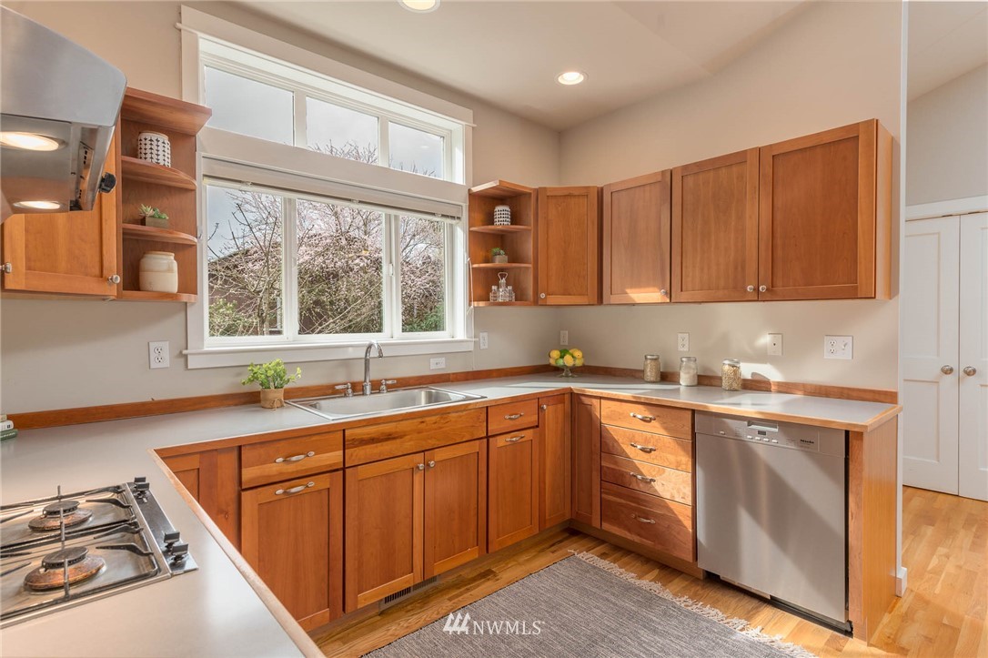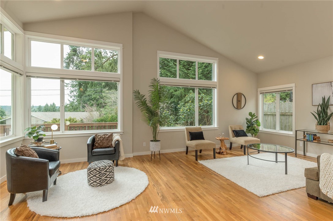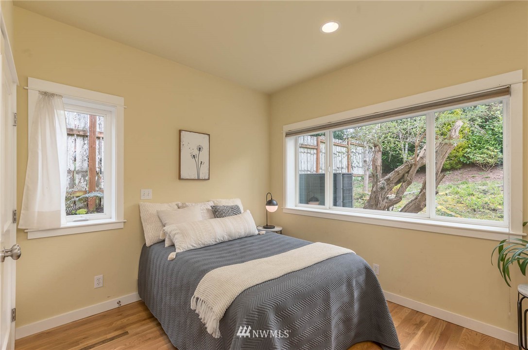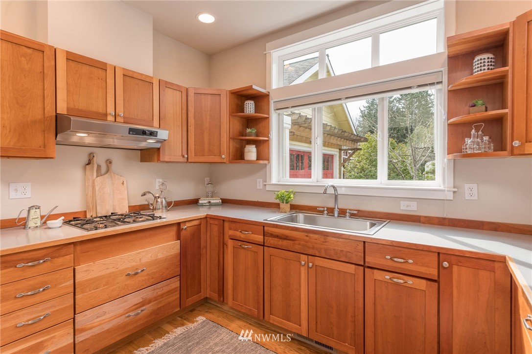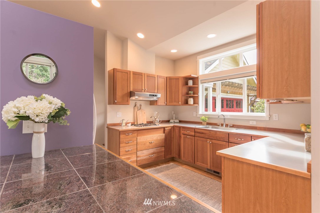 Here, a perfect balance of Bainbridge Island’s living in Winslow: a single level, stylish home, featuring vaulted ceilings, and a large wall of south & west facing windows, together create an airy and bright living space. Two bedrooms plus a spare room for office, den, guests, all connect to an open concept dining, living and kitchen area. Warm hardwood flooring throughout! A favorable breezeway connects the two-car garage. The home is surrounded by fruit trees, distinct gardens for growing flowers and food, and patios and decks for entertaining in every season. One block from schools, a moment from shopping and restaurants, natural areas, and the beach! Take root in the new spring and live in abundance in the heart of Bainbridge Island.