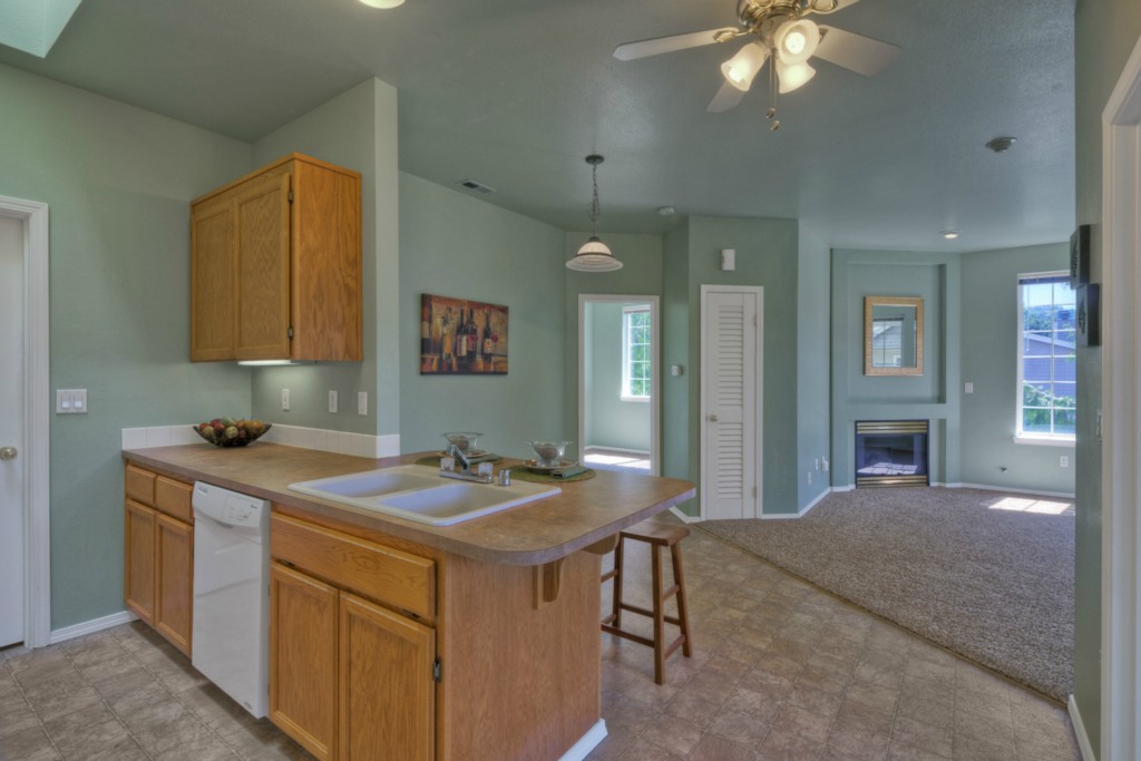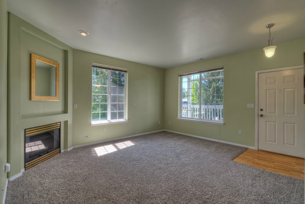 Rare 3 bed/1.75 resale in the Berrywood Condos. New in 2002, this MOVE IN READY end unit is 1100 sq ft, w/ATTACHED 1.5+ garage that has inside stairs to the living space. There's a roomy kitchen with newer appliances that stay, NEW floor coverings & a separate utility room. Master has att bath & WIC. Second bath is totally updated. There's also a 20'X6' covered front patio! Amazing commuting location, near Hwy 512, Hwy 167, Meridian, Sounder Train Station & South Hill Mall. FHA/VA approved.