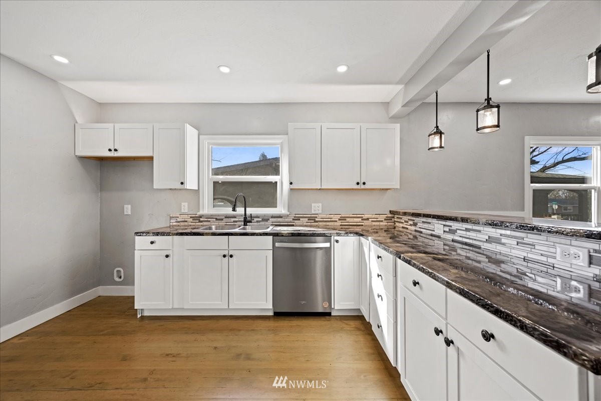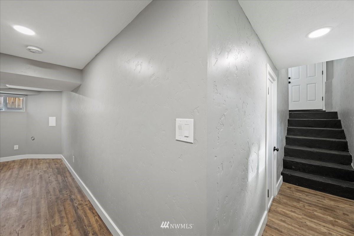 This home is absolutely charming! Right away you will notice the new front porch. Walk inside and immediately see hard wood floors open living/kitchen floor plan and spacious bedrooms. The kitchen has new stainless appliances, lots cabinet storage, and tons of counter space. Headed out of the kitchen will be the laundry room area that has counters, storage cabinets and a sink! Walking downstairs to the basement you'll find vinyl flooring, leading to a master bedroom with a walk in shower. 4th bedroom or home office is tucked away in the basement as well with a walk in closet. Plenty of parking in the rear driveway with alley access for a small RV or boat! Have peace of mind with new recessed lighting, electrical, plumbing, windows and more!