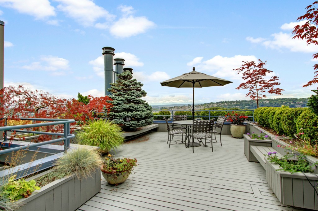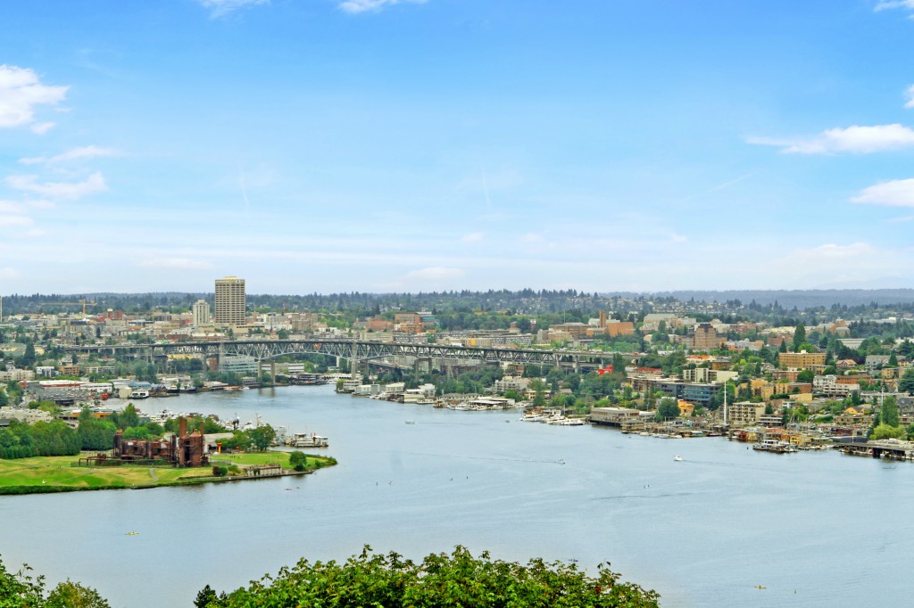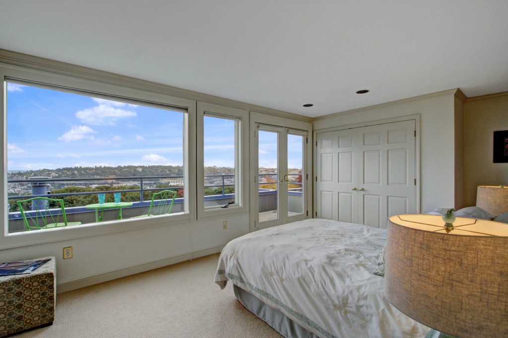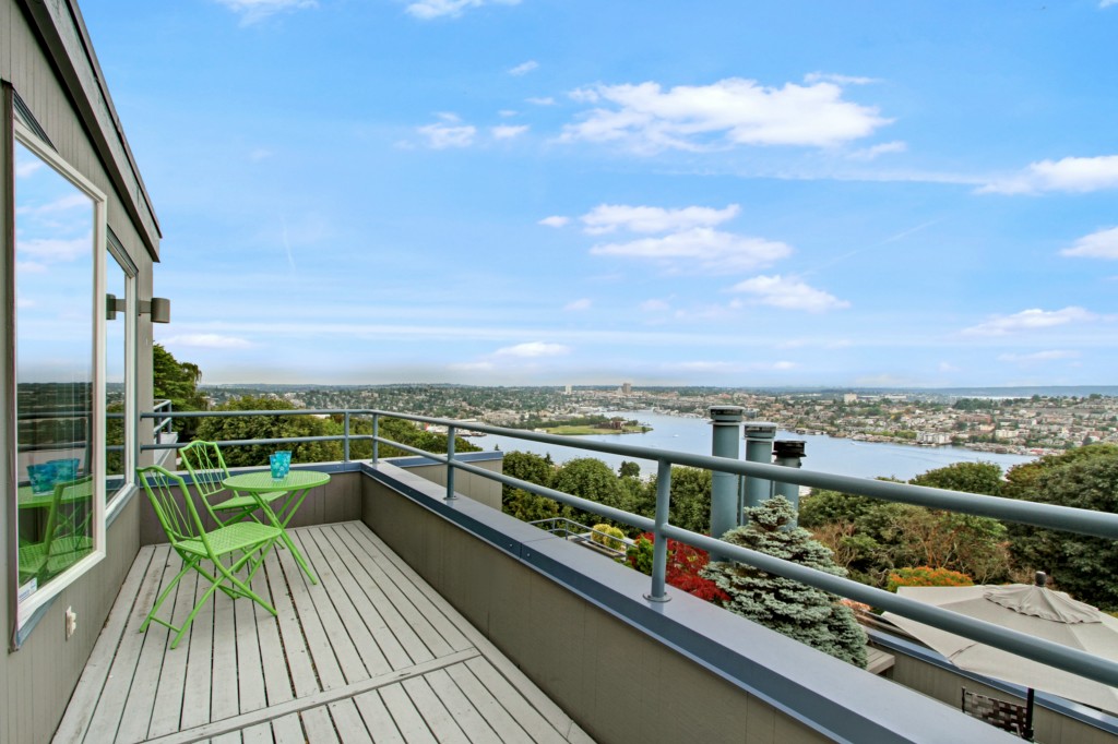 Spectacular, unobstructed panoramic views of Lake Union, Mt Rainier, Gas Works Park, Cascades & so much more! Fabulous townhouse style condo with a private garage is located next to a city park & a city greenbelt. The main living areas include a spacious living room with a wood burning fireplace & French doors to the amazing view deck, a formal dining area, 1/2 bath & updated kitchen. The 3rd level boasts 2 spacious bdrms, updated baths + another view deck! Close to South Lake Union & downtown!