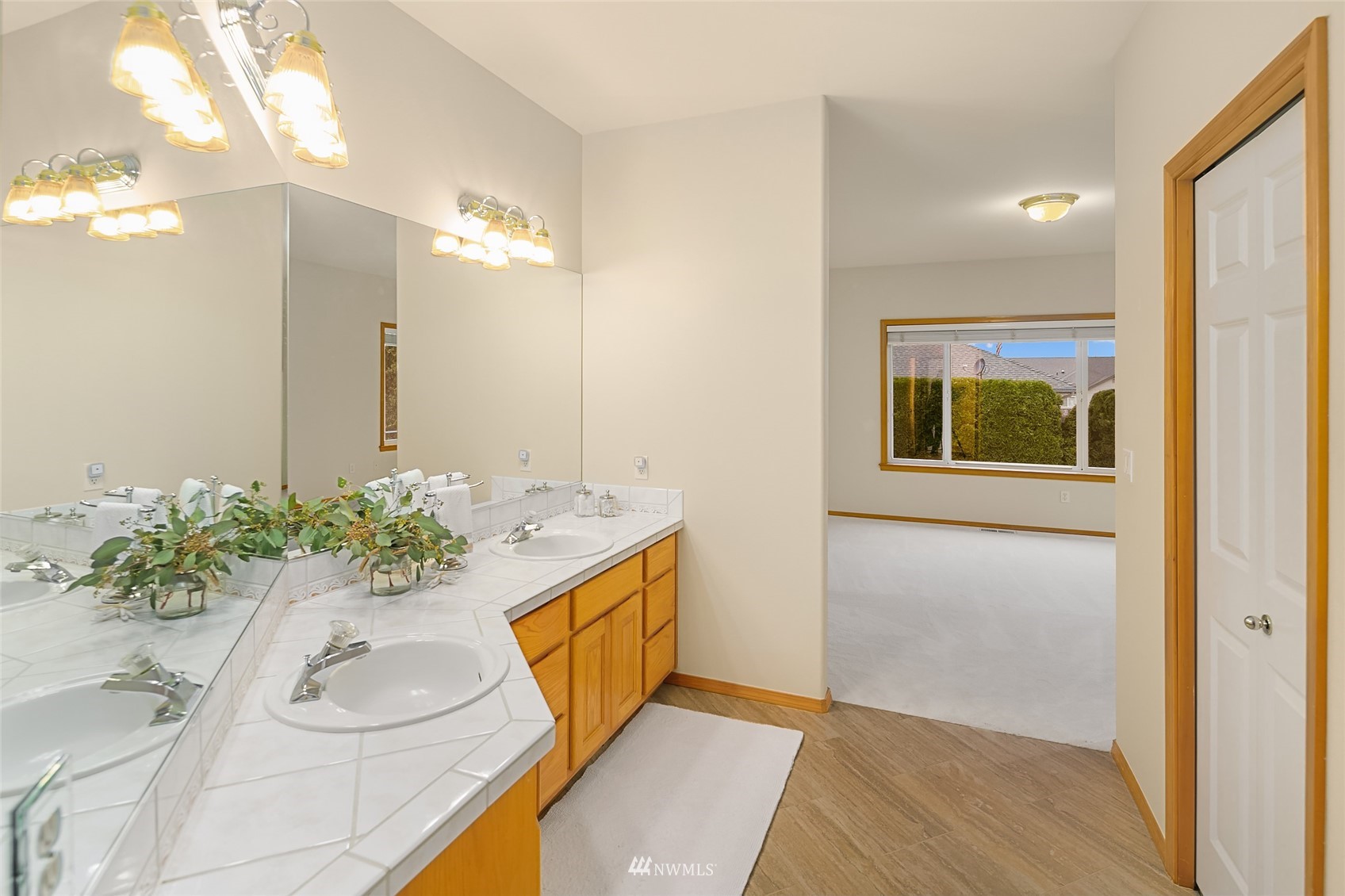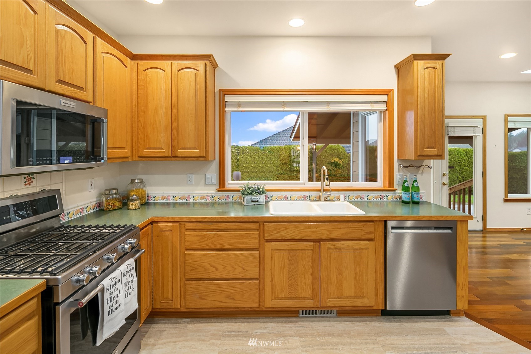 Estate sale. Nicely upgraded one story home on large, nicely landscaped corner lot in the desirable neighborhood of Candle Ridge. Engineered teak flooring throughout main living areas, new lux carpet at bedrooms, beautiful tile at hall and master baths, both with double vanities, vaulted ceilings. Lovely covered rear patio accents the surprisingly private rear yard. Fully irrigated yard front and rear. New furnace, heat pump, roof. All appliances stay. Take the wide sidewalks to the community park, playground & walking trails a few homes away. Close to shopping, dining, I-5, Medical, Dental, Pet Care & Fitness. Pre-listing inspection report available on request. Form 17 waived.