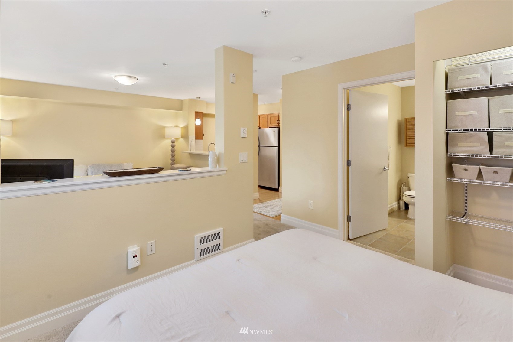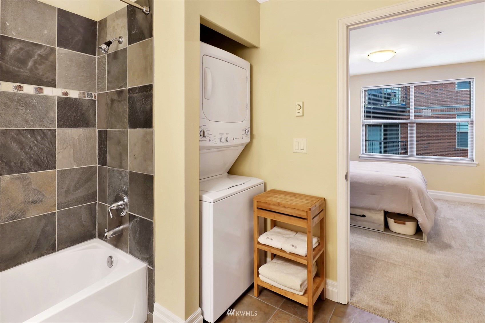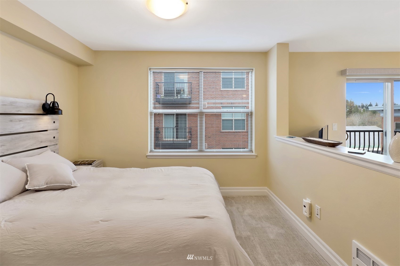 FAIRHAVEN! A cozy penthouse suite with southern exposure and views out to the courtyard. Fully remodeled and hardly used as a second home for meticulous sellers. Quartz slab counters, subway tile, bamboo entry & stylish lighting. This unit is on the top floor of sought-after Harris Square condominiums. Studio layout with a half wall separating sleeping area from living area. Large and luxurious bathroom. Full size stackable washer/dryer and balcony. Turn-key, sale includes all furnishings and a generous allocated secure underground parking spot. Fairhaven's endless amenities are right outside the door including trail access to the waterfront. Harris Avenue Condos are below rental cap - unit can be owner occupied or an investment rental.