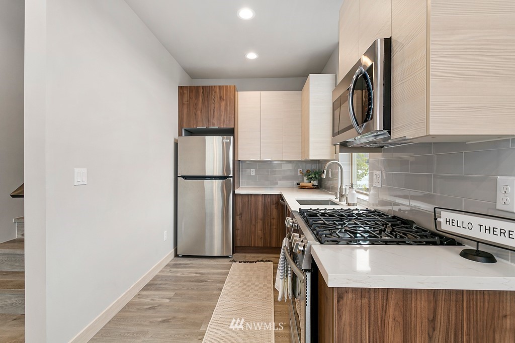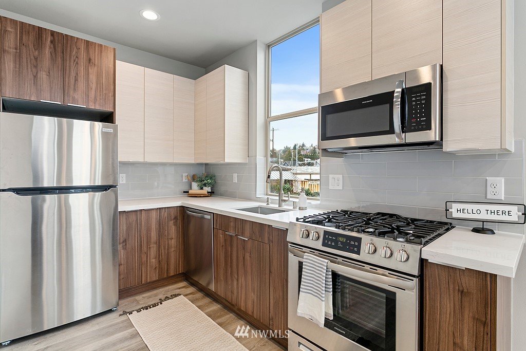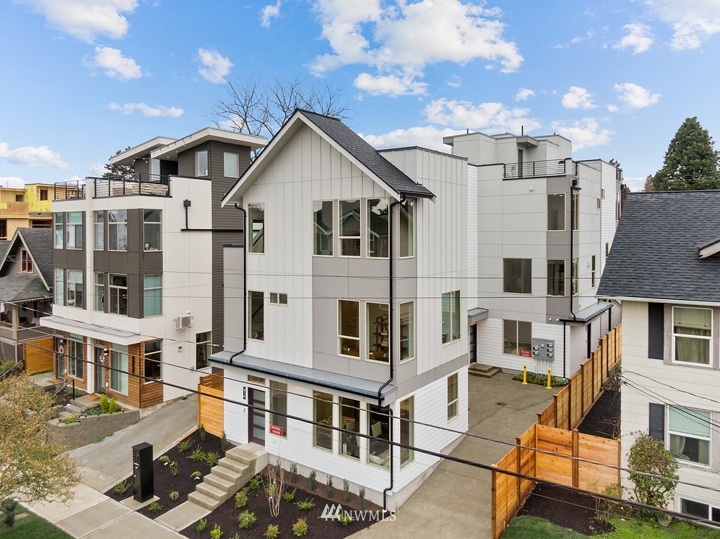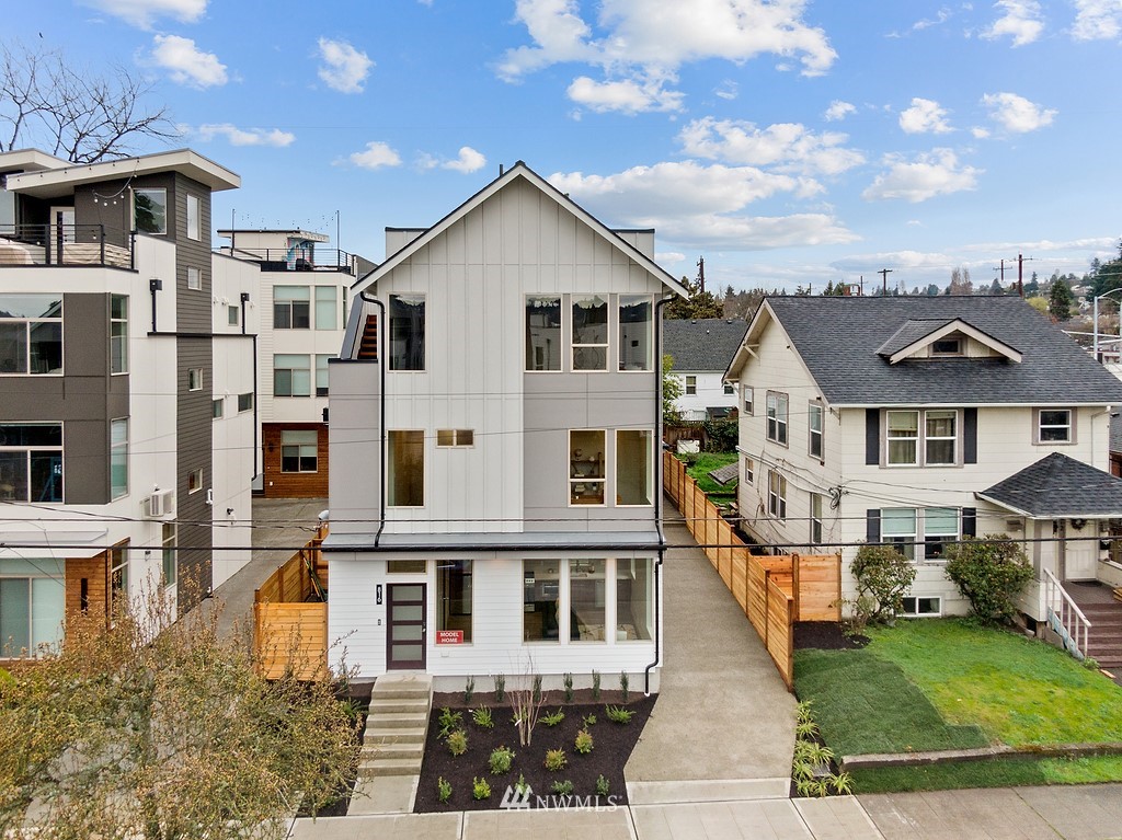 Last available home! This modern new construction 5-home community situated on a quiet residential street in Ballard not far from Market Street shops and restaurants. "Walker's & Biker's Paradise" with good transit and an easy commute into the city. Distinctive design features of the 814A floor plan include a sleek, modern kitchen, designer tile and stainless appliance package. The open concept living and dining area enjoys wide plank hardwoods, plenty of windows to maximize natural light, and mini split for ultra-efficient heating and cooling. The entry level bedroom has a full bath. Your lofty upper level master suite has access to a private rooftop retreat. Slated for Built Green Certification. No HOA!