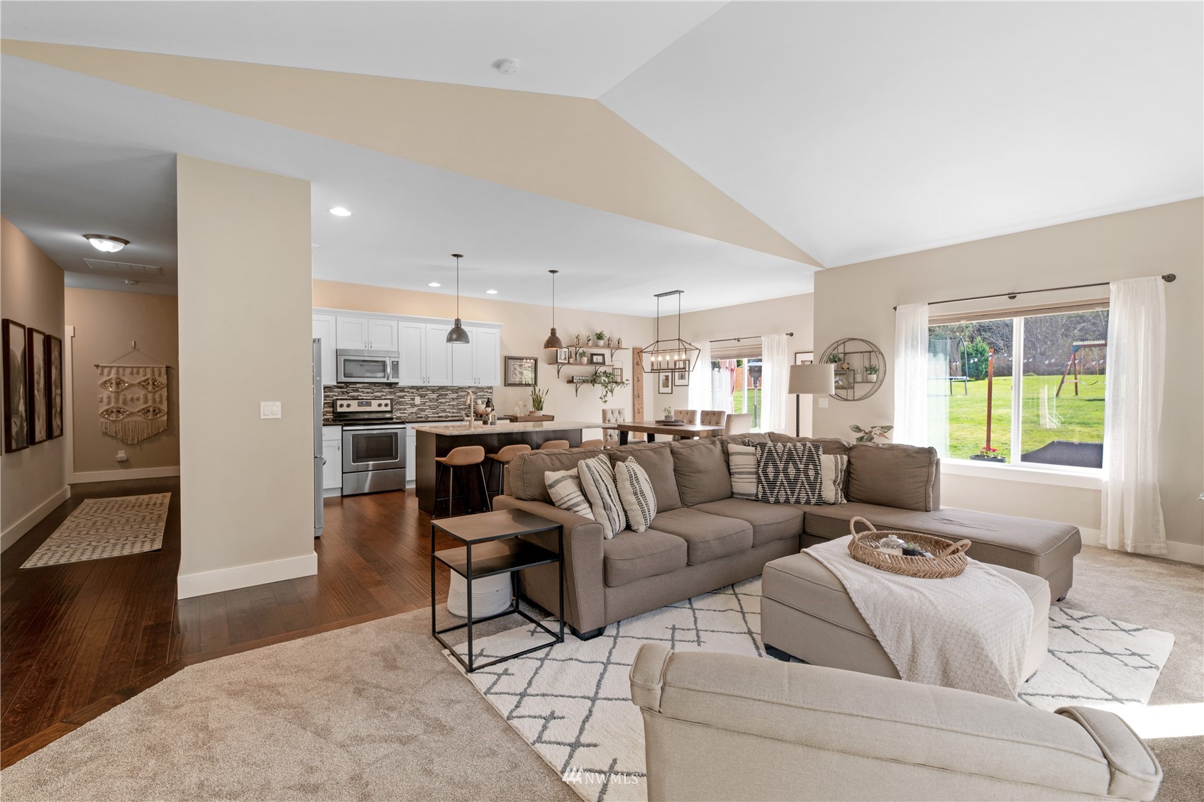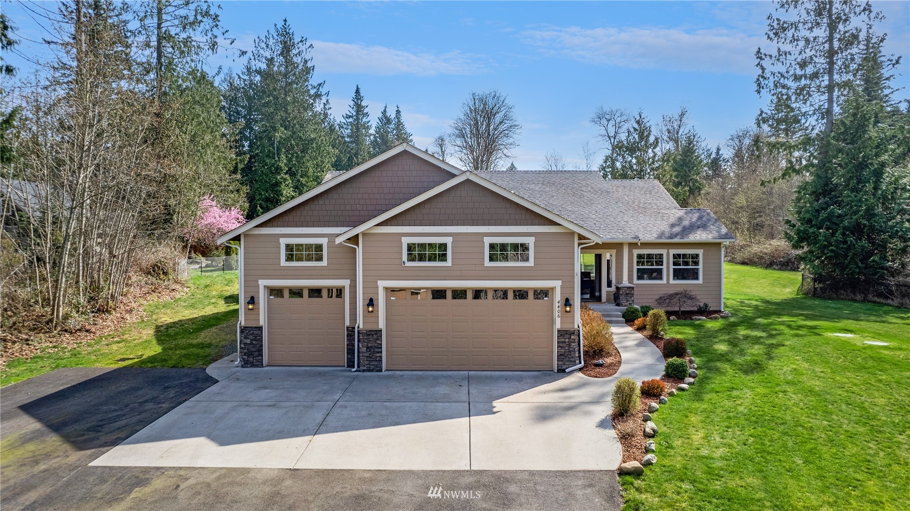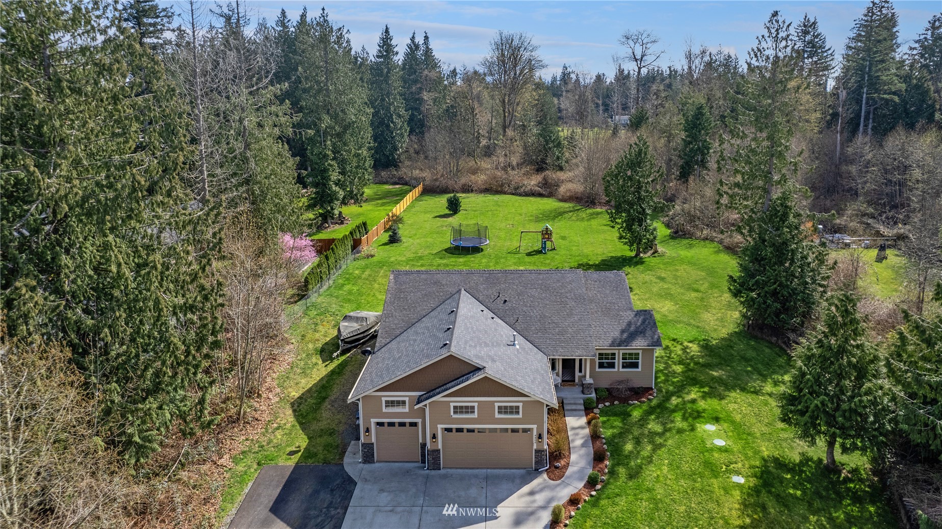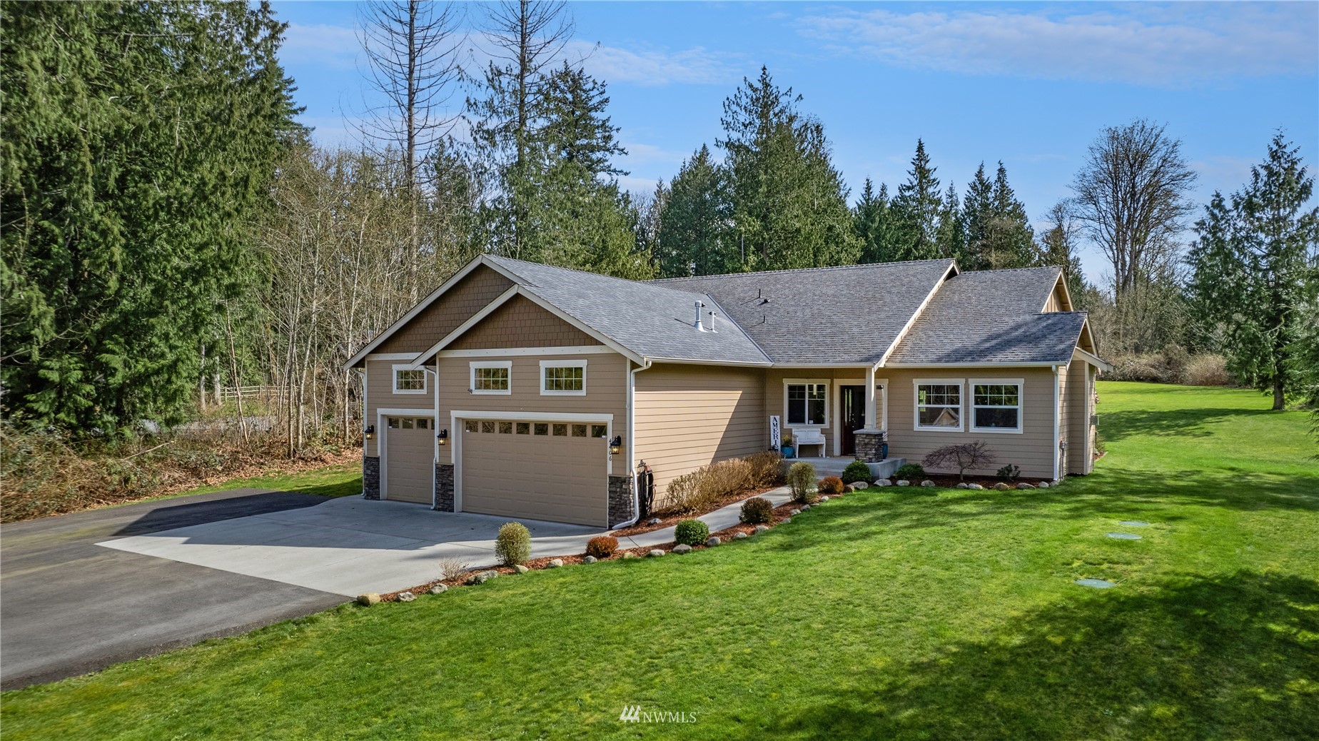 This stunning & serene rambler is situated on 2.5 acres & is a must see! This beautifully maintained ONE story home features an open & inviting floor plan w/ vaulted ceilings & tons of natural sunlight throughout. This home has brand new carpet & fresh paint & features dark hardwood floors in the entry, kitchen & dining area. The kitchen features SS appliances, custom cabinets & granite countertops. The gorgeous Master suite has a HUGE walk-in closet w/ a lovely 5 piece bath. The XL 3 car garage has high ceilings for extra storage. Plenty of space out back for a shop, horses, quads anything you can imagine! RV/Boat parking. Just minutes from Lake Goodwin, I5, shopping & all other amenities. This home is move in ready & just waiting for you!