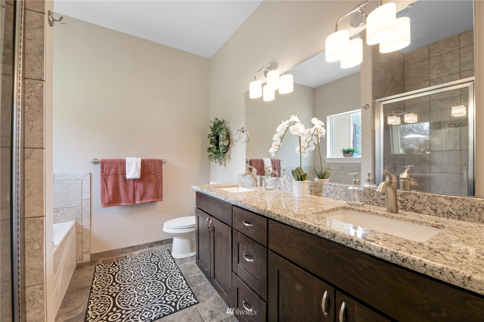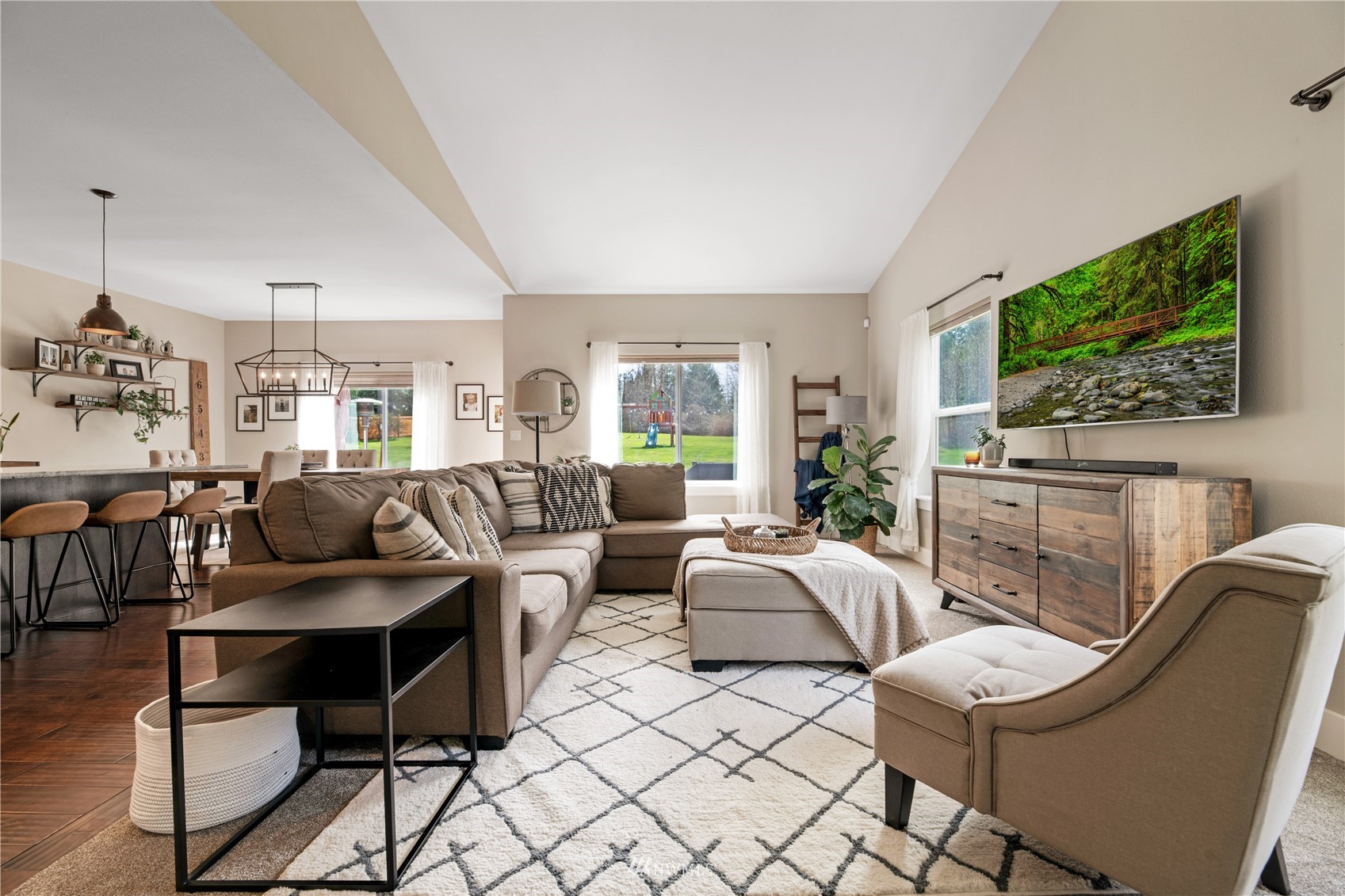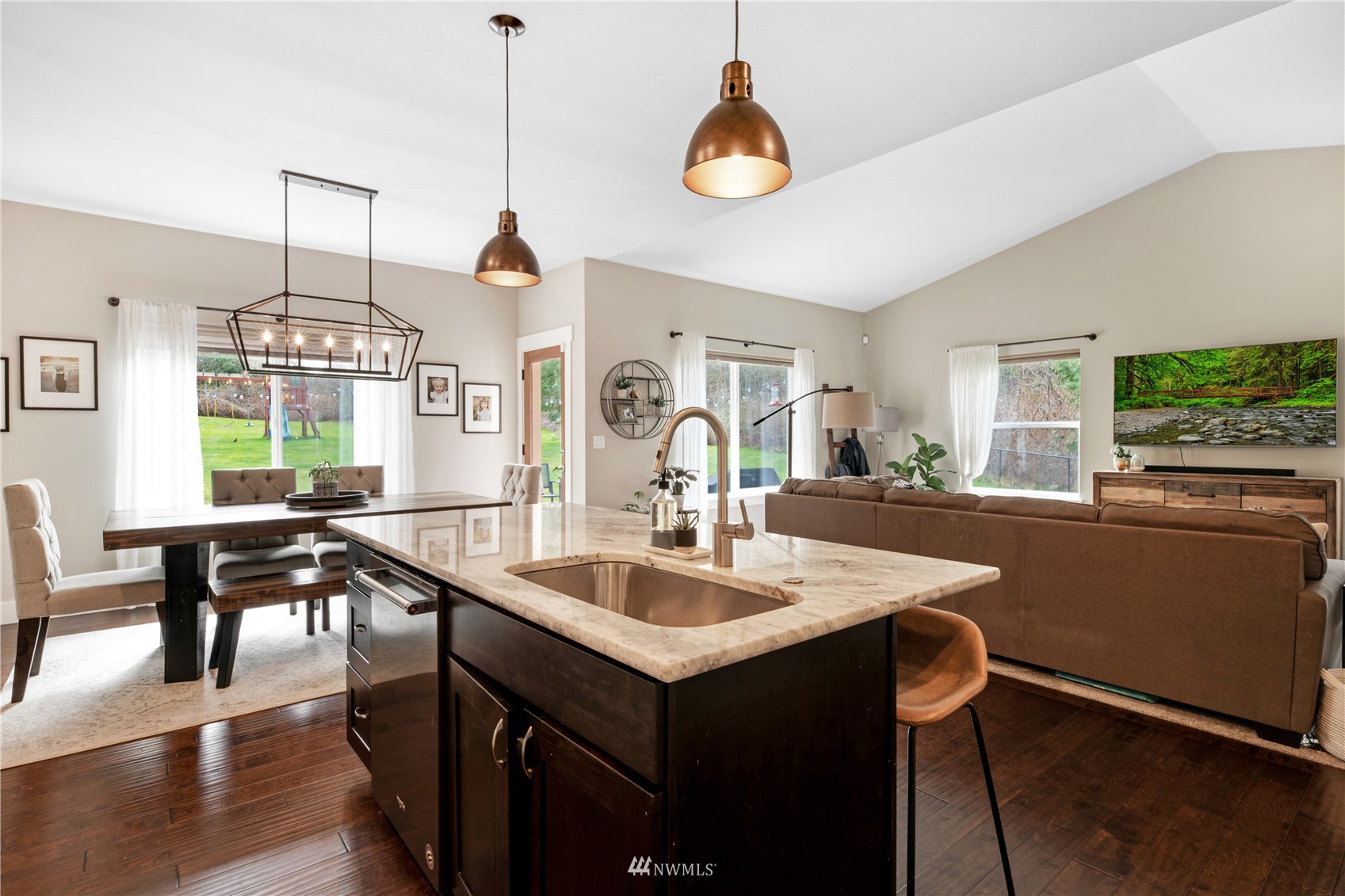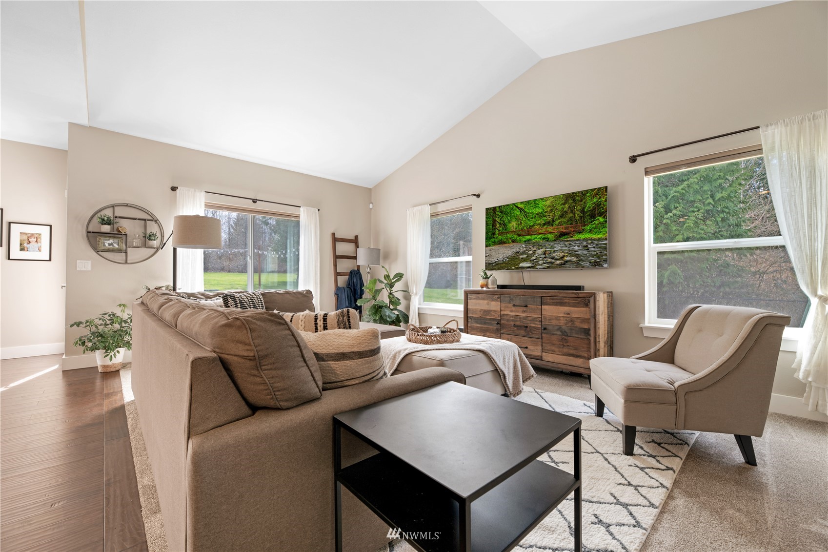 This stunning & serene rambler is situated on 2.5 acres & is a must see! This beautifully maintained ONE story home features an open & inviting floor plan w/ vaulted ceilings & tons of natural sunlight throughout. This home has brand new carpet & fresh paint & features dark hardwood floors in the entry, kitchen & dining area. The kitchen features SS appliances, custom cabinets & granite countertops. The gorgeous Master suite has a HUGE walk-in closet w/ a lovely 5 piece bath. The XL 3 car garage has high ceilings for extra storage. Plenty of space out back for a shop, horses, quads anything you can imagine! RV/Boat parking. Just minutes from Lake Goodwin, I5, shopping & all other amenities. This home is move in ready & just waiting for you!