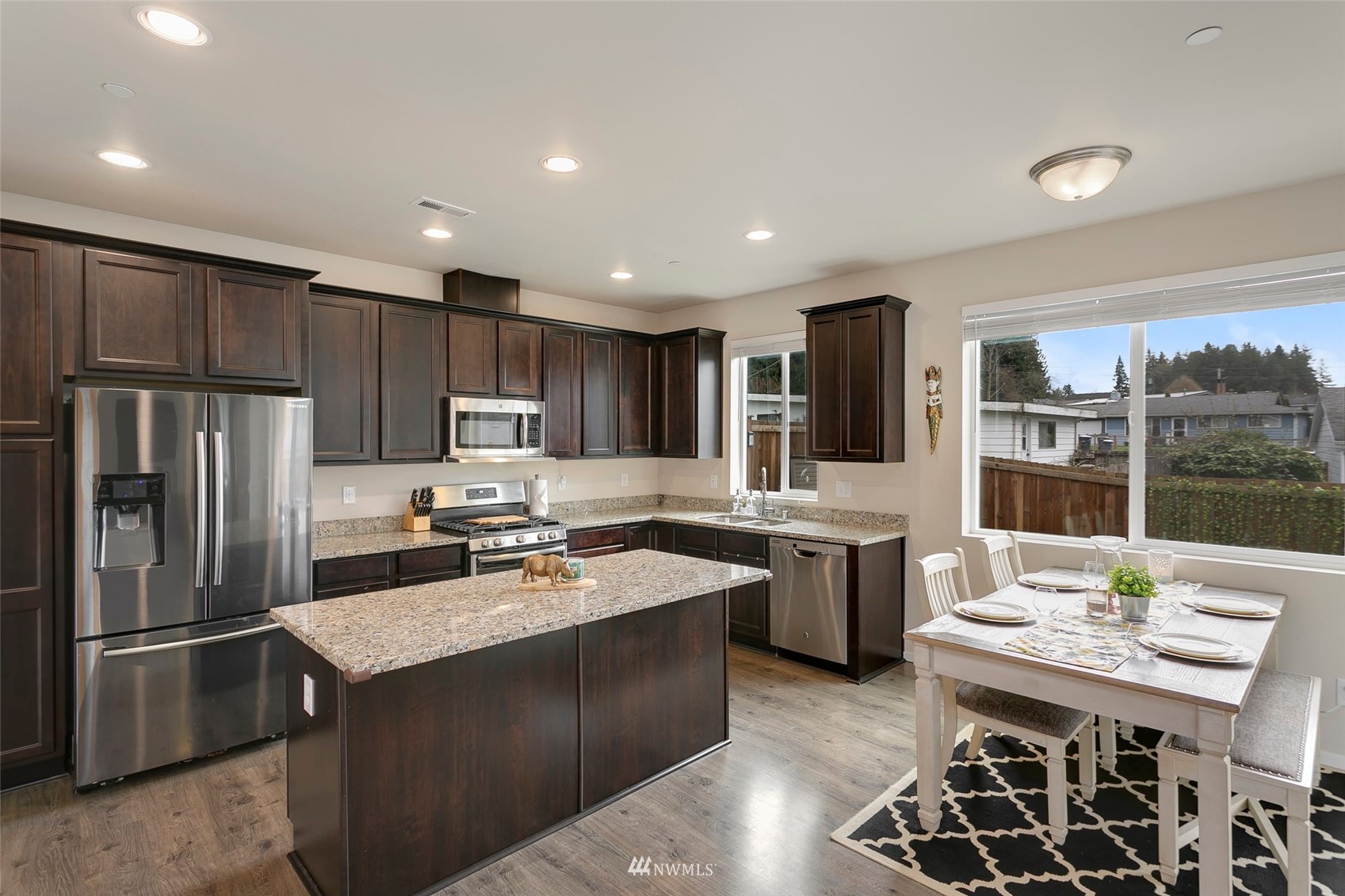 Immaculate, like new home nestled in the gated Hawks Ridge Community with too many features to list! Your future 4BR, 2.75 Bath, is light-filled open living. The Main Floor features a generously sized kitchen w/stunning granite counters, plenty of cabinets for all your kitchen gadgets, living room, fp & engineered hardwood floors. A large primary BR w/a shower, upgraded bathroom counters & walk-in closet is a wonderful beginning & end to any day. Extra space w/enormous bonus room on the lower level along w/BR 4. A/C to keep you cool in the summer, patio w/a sizeable backyard for summer BBQs, Smart Home Ready, 2 car garage, this home has it all. Minutes from future light rail, Alderwood Mall, Dining, Shopping & entertainment. Welcome Home!