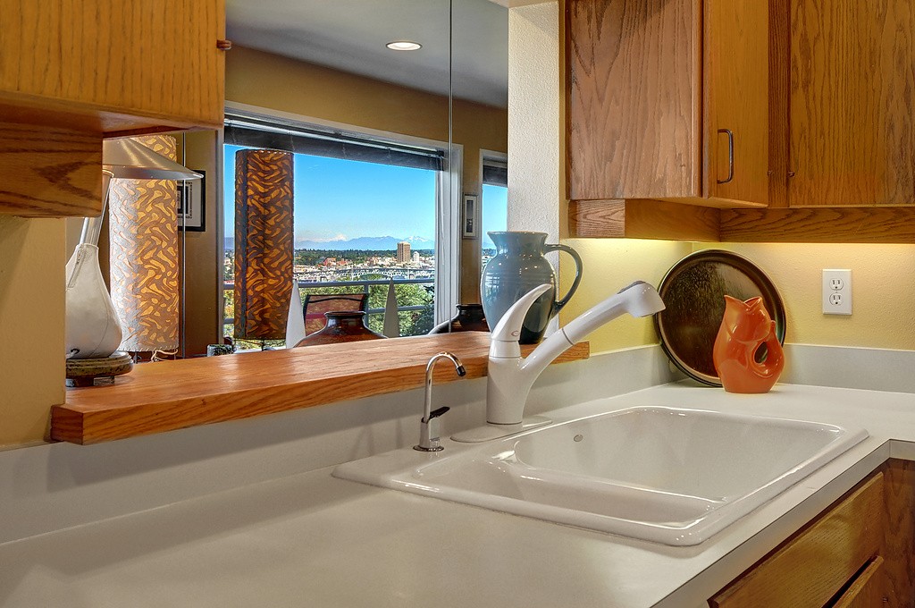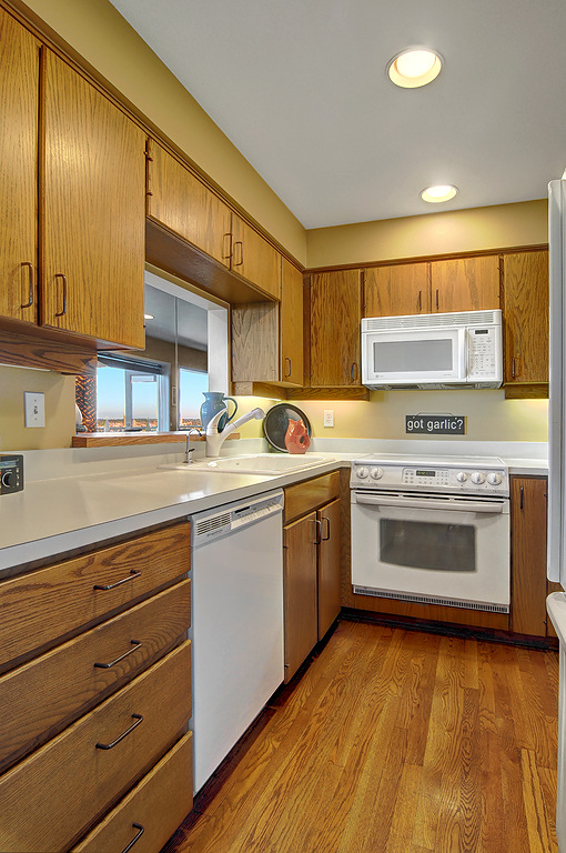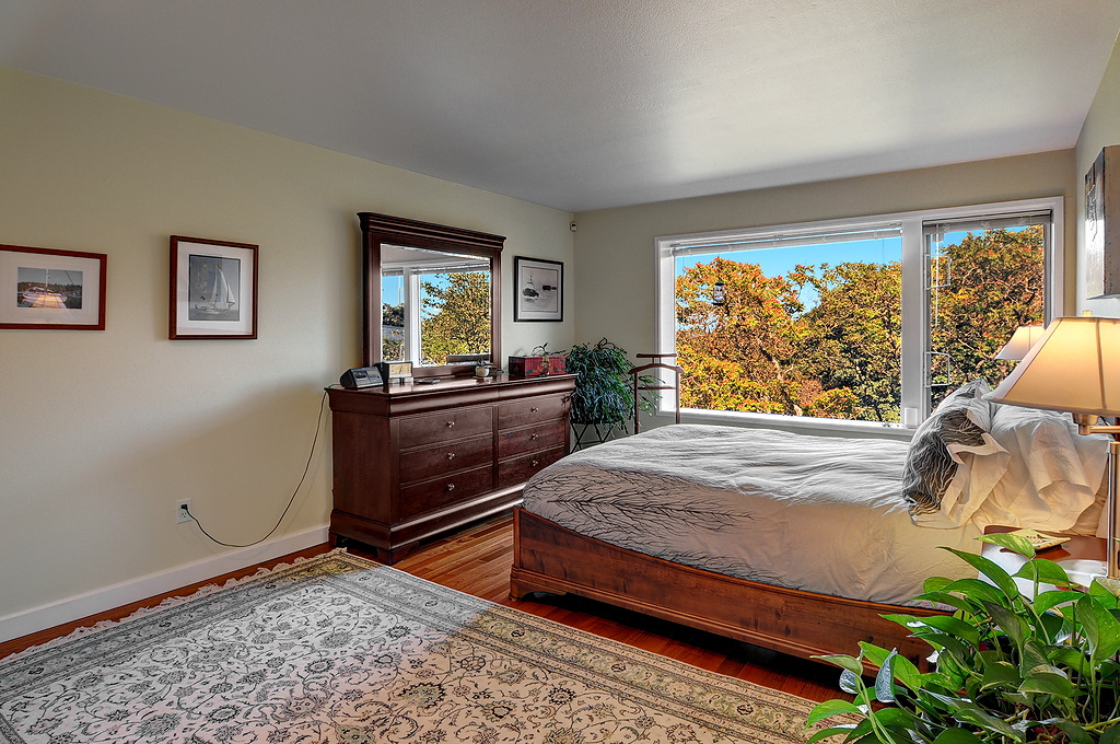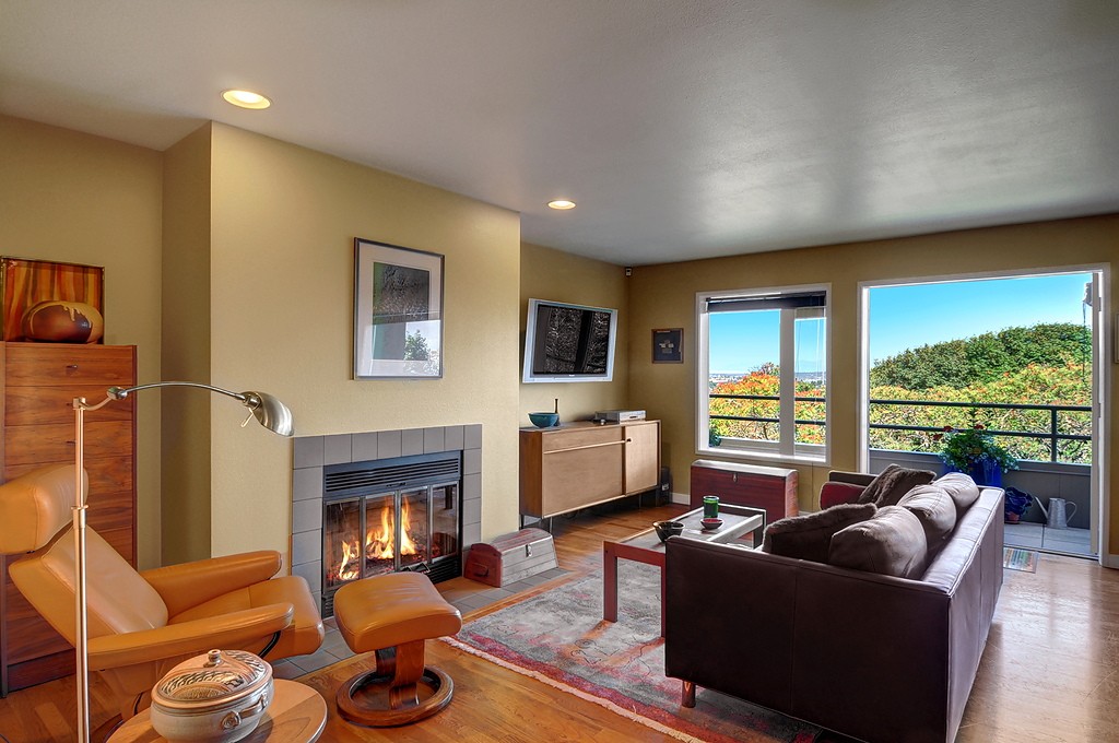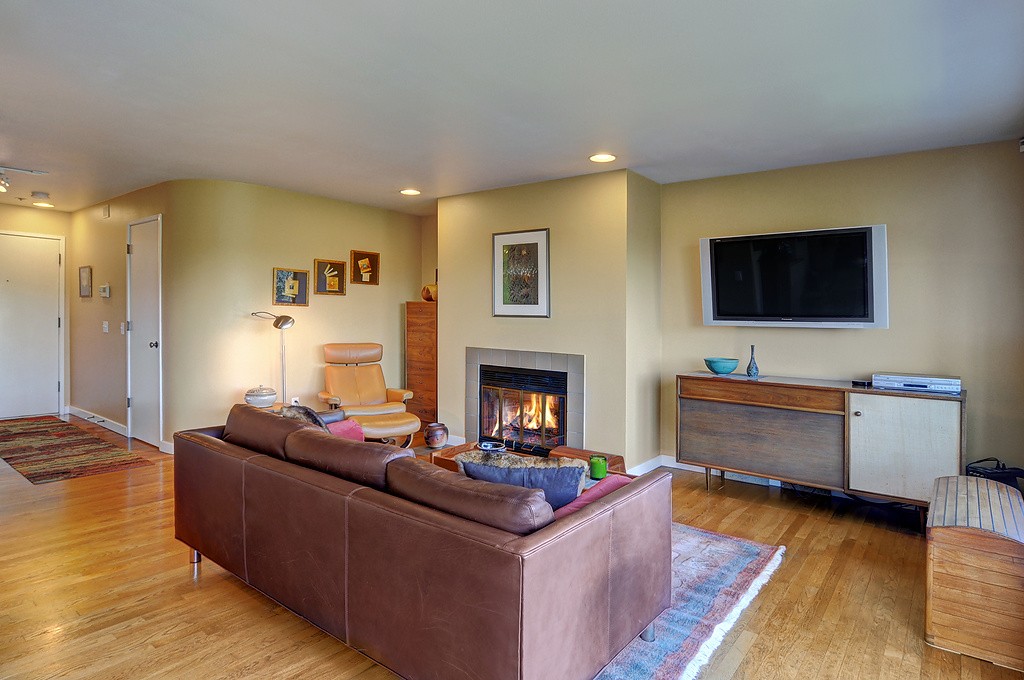 Delightful townhouse-style home in quality-built, stable, well-managed complex of just 10 units, EZ access to shopping, services, Q A Ave, Seattle Center, Fremont. Wall of windows across living & dining rooms allow for maximum light. Enjoy sunrise and moonrise over the Cascades, sailboats on Duck Dodge, fireworks on the 4th. Stable, solvent HOA, well-managed building. TWO garage parking spaces and FOUR storage areas! Quiet, 2-block section of Taylor, off the beaten track. Private and woodsy.
