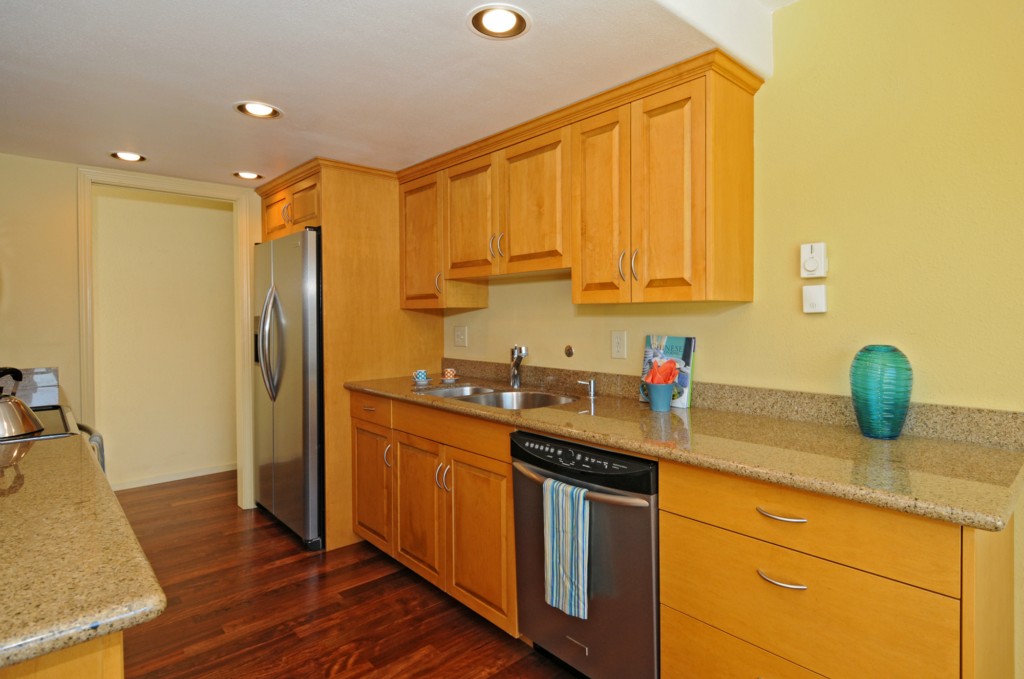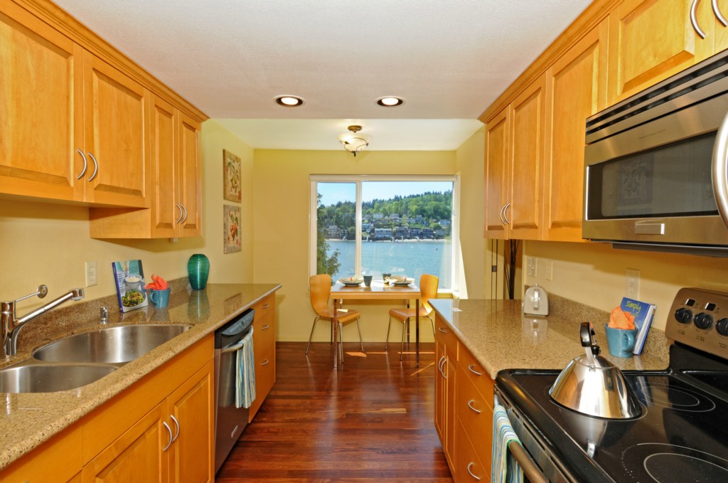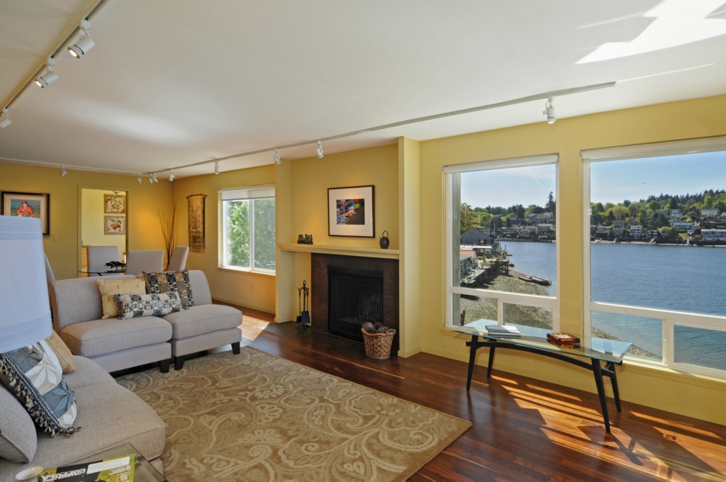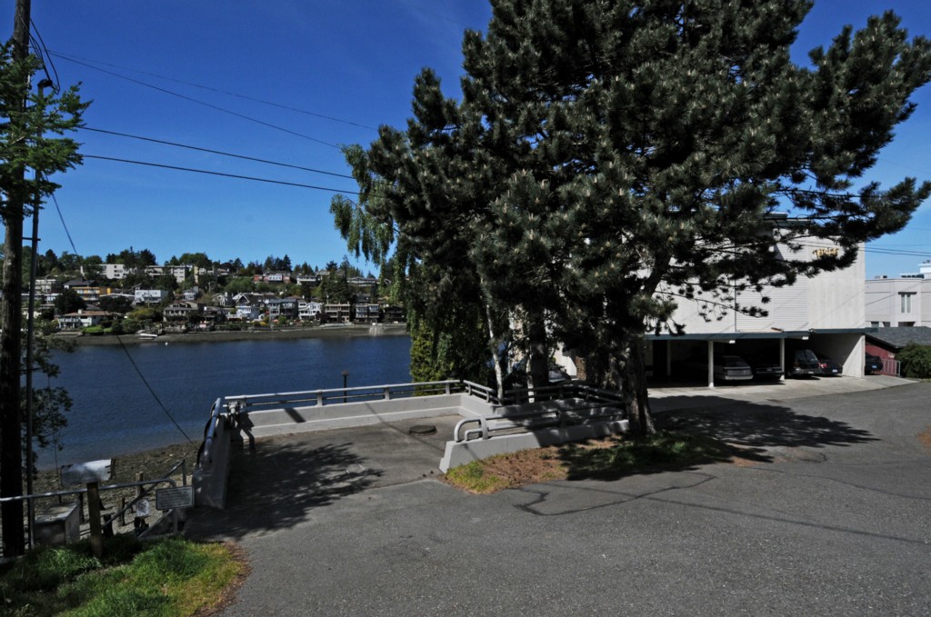 Location, location, location! Rare resale in this boutique building of only 8 homes. Sweeping views of the canal, Puget Sound & the Olympic Mountains. This home has been renovated throughout. Kitchen features maple cabinets, granite counters & stainless steel appliances. Carribean Rose Wood floors, custom built cabinetry in the master bedroom & completely renovated master bath with granite counters. New blinds & solar shades. Wood burning fireplace, carport & lower level storage.