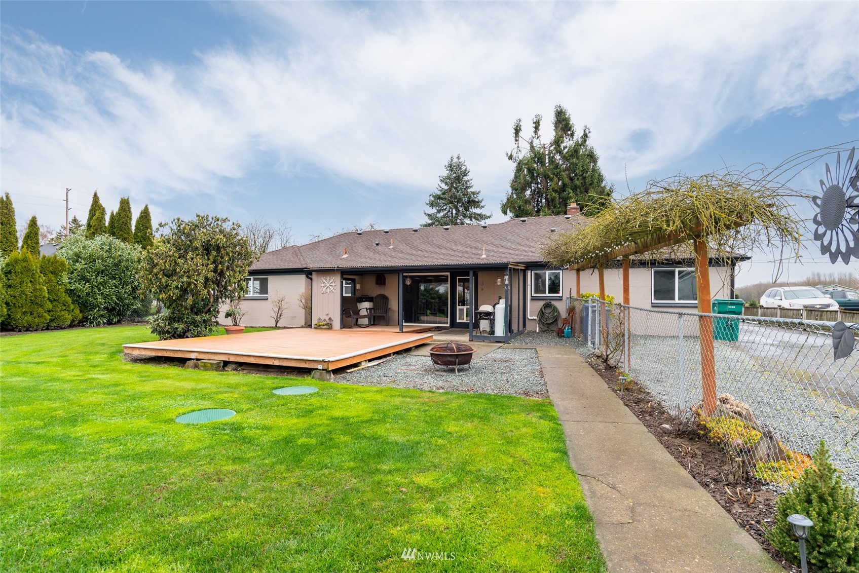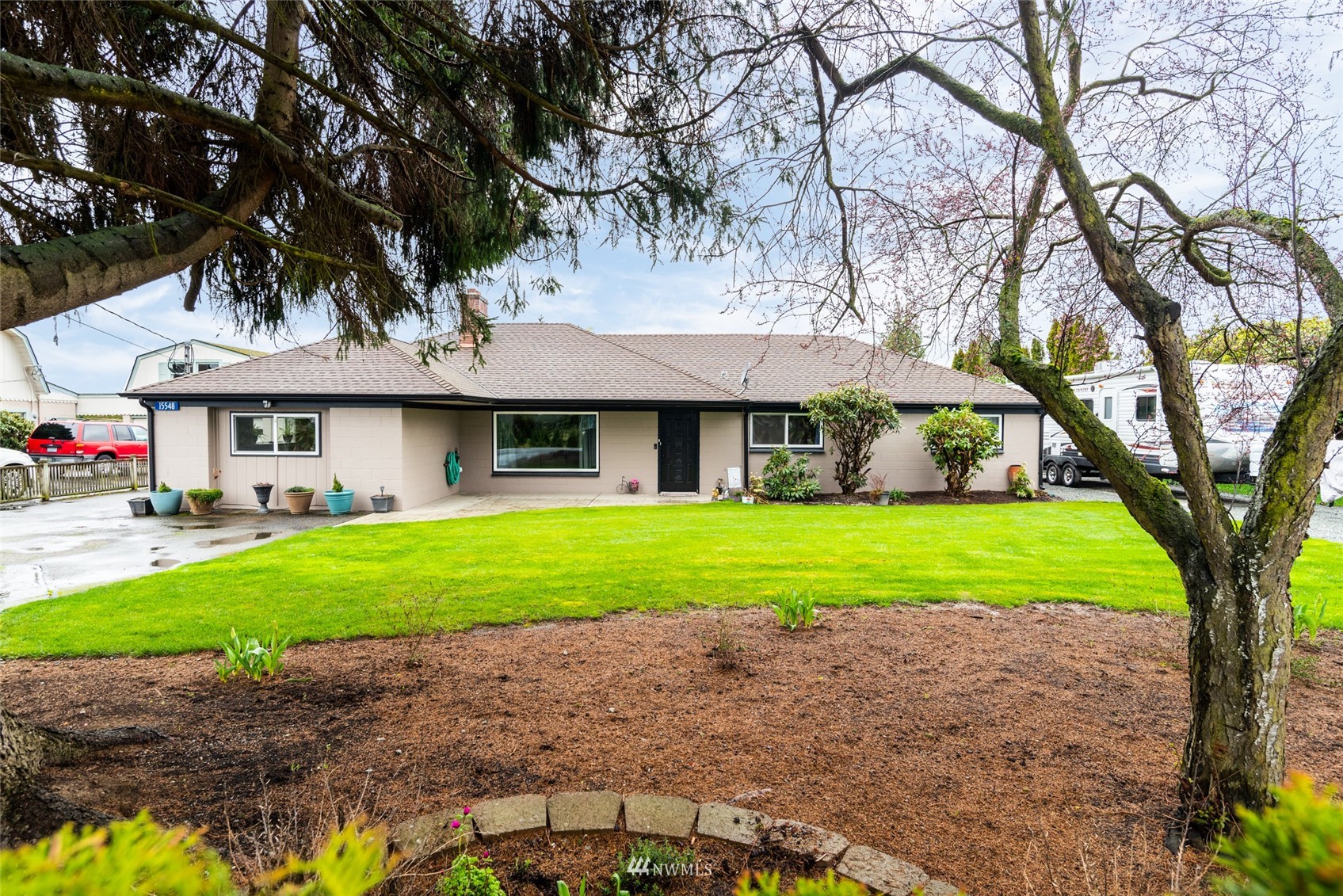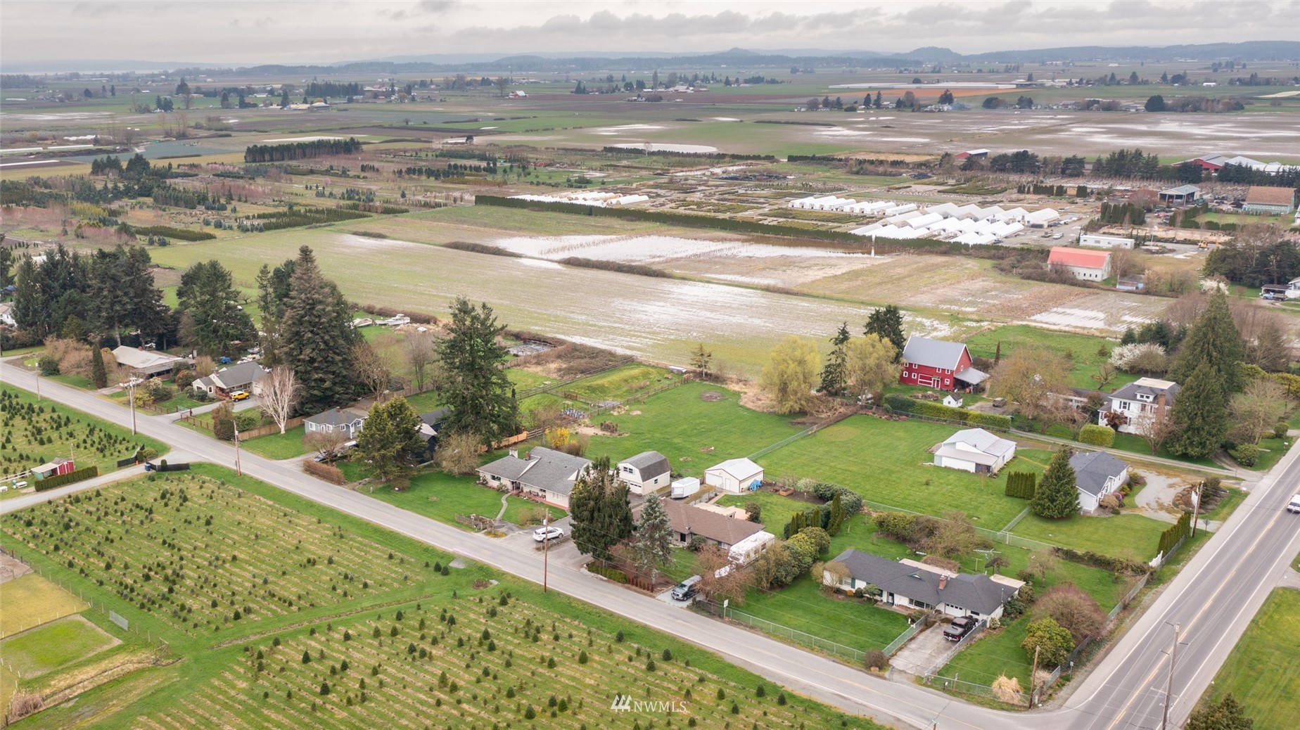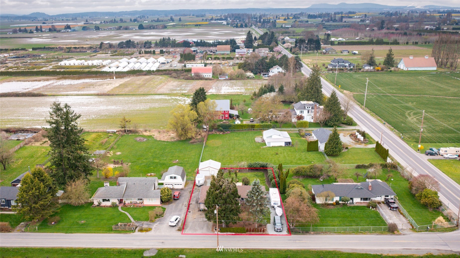Country Living at its' best near the gorgeous tulip fields with amazing territorial views and sunsets! This one level home is beautifully appointed with large bedrooms featuring built-ins. Lots of living space in this home and a large lovely kitchen with stunning cabinets, gas stove, pantry and eating area currently used as office space. Radiant floor heat, double pane windows and pellet stove keep home warm and toasty, putting savings in your pocket. Enjoy sitting outside on your covered deck or around the fire pit watching the glorious sunsets. The spacious and mature landscaped yard is a Gardner's delight. Large shop/garage and RV parking. In the country yet close to amenities and I-5 access.