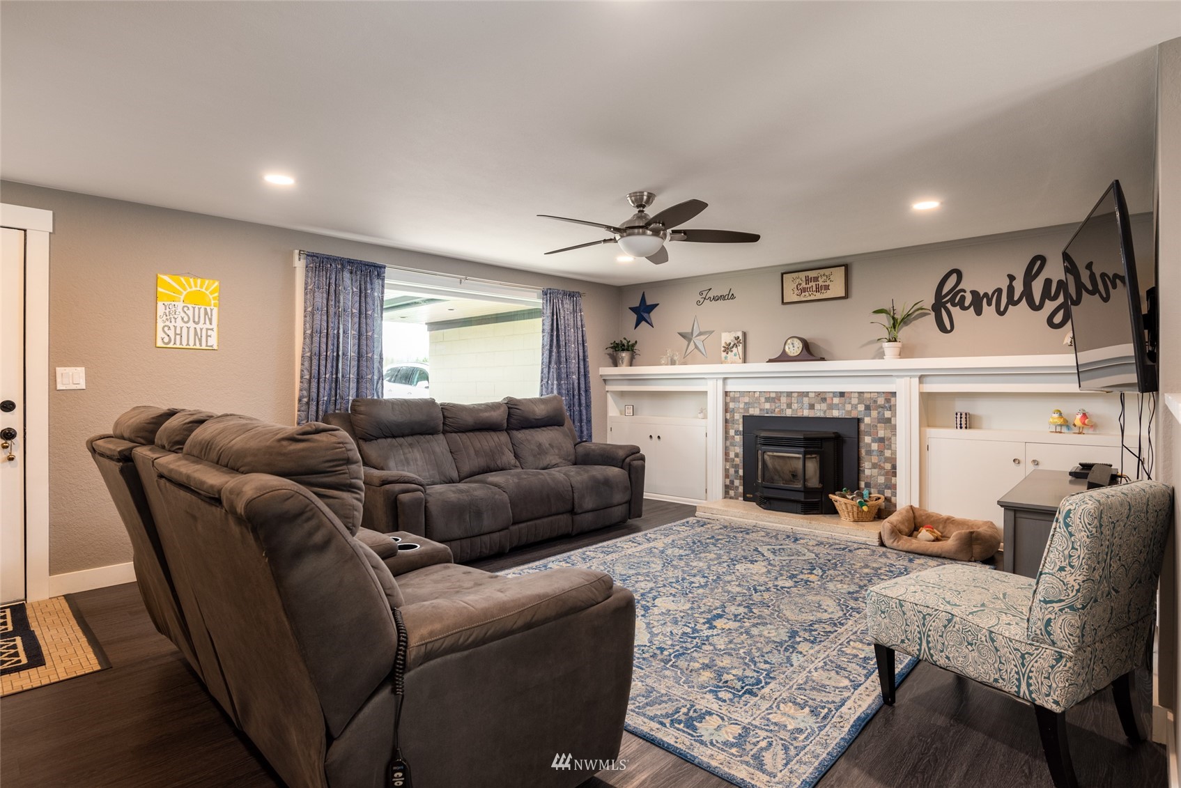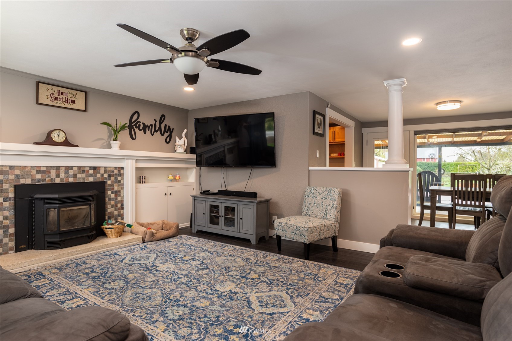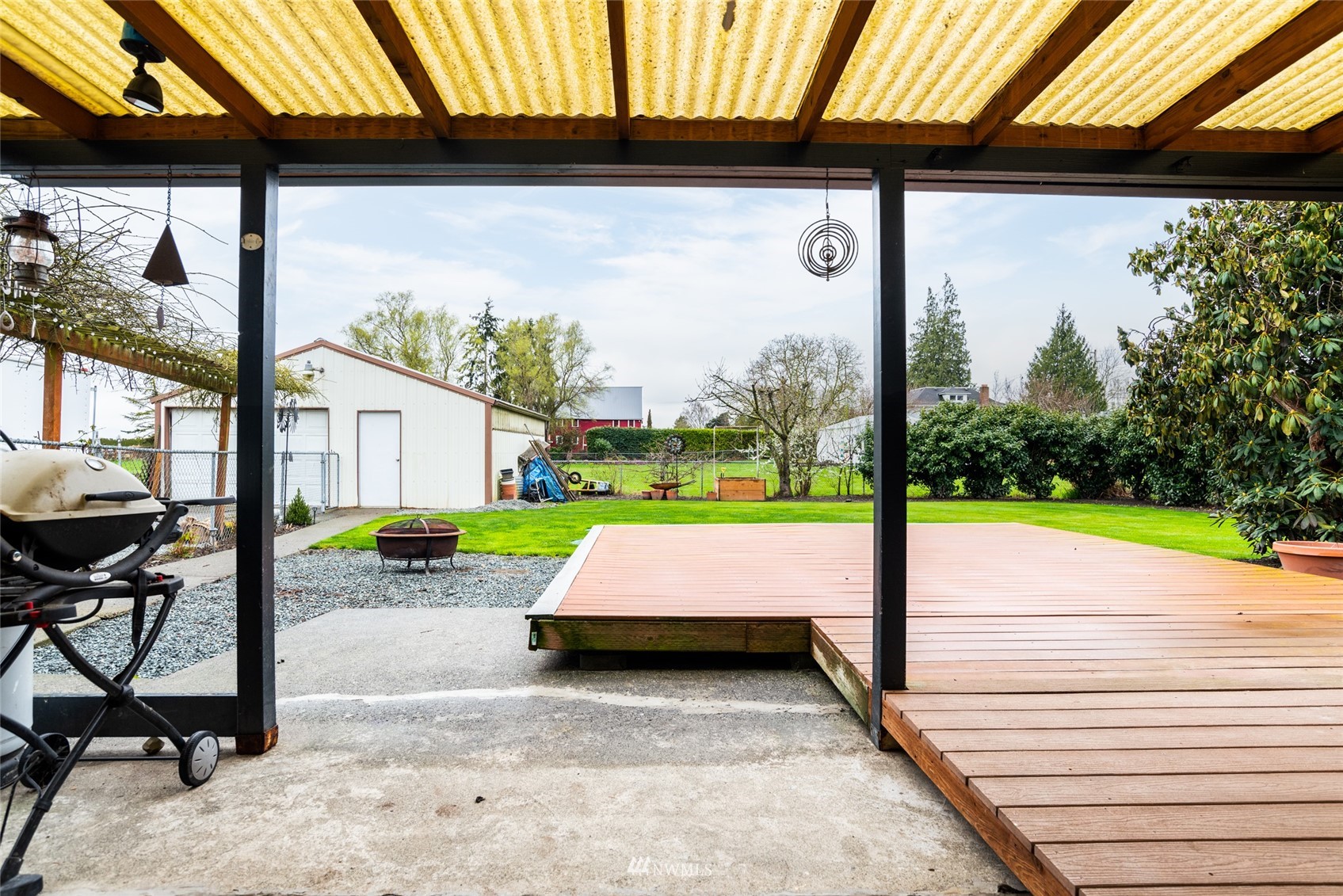 Country Living at its' best near the gorgeous tulip fields with amazing territorial views and sunsets! This one level home is beautifully appointed with large bedrooms featuring built-ins. Lots of living space in this home and a large lovely kitchen with stunning cabinets, gas stove, pantry and eating area currently used as office space. Radiant floor heat, double pane windows and pellet stove keep home warm and toasty, putting savings in your pocket. Enjoy sitting outside on your covered deck or around the fire pit watching the glorious sunsets. The spacious and mature landscaped yard is a Gardner's delight. Large shop/garage and RV parking. In the country yet close to amenities and I-5 access.