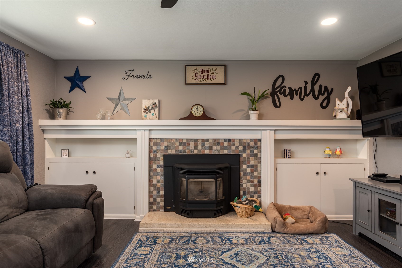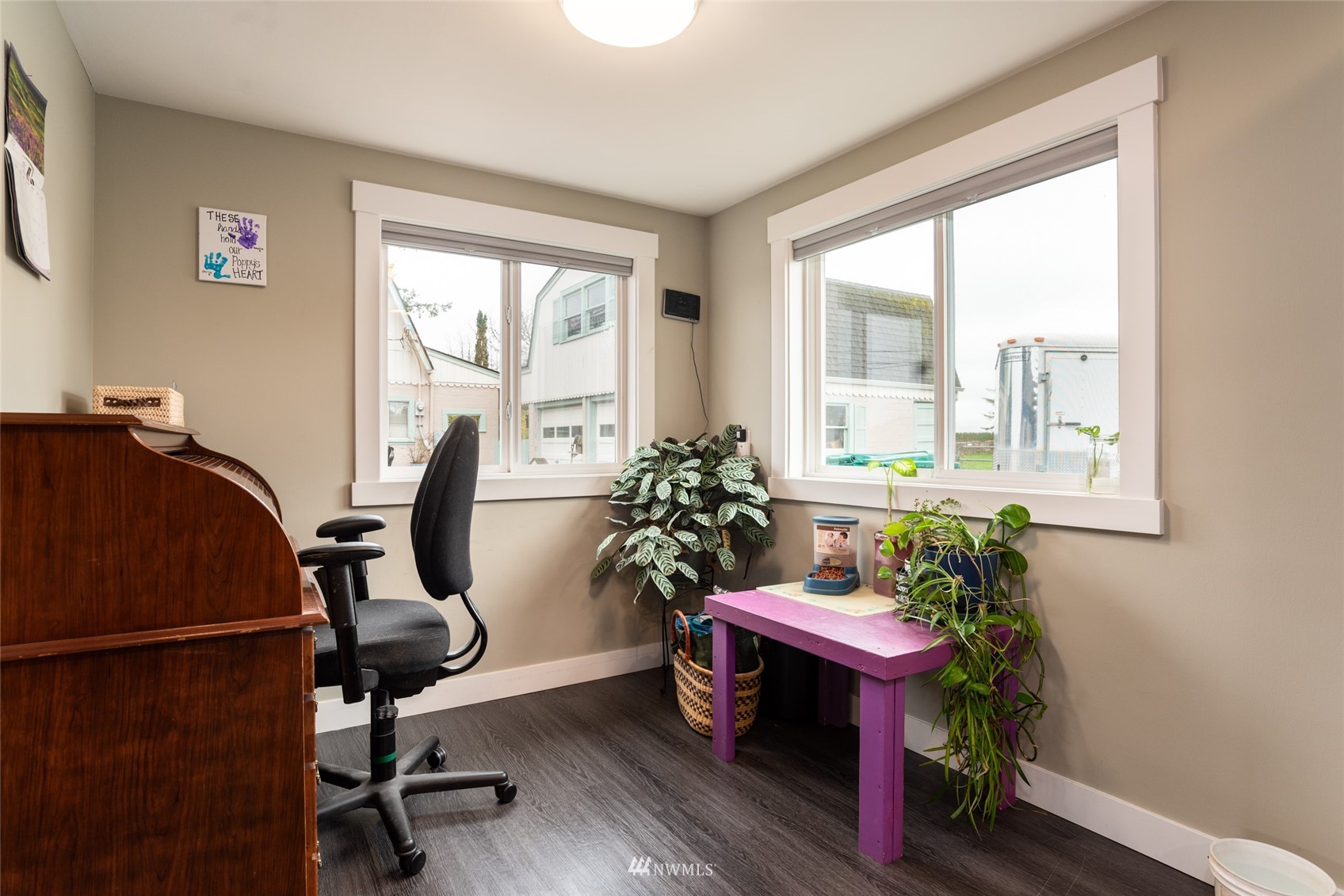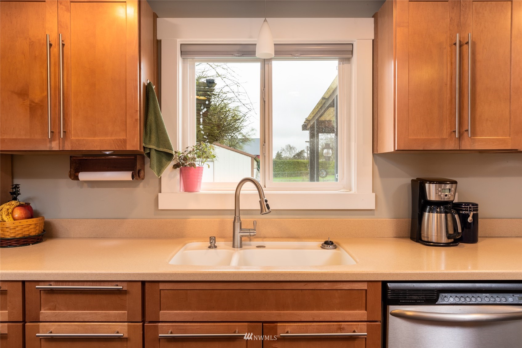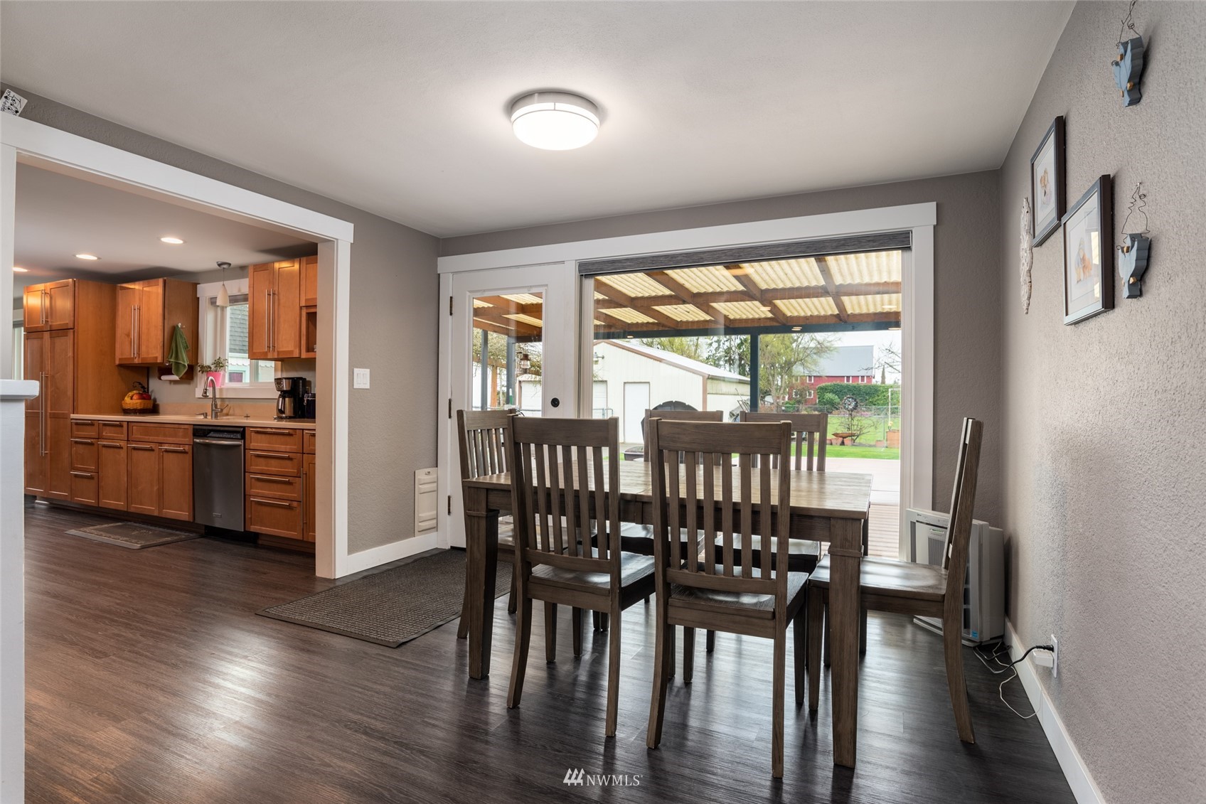 Country Living at its' best near the gorgeous tulip fields with amazing territorial views and sunsets! This one level home is beautifully appointed with large bedrooms featuring built-ins. Lots of living space in this home and a large lovely kitchen with stunning cabinets, gas stove, pantry and eating area currently used as office space. Radiant floor heat, double pane windows and pellet stove keep home warm and toasty, putting savings in your pocket. Enjoy sitting outside on your covered deck or around the fire pit watching the glorious sunsets. The spacious and mature landscaped yard is a Gardner's delight. Large shop/garage and RV parking. In the country yet close to amenities and I-5 access.