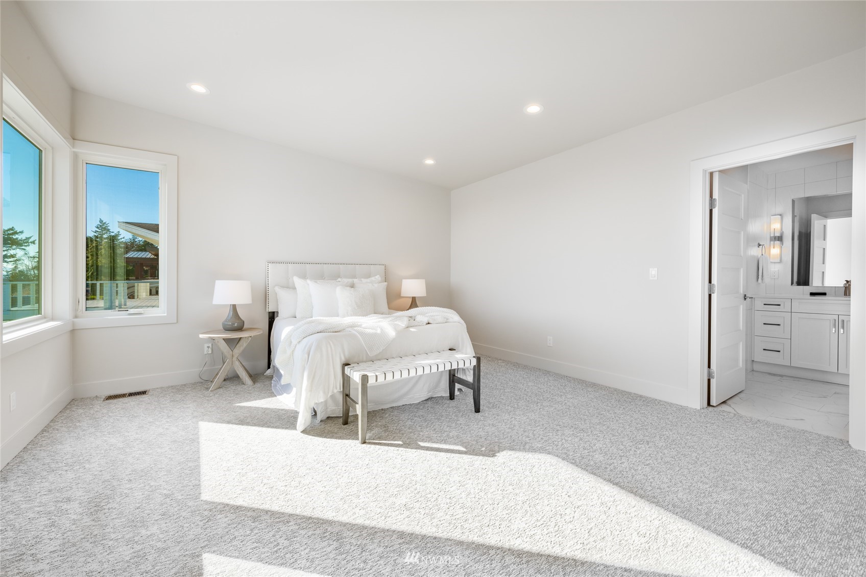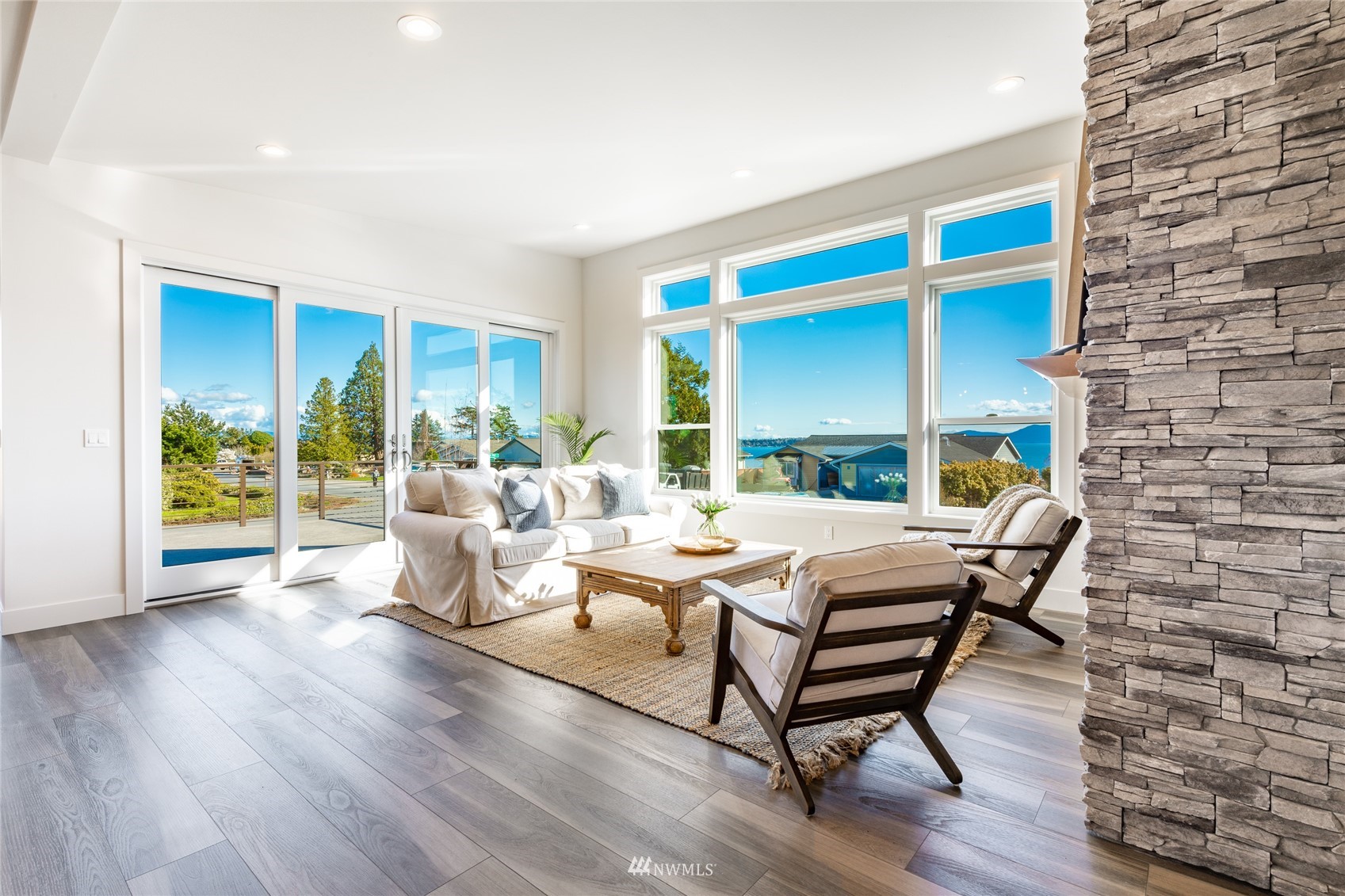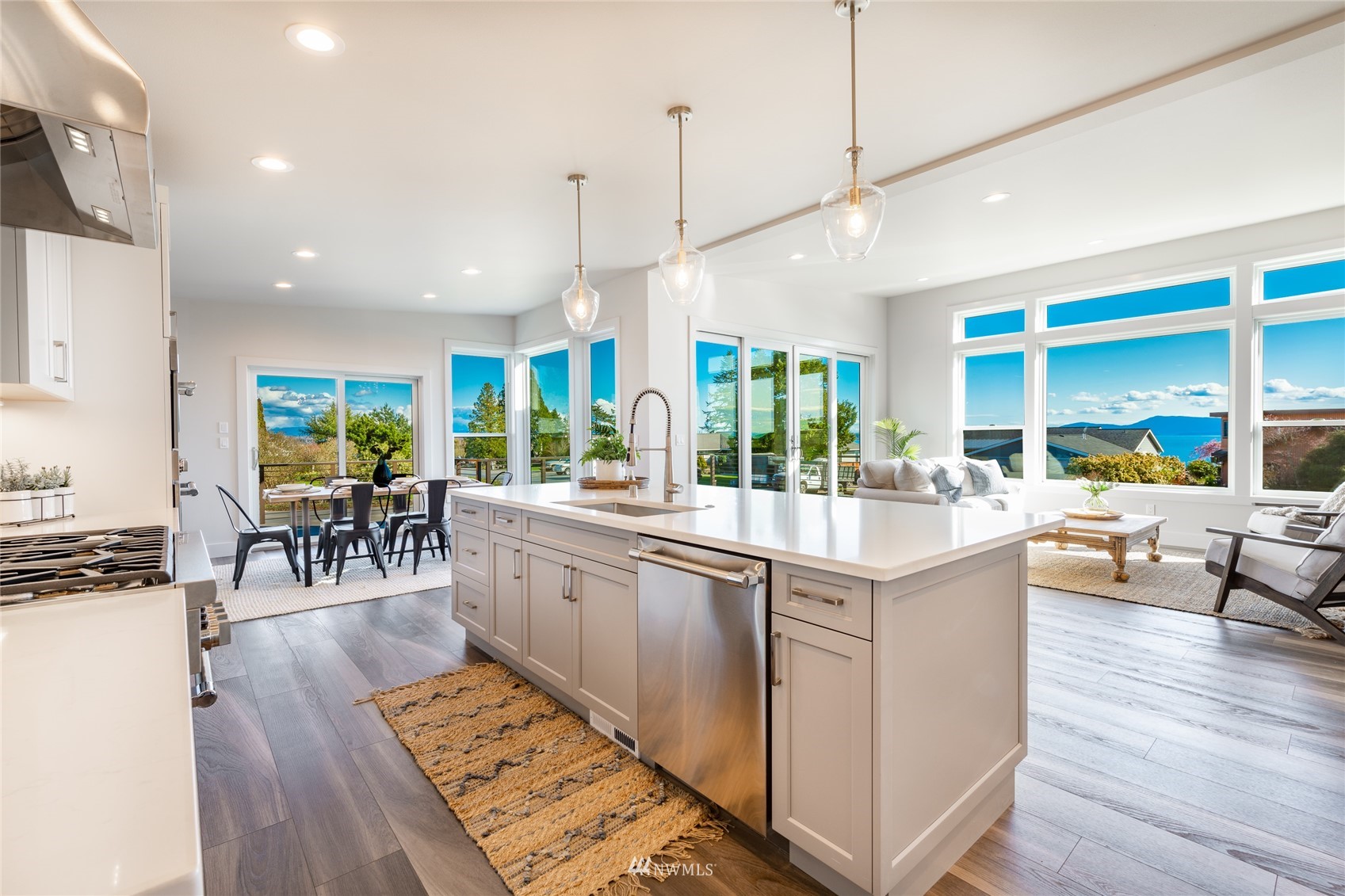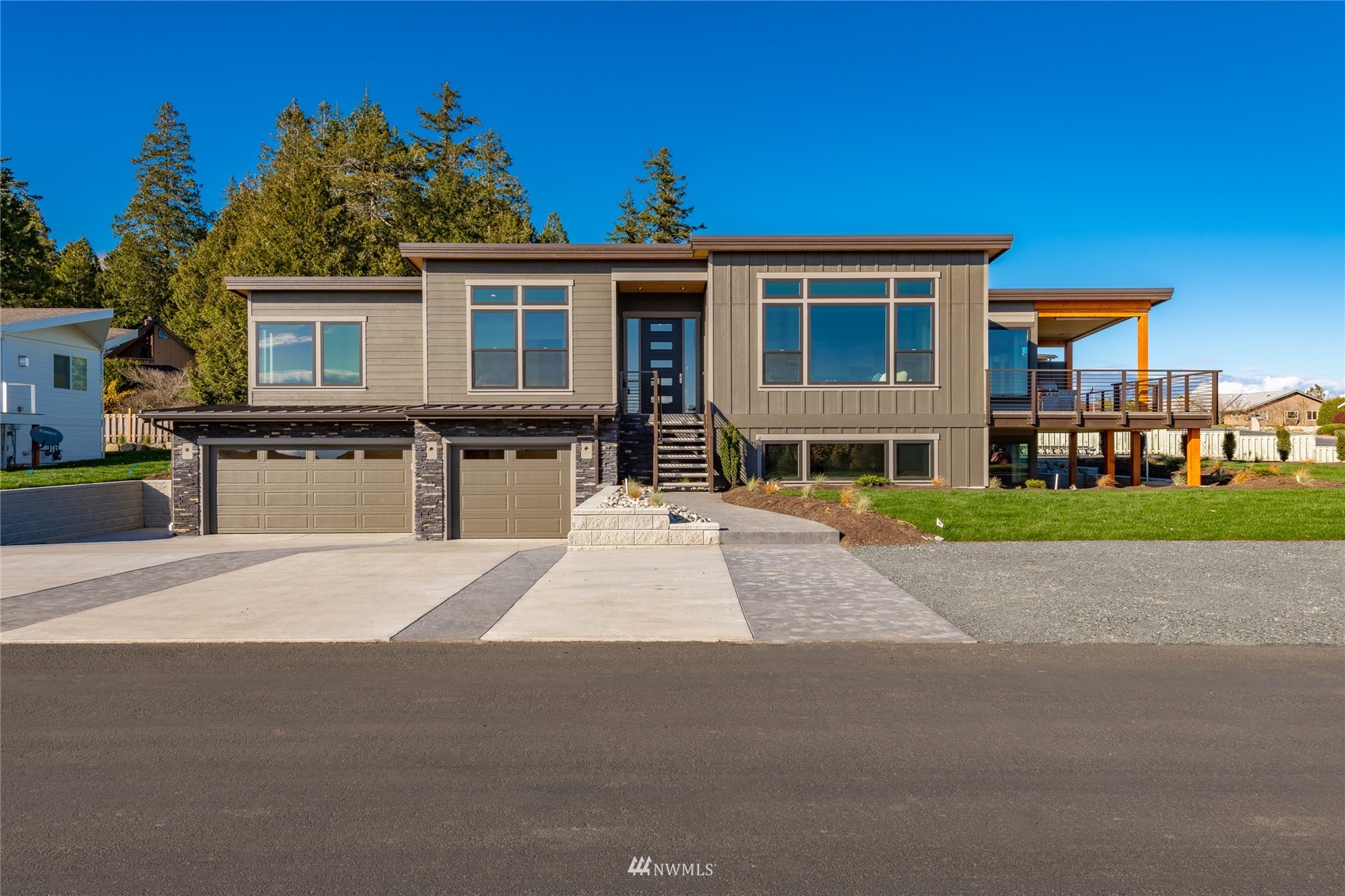 Brand New "Wiebe Construction" built view home in fabulous Birch Bay Village. South facing to Georgia Straight, San Juan & Gulf Islands. Features include oversize triple garage, huge covered patio downstairs + upper deck w/outdoor kitchen for entertaining while enjoying the Inland Pacific Vistas. Entry from either ground level in back or via staircase at front. Extensive tilework, vaulted ceilings, quartz countertops, kitchen island, luxurious Master Suite, den w/view, Big RV Pad & much more. Artisan crafted metalwork at central staircase leading to guest suites & generous bonus room downstairs. Every design aspect from sightlines, room placement & capturing views was carefully executed. Golf, marina, beaches add to the "Village" lifestyle.