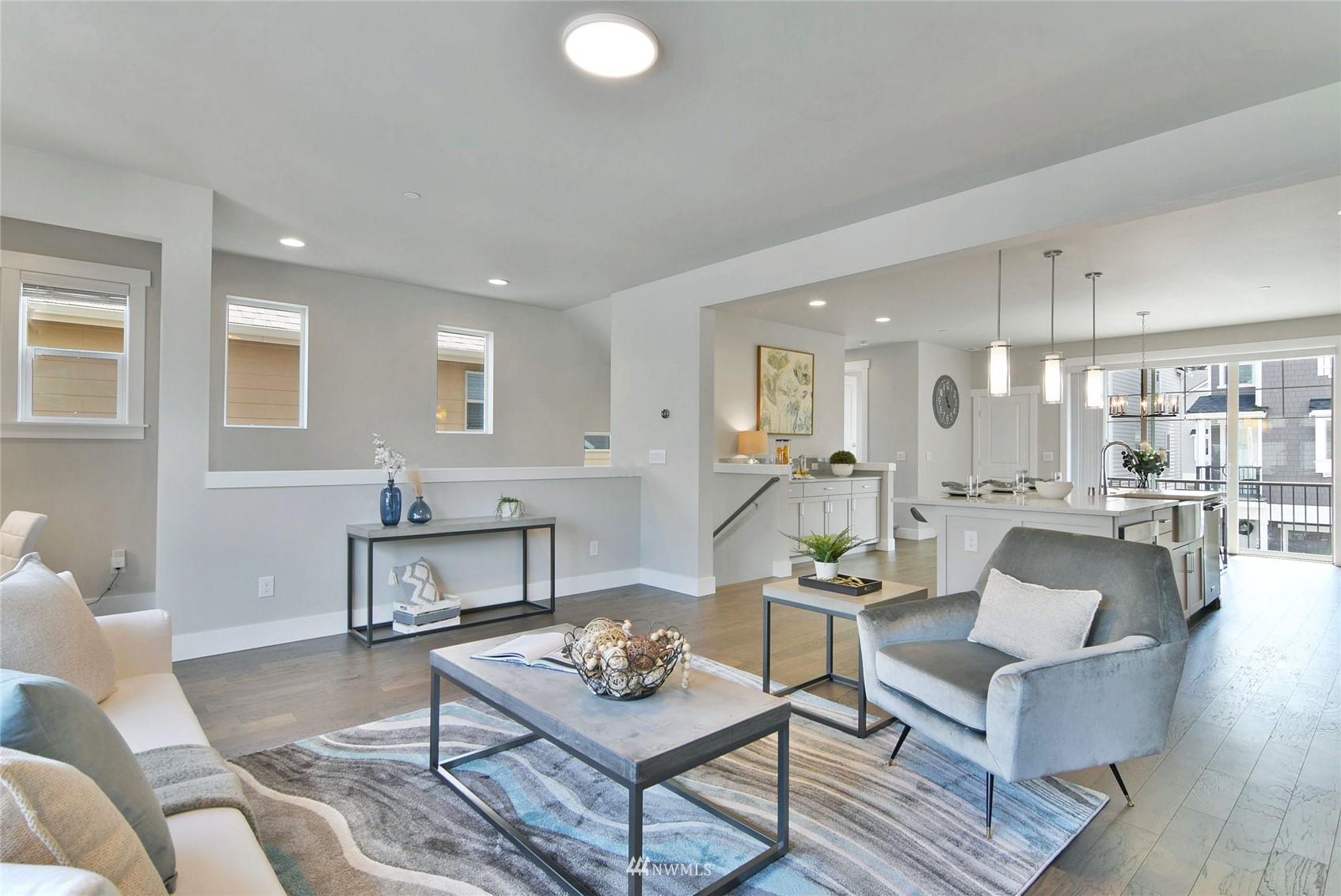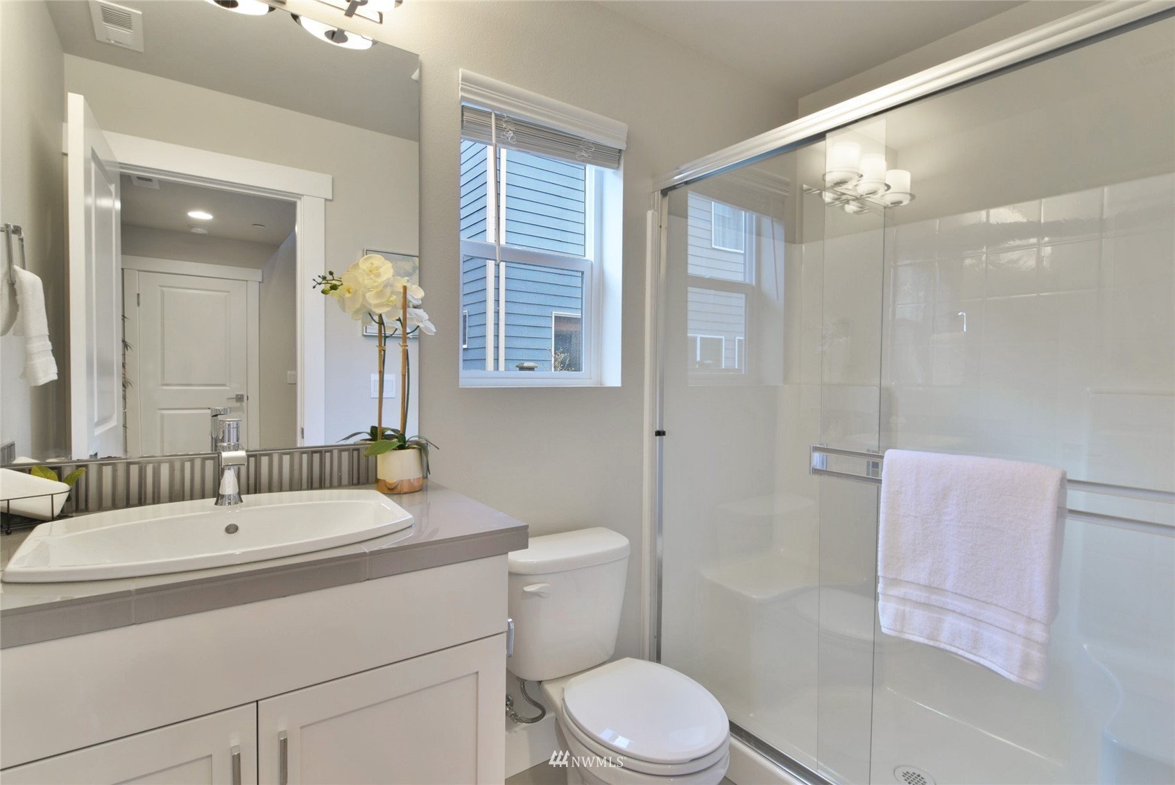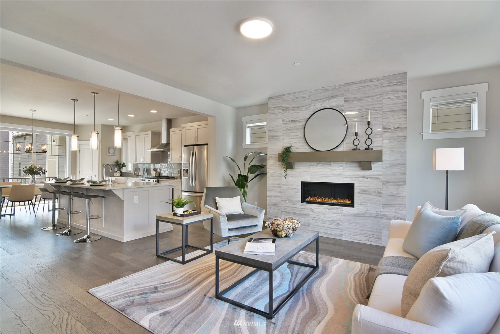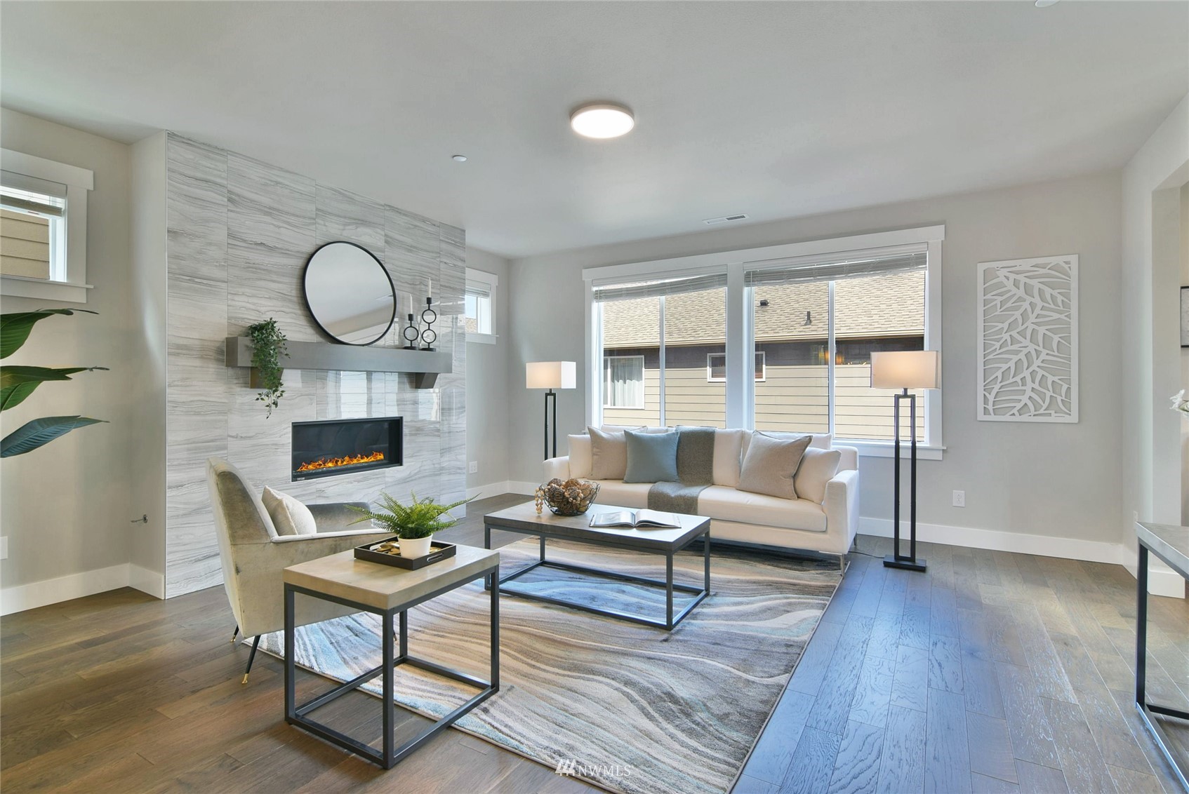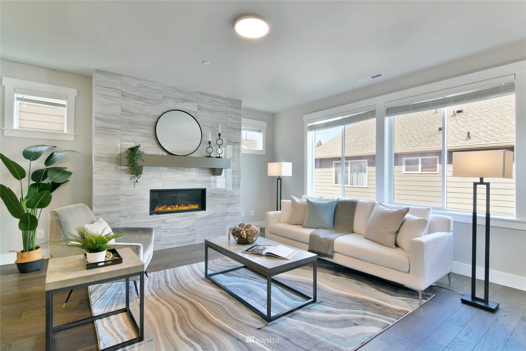 Stunning RM Homes resale at Stratton Crest. This like-new home was built in 2020 and is one of the most popular floor plans! Main level features a spacious and elegant great room with huge open kitchen, living room with impressive floor-to-ceiling fireplace, computer nook, dining area that opens to the covered balcony, and a powder room. Expansive kitchen island, quartz counters, lots of cabinets, and a walk-in pantry. Luxurious primary suite, 2 secondary bedrooms, and full bath on upper level. On the lower level, there is a ¾ bath and 4th bedroom/office that leads to the back yard. Equipped with efficient gas furnace, AC, and tankless water heater. Steps to community playground. Easy access to freeways, Park & Ride, shops, and restaurants.