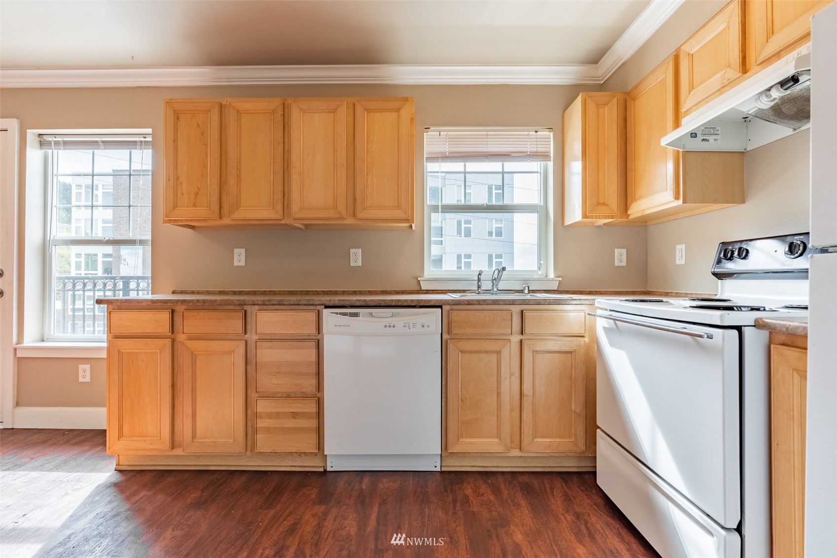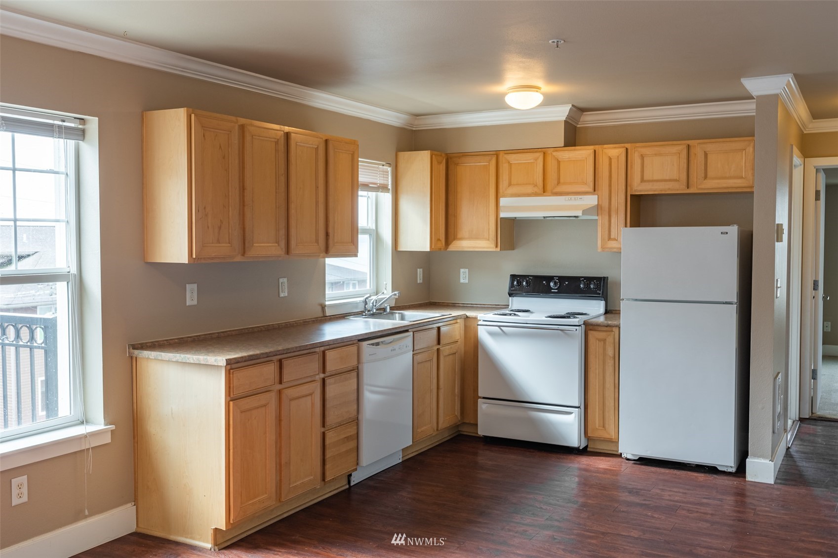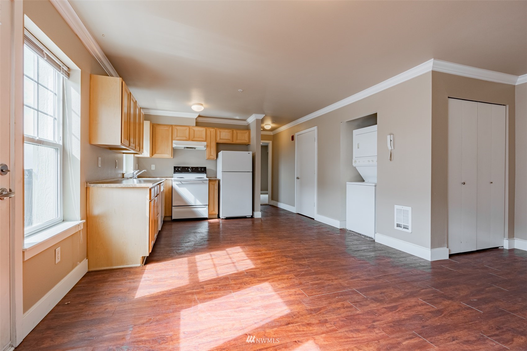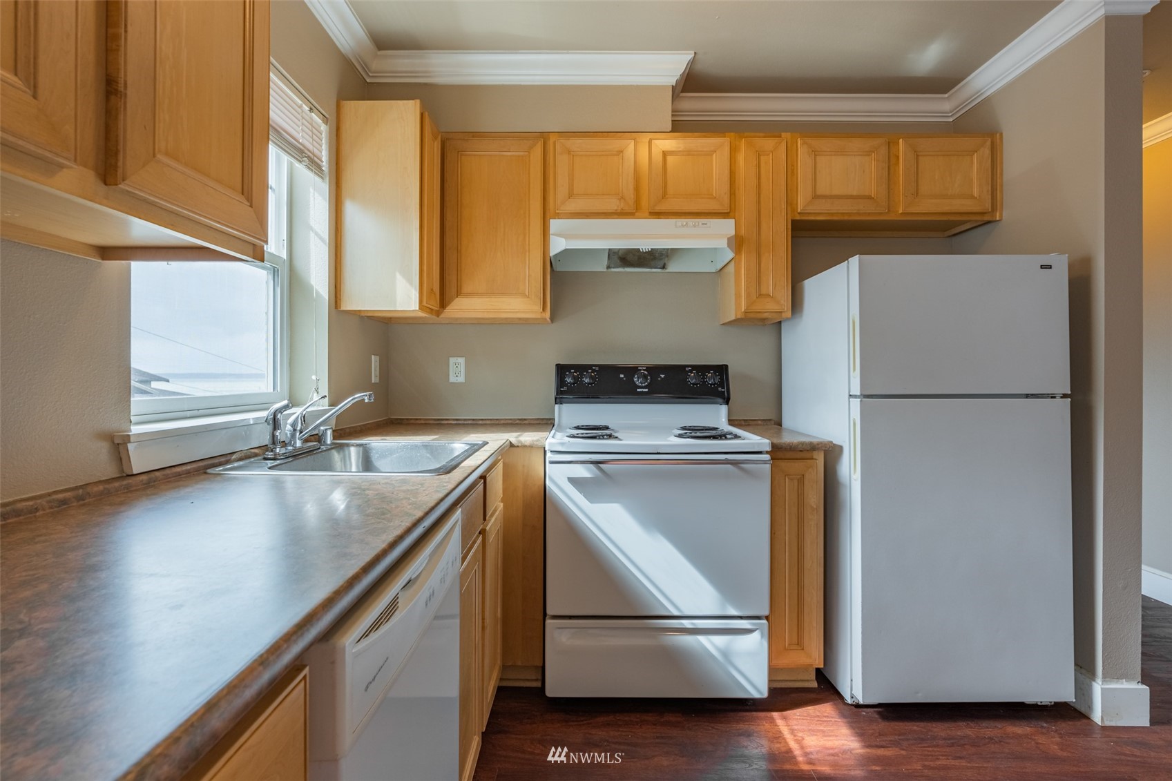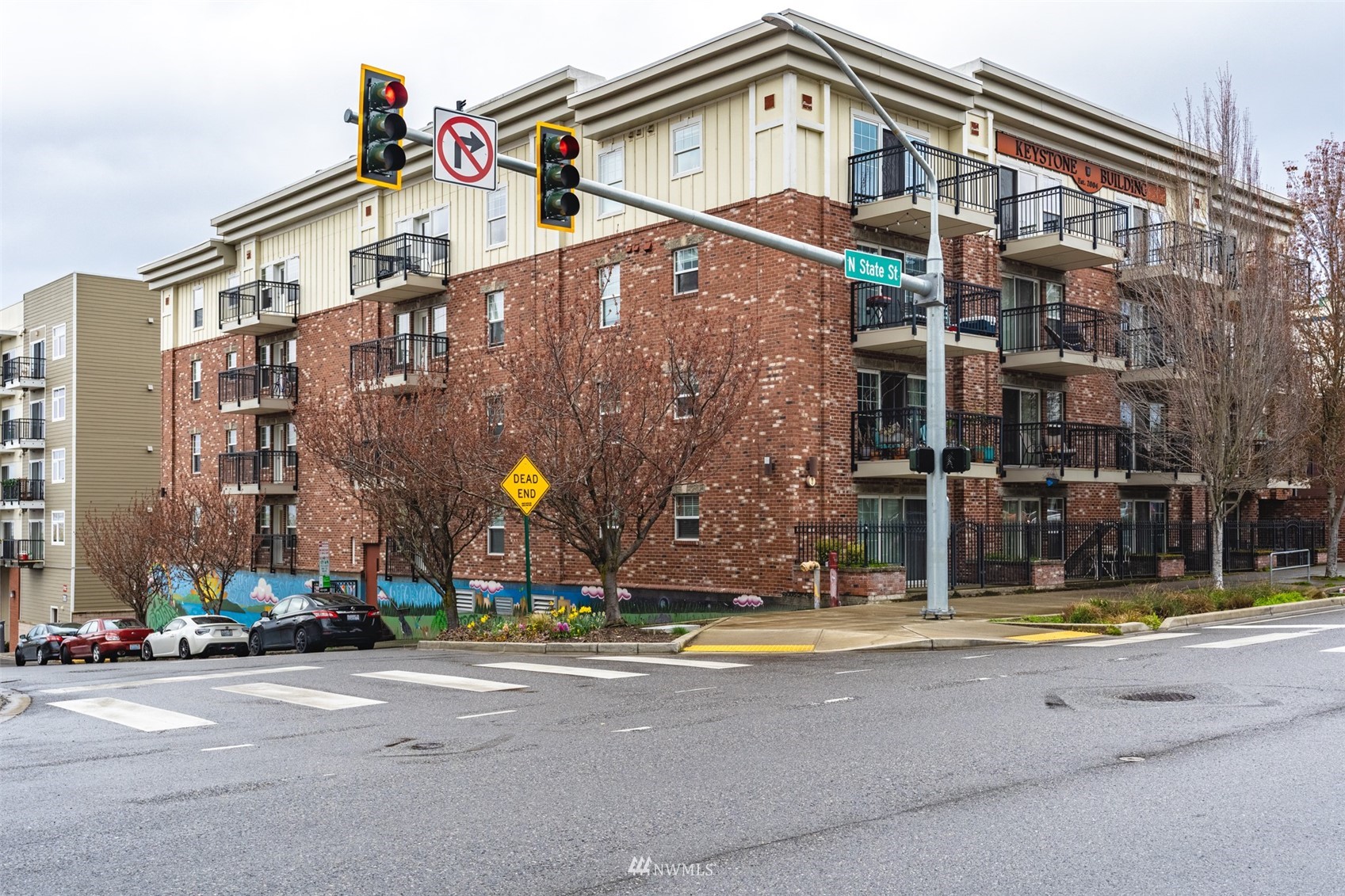 Welcome to Keystone Condos! Centrally located in the heart of downtown Bellingham and all it has to offer. This 2 bed/1 bath top floor corner unit has a SW facing deck and windows with views of the bay and waterfront. Walk straight out your door to restaurants and breweries. Enjoy your access to waterfront parks and an easy stroll to Fairhaven on the interurban trail. Building features include secure entry, assigned parking space in gated garage, courtyard, and elevator. Close to shops, restaurants, trails, farmer’s market, and WWU. Bus line for easy access to WWU & Fairhaven. No rental restrictions!