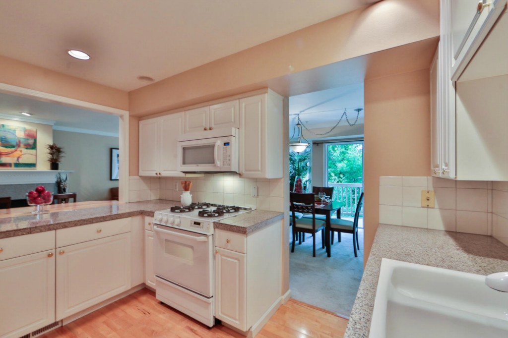 Exceptionally private, light and bright, 2 bed/2.25 bath 1,350 sq ft townhome in convenient Kirkland location. Great floor plan maximizes entertainment space. Kitchen with updated granite counter tops opens to living room with gas fireplace and huge windows to maximize light. Dining area leads to private deck. Secure common garage with 2 parking spaces & storage room. Large master suite. Smaller Townhome complex just blocks from Kirkland's downtown restaurants and businesses. Pet friendly.