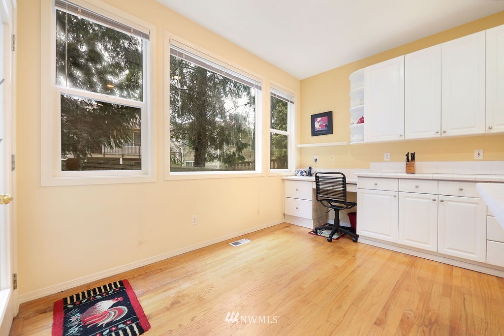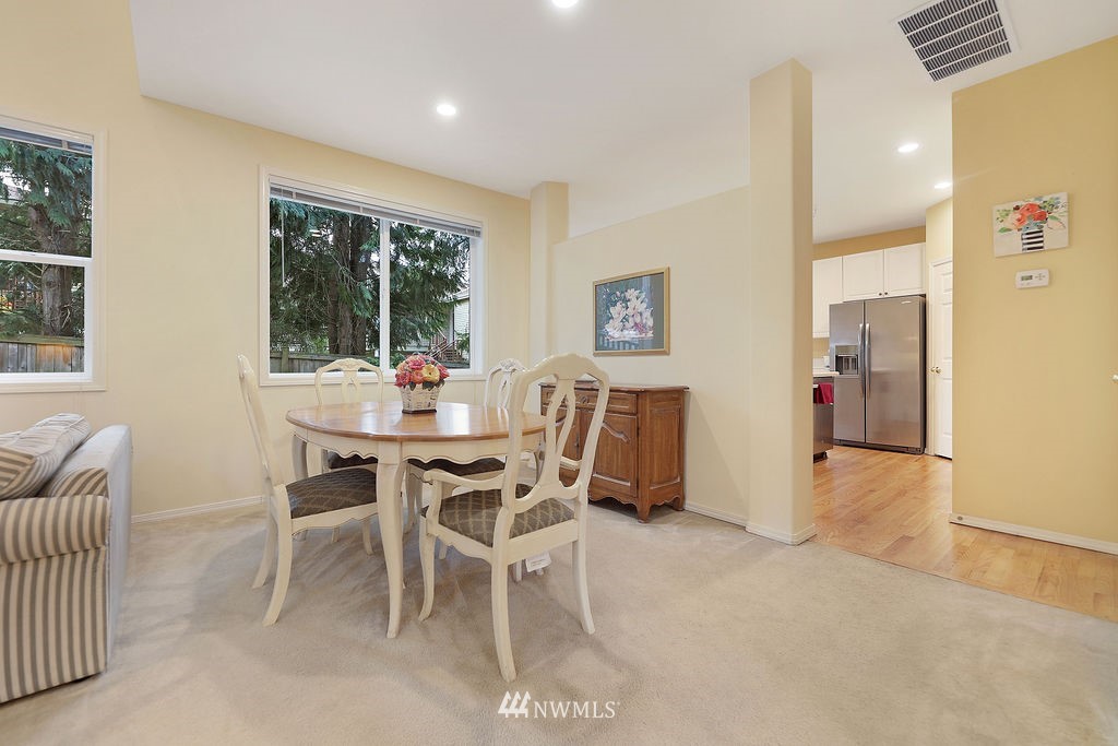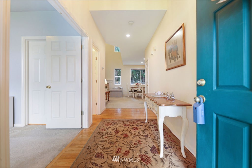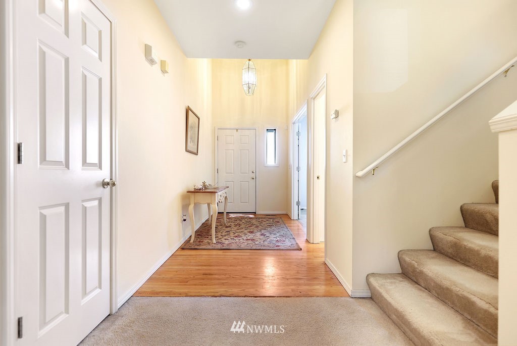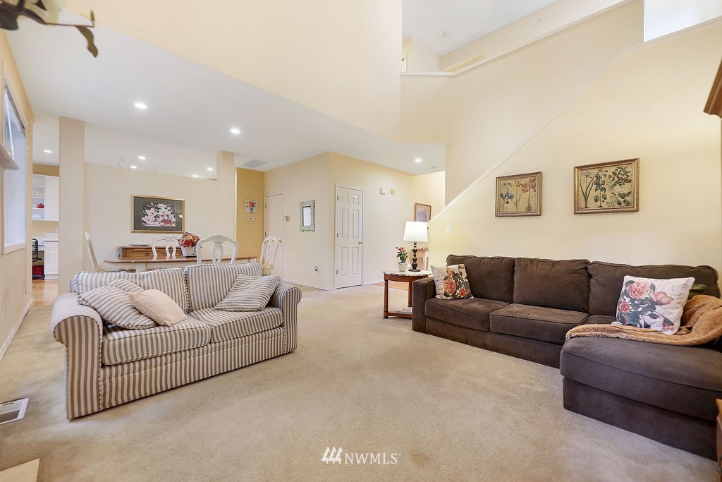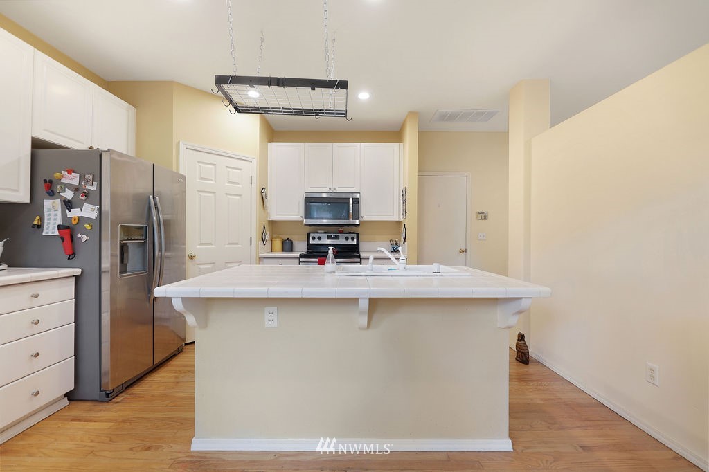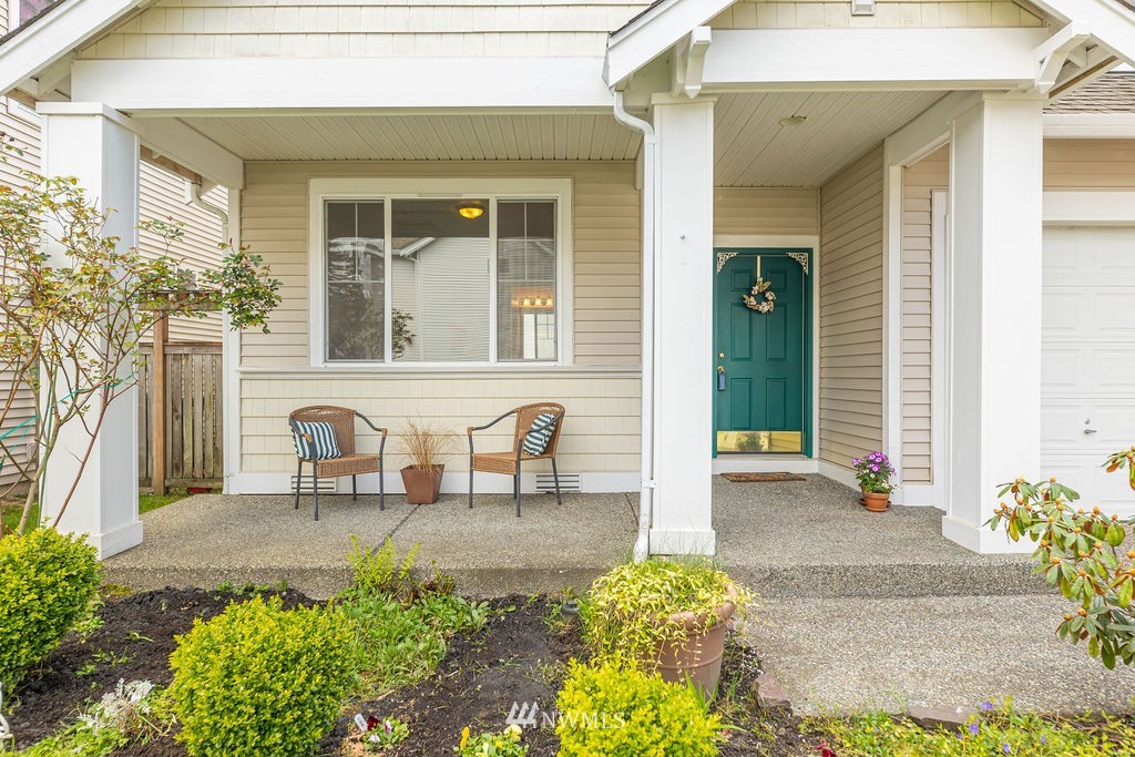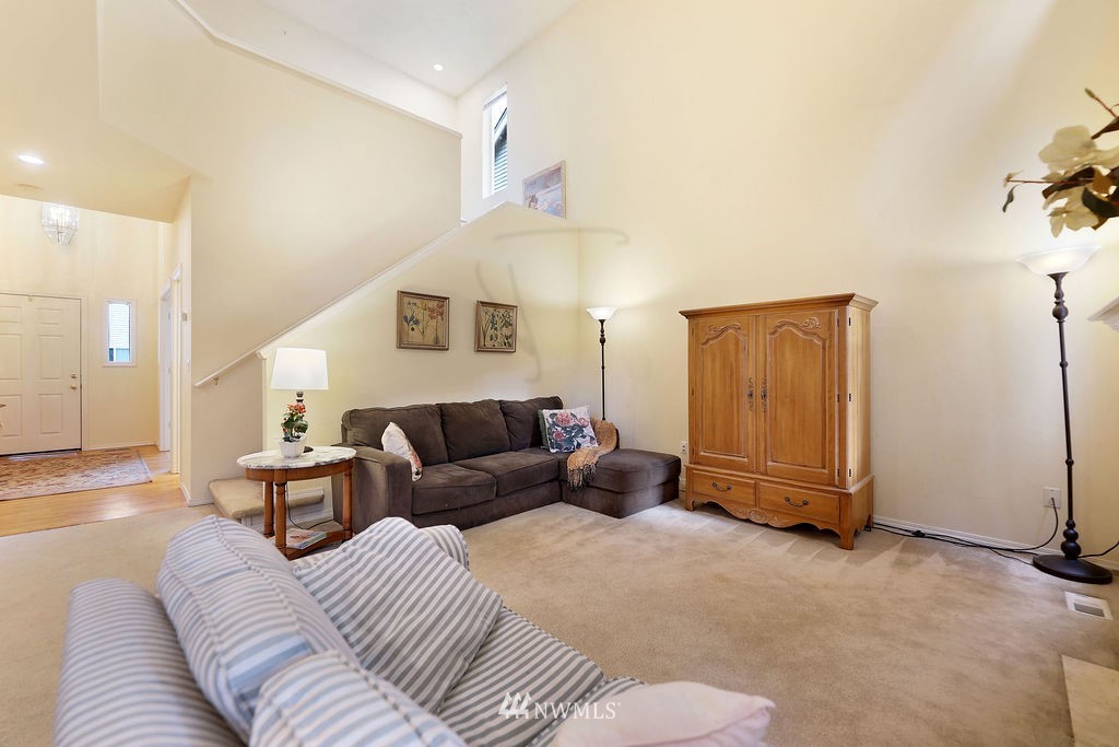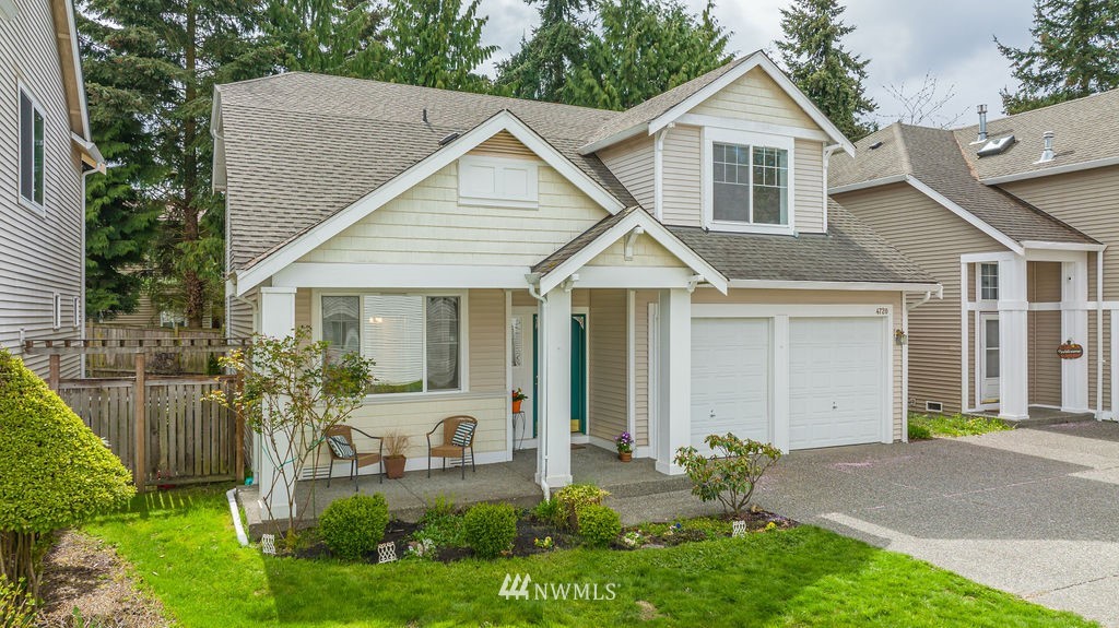 Welcome to the Gardens at Meadowdale! This two-story home has three bedrooms and three bathrooms. Grand two-story vaulted ceilings and gas fireplace in the living room. Kitchen has hard wood floors, a large island with eating space and pantry. Options to work from home either at the workstation in the kitchen or the third bedroom downstairs. The spacious primary bedroom is upstairs and includes a 5-piece ensuite that features separate glass shower and soaking tub, a double vanity & walk-in-closet. Second bedroom with ensuite bath and laundry round out the upstairs. Easy to maintain backyard with patio for summer BBQs. The front porch calls for slow morning coffees. Close to shopping and quick freeway access.