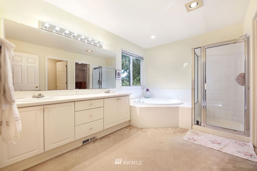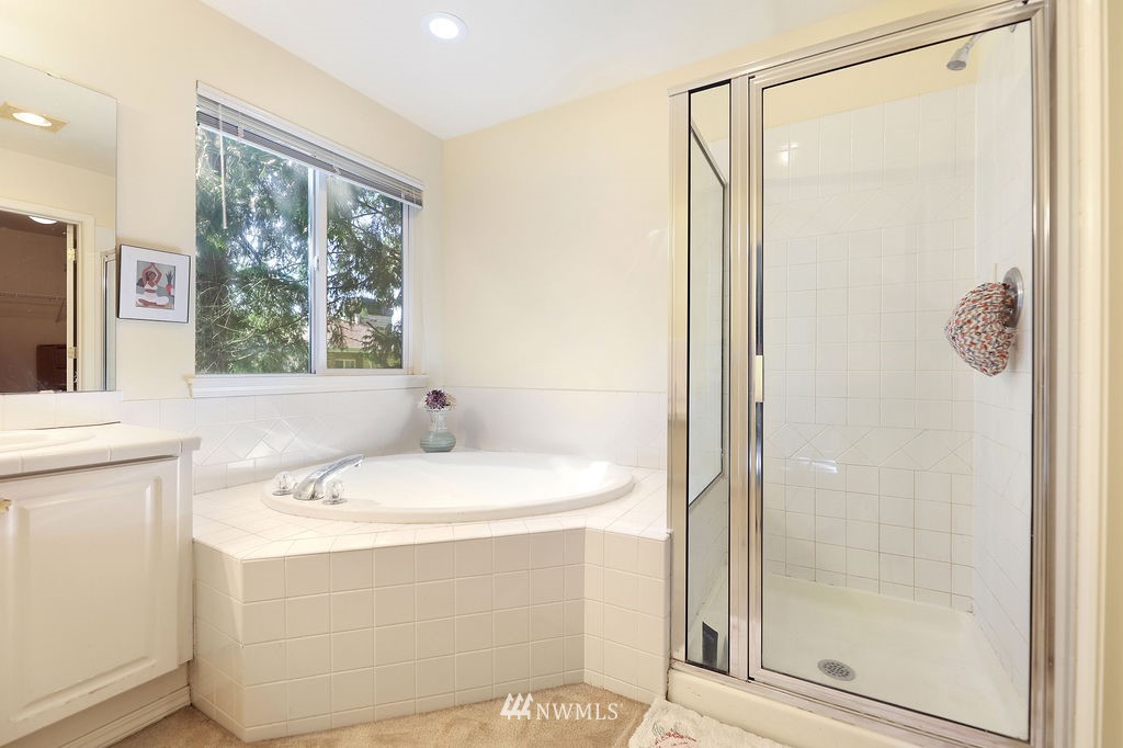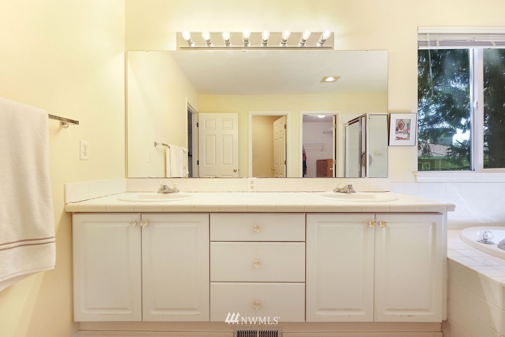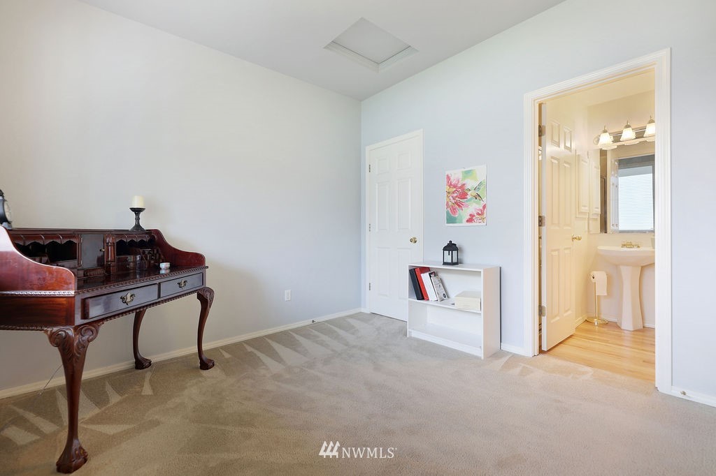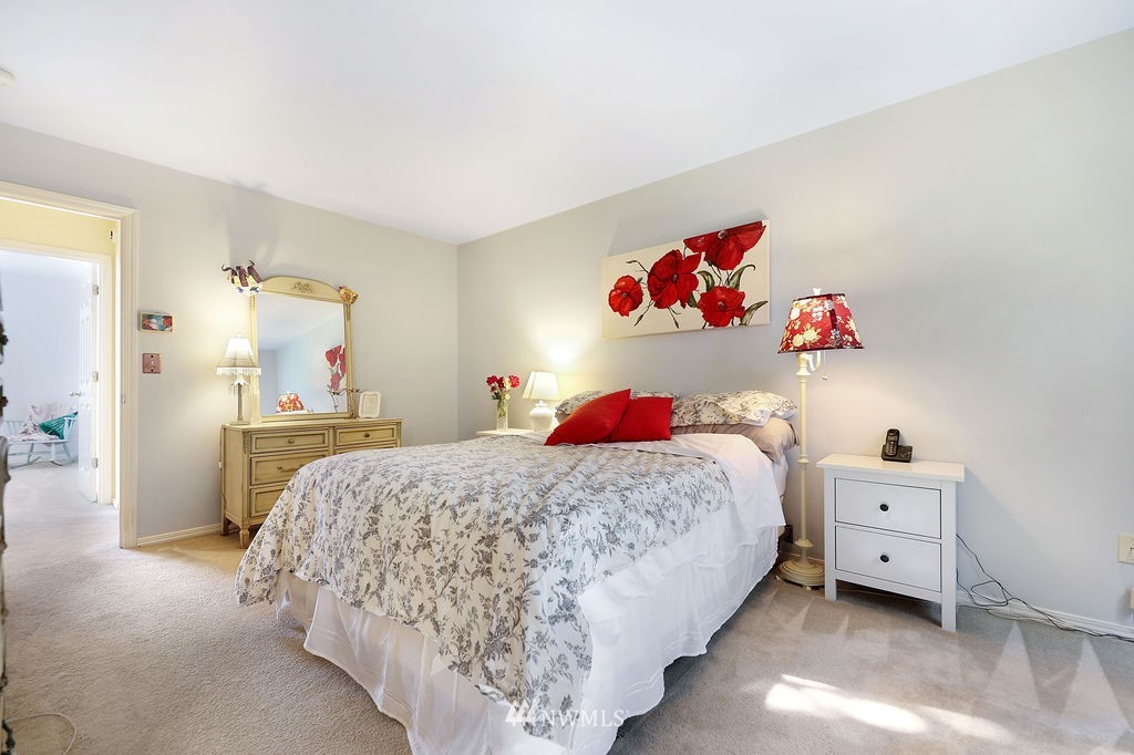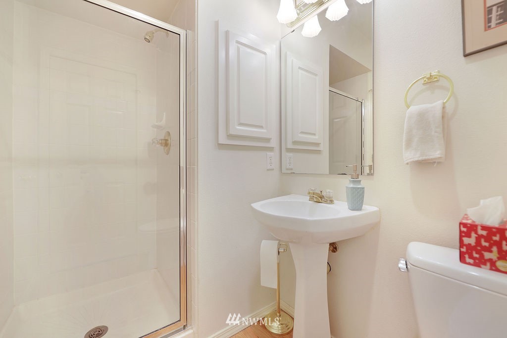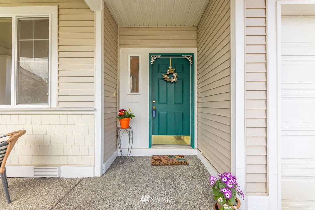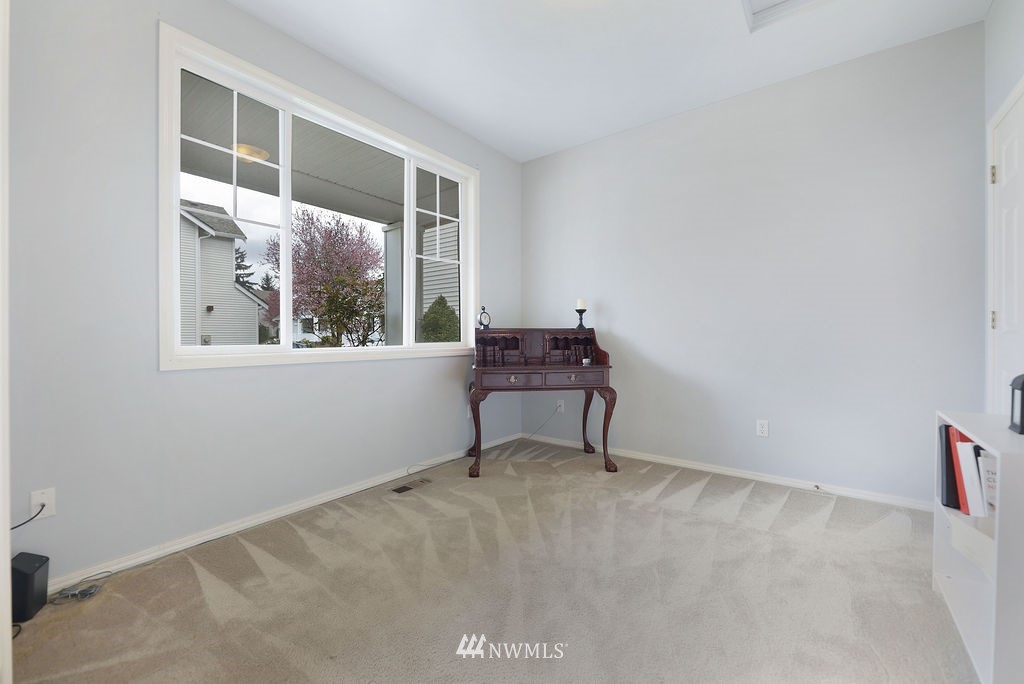 Welcome to the Gardens at Meadowdale! This two-story home has three bedrooms and three bathrooms. Grand two-story vaulted ceilings and gas fireplace in the living room. Kitchen has hard wood floors, a large island with eating space and pantry. Options to work from home either at the workstation in the kitchen or the third bedroom downstairs. The spacious primary bedroom is upstairs and includes a 5-piece ensuite that features separate glass shower and soaking tub, a double vanity & walk-in-closet. Second bedroom with ensuite bath and laundry round out the upstairs. Easy to maintain backyard with patio for summer BBQs. The front porch calls for slow morning coffees. Close to shopping and quick freeway access.