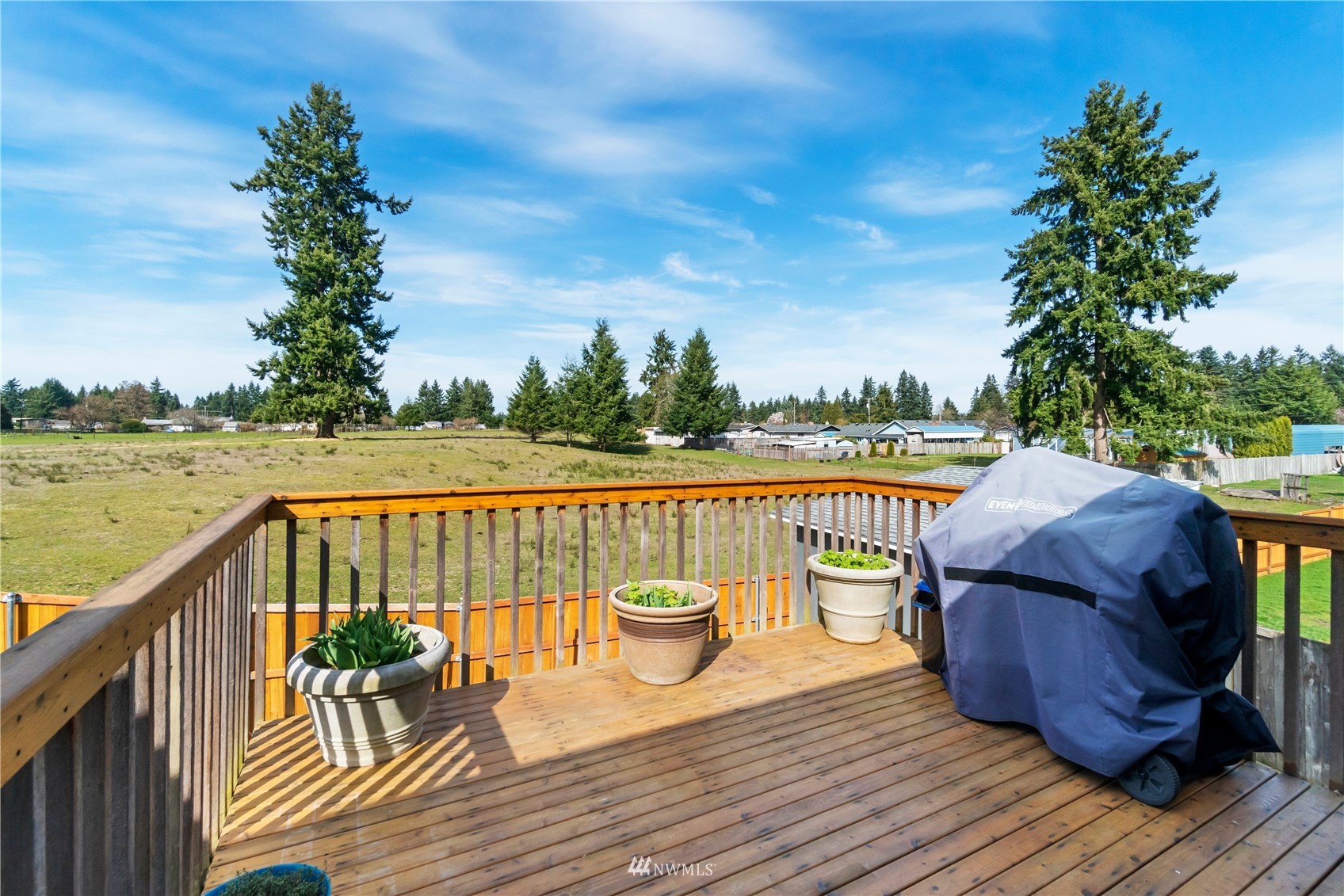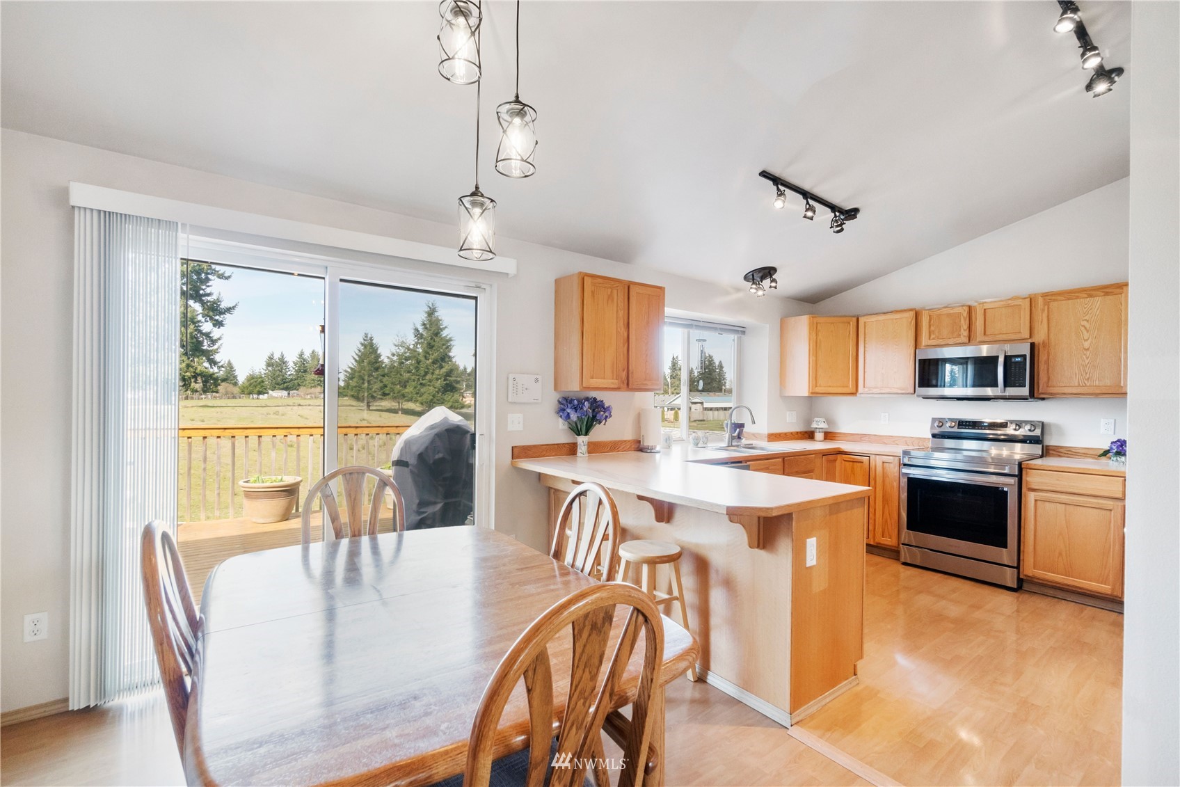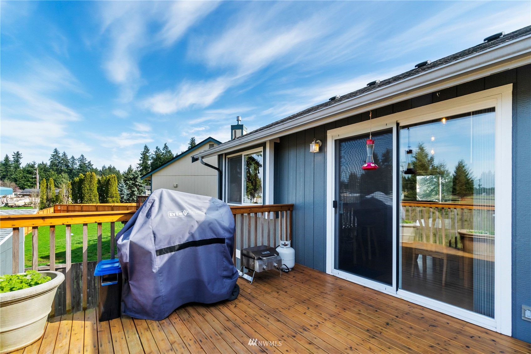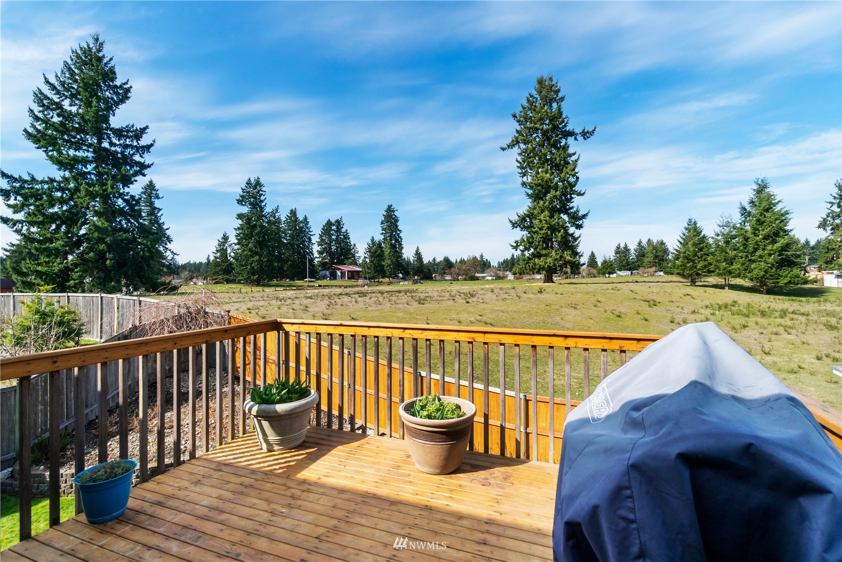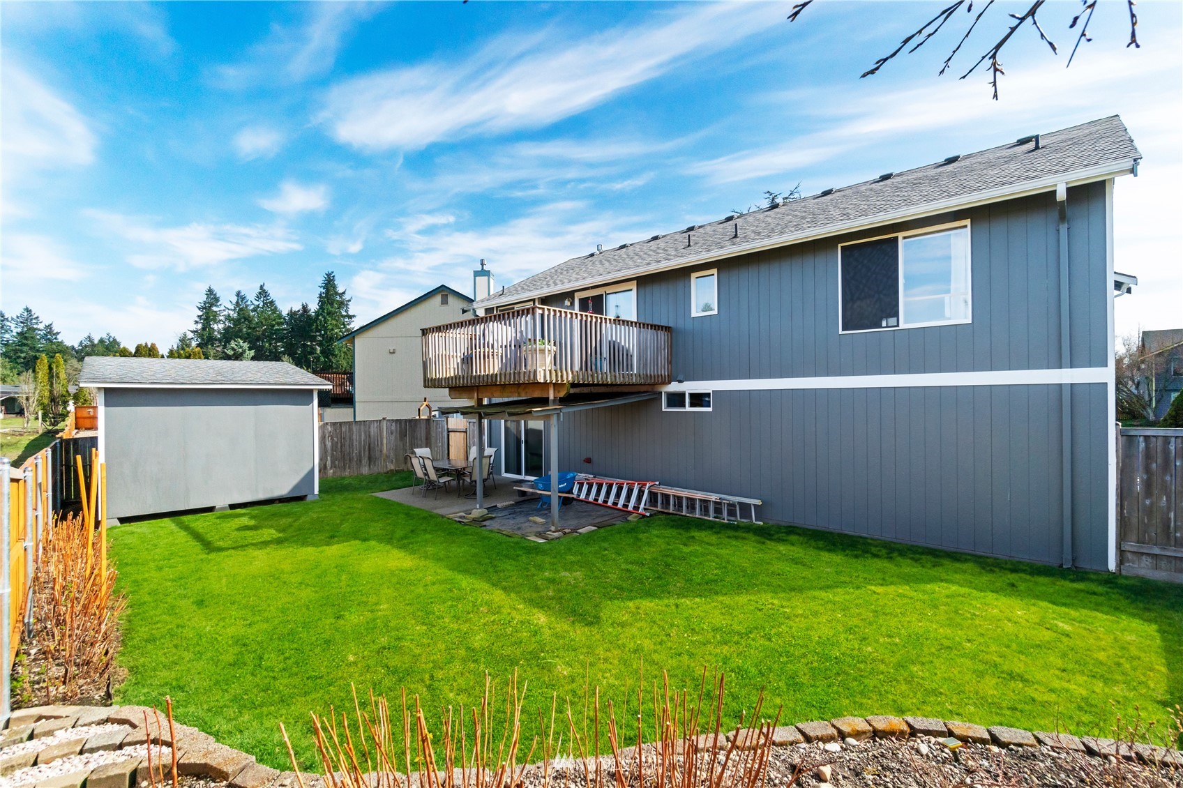Imagine entertaining or relaxing in the lovely bright living rm next to the gas fireplace. Or spreading out to create your culinary masterpieces in the kitchen w/ample counterspace, cabinetry & newer SS appliances. Settle into the dining rm, or make your way to the deck to enjoy your meal. Past the living space is the cozy primary suite w/bath. In addition there are 3 more relaxing nice-sized bdrms. The great rm w/access to the patio & fenced back yard! The yard is lovingly maintained w/ a large garden shed plus blueberry & raspberry bushes. Adding to the charming is the peacefulness & privacy that the pasture behind the home gives. Also features a security system & a 2-car garage. Elementary school bus stop just steps from front door!