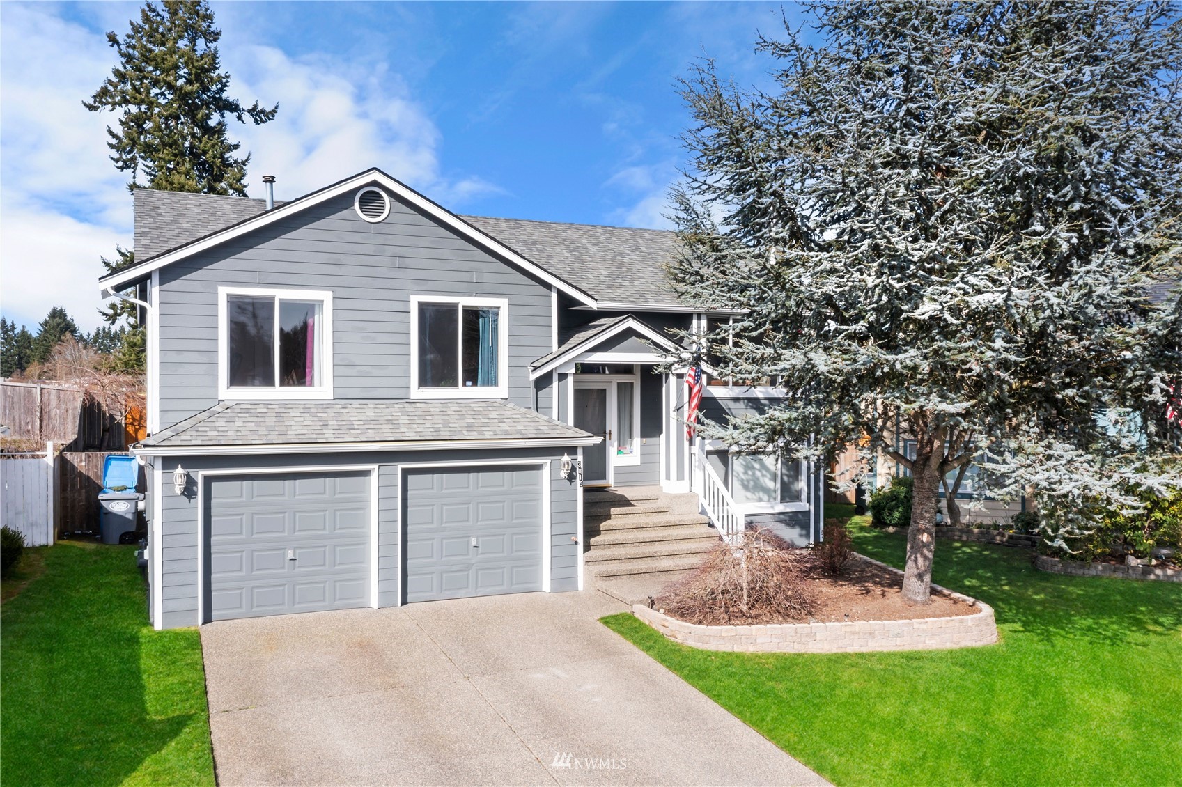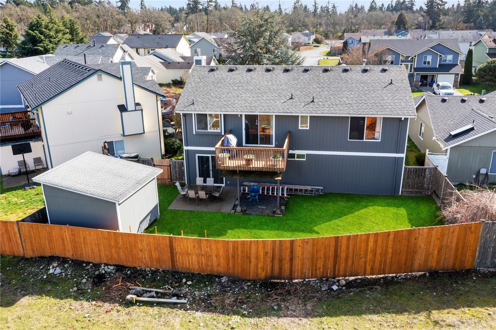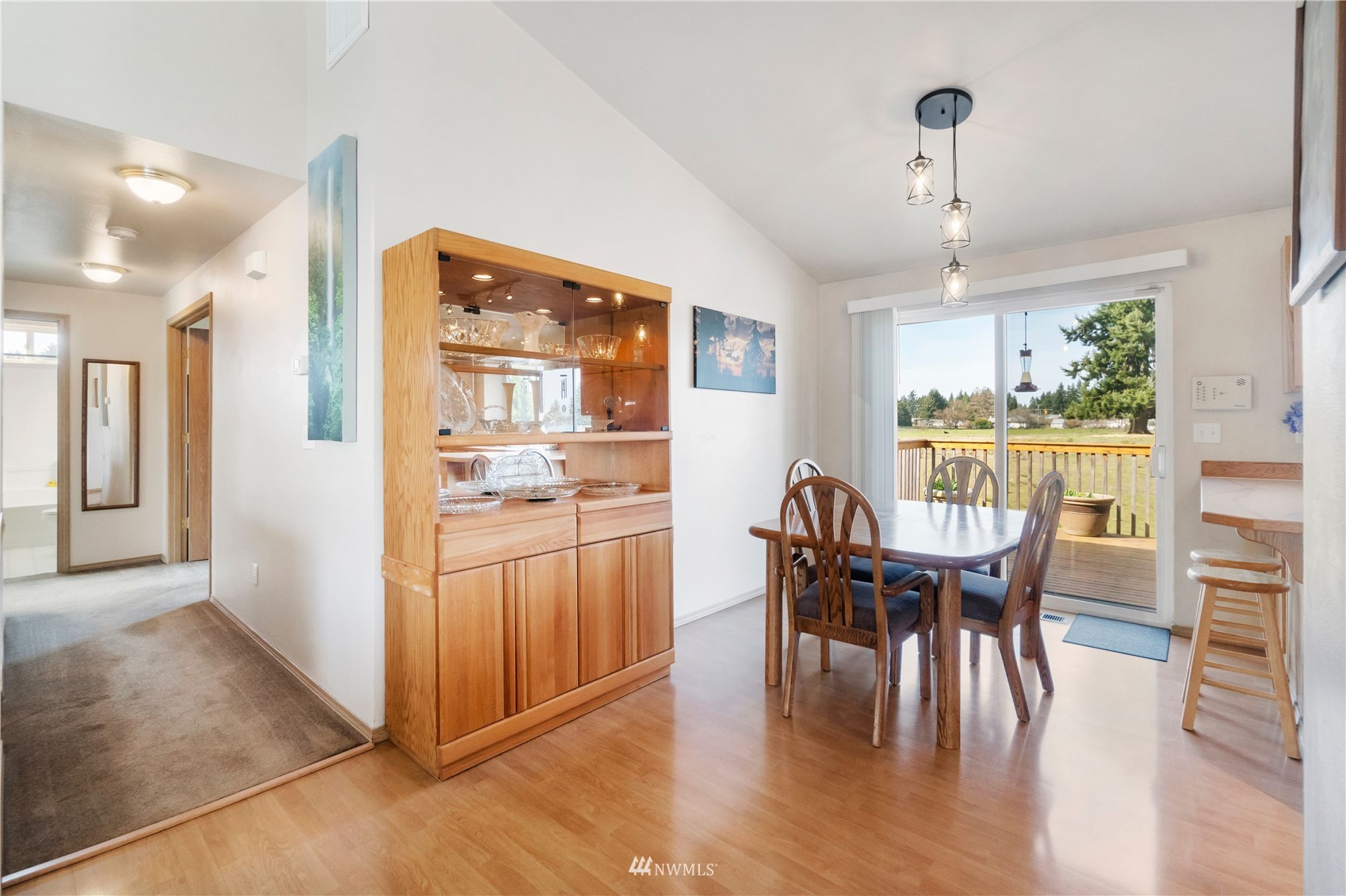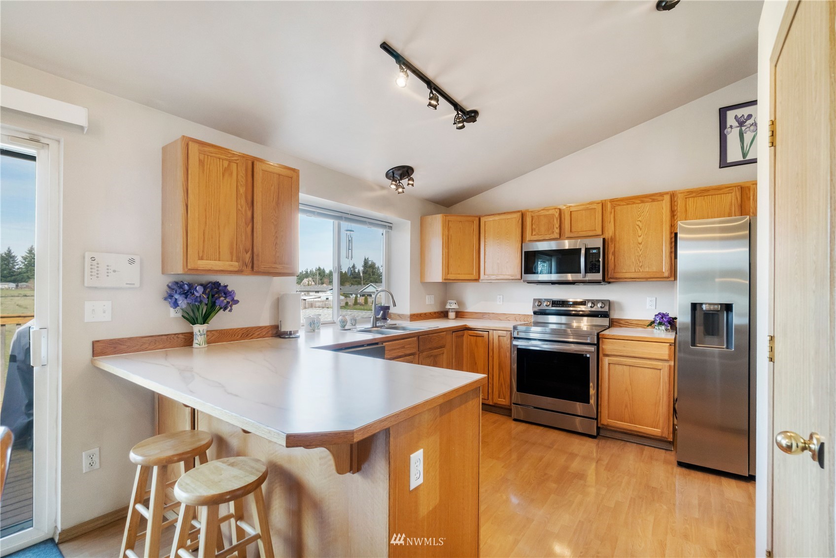 Imagine entertaining or relaxing in the lovely bright living rm next to the gas fireplace. Or spreading out to create your culinary masterpieces in the kitchen w/ample counterspace, cabinetry & newer SS appliances. Settle into the dining rm, or make your way to the deck to enjoy your meal. Past the living space is the cozy primary suite w/bath. In addition there are 3 more relaxing nice-sized bdrms. The great rm w/access to the patio & fenced back yard! The yard is lovingly maintained w/ a large garden shed plus blueberry & raspberry bushes. Adding to the charming is the peacefulness & privacy that the pasture behind the home gives. Also features a security system & a 2-car garage. Elementary school bus stop just steps from front door!