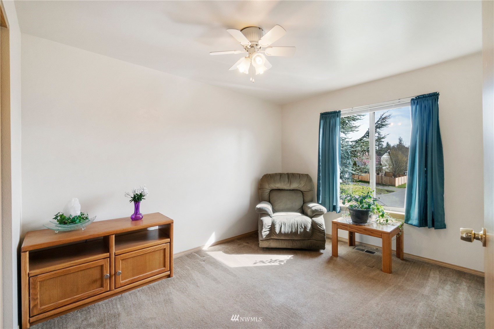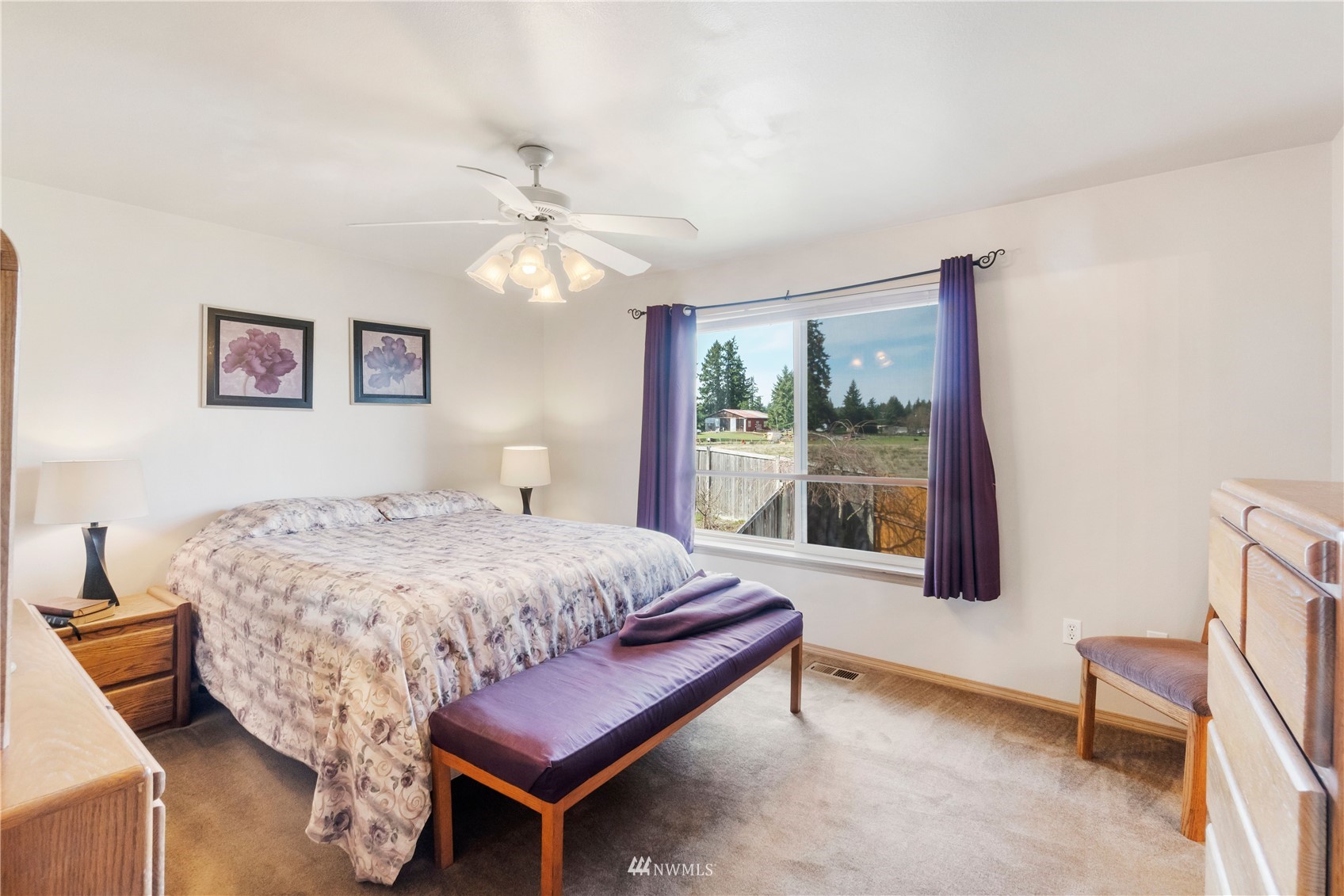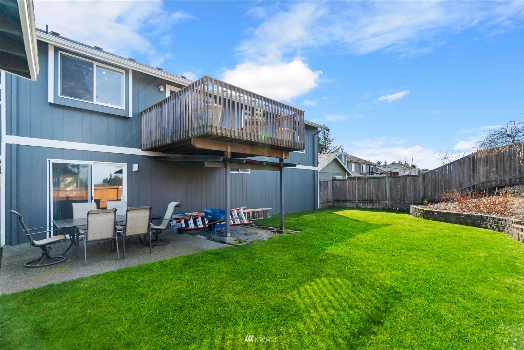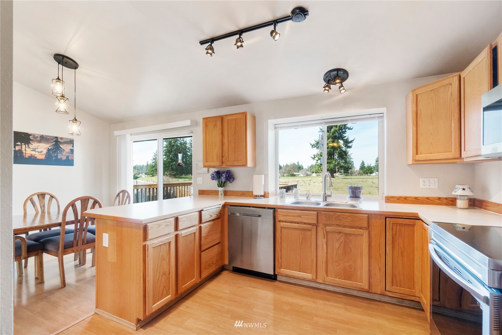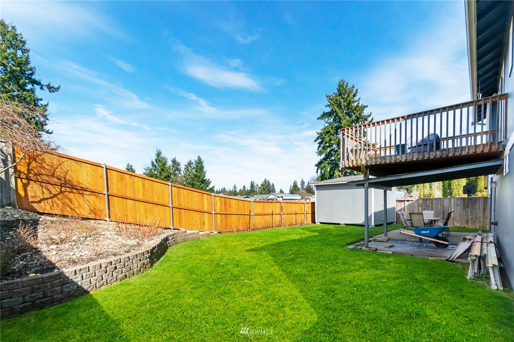 Imagine entertaining or relaxing in the lovely bright living rm next to the gas fireplace. Or spreading out to create your culinary masterpieces in the kitchen w/ample counterspace, cabinetry & newer SS appliances. Settle into the dining rm, or make your way to the deck to enjoy your meal. Past the living space is the cozy primary suite w/bath. In addition there are 3 more relaxing nice-sized bdrms. The great rm w/access to the patio & fenced back yard! The yard is lovingly maintained w/ a large garden shed plus blueberry & raspberry bushes. Adding to the charming is the peacefulness & privacy that the pasture behind the home gives. Also features a security system & a 2-car garage. Elementary school bus stop just steps from front door!