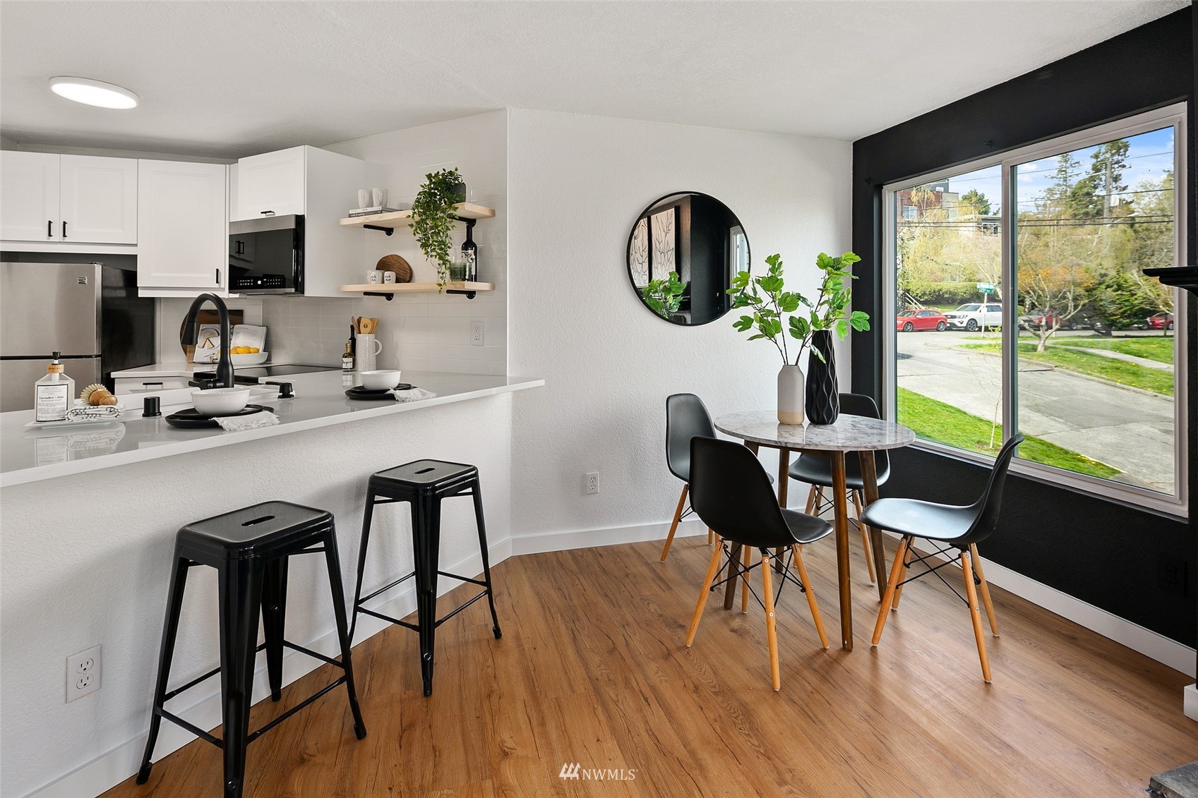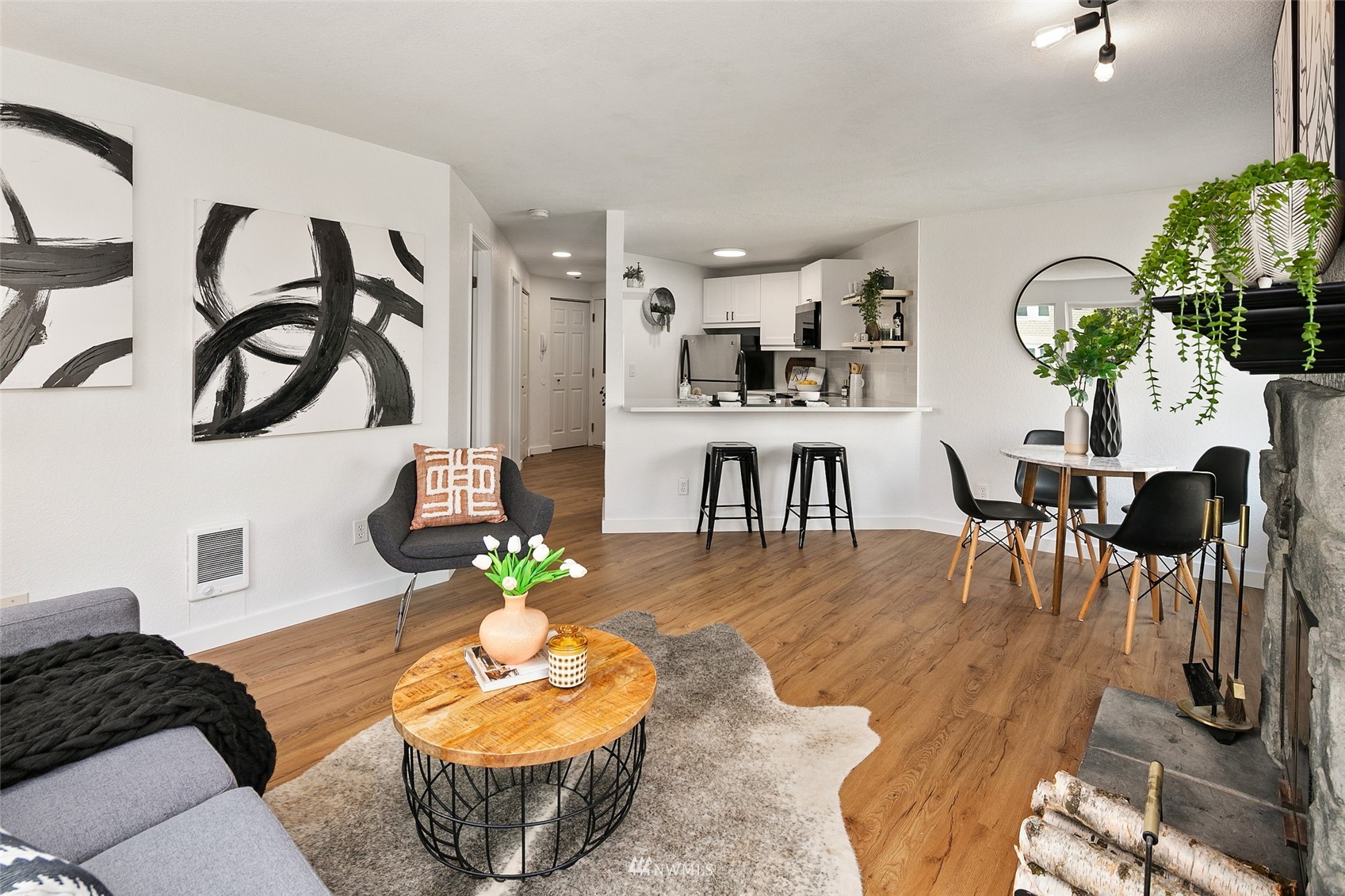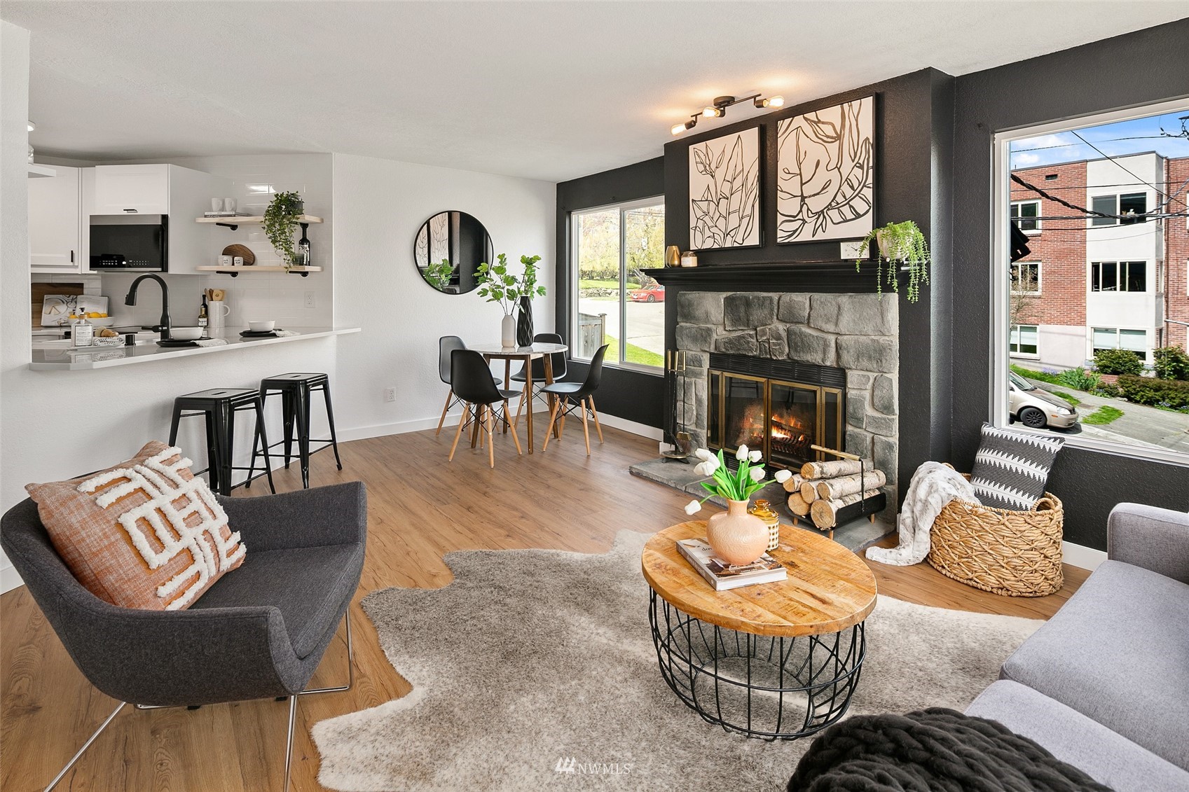This light flooded & remodeled corner unit is ready for you to live the Madison Valley dream. The open kitchen with new appliances & clean aesthetic beautifully accentuates sizeable living room with cozy wood fireplace. One sizeable bedroom with ample closets & brand new bathroom lets you just move in and enjoy. Easy commute to Downtown & Eastside by car or bus. Or, bring your pooch to nearby coffee shops & work from there. This wonderful property is close to Madison Valley shops, Capitol Hill nightlife, & high end homes. Enjoy the gardens during your evening stroll thru the neighborhood. Secured garage parking, pet friendly, no rental cap, & in-unit laundry are just a few perks this condo offers. Pre-Inspected for your convenience.