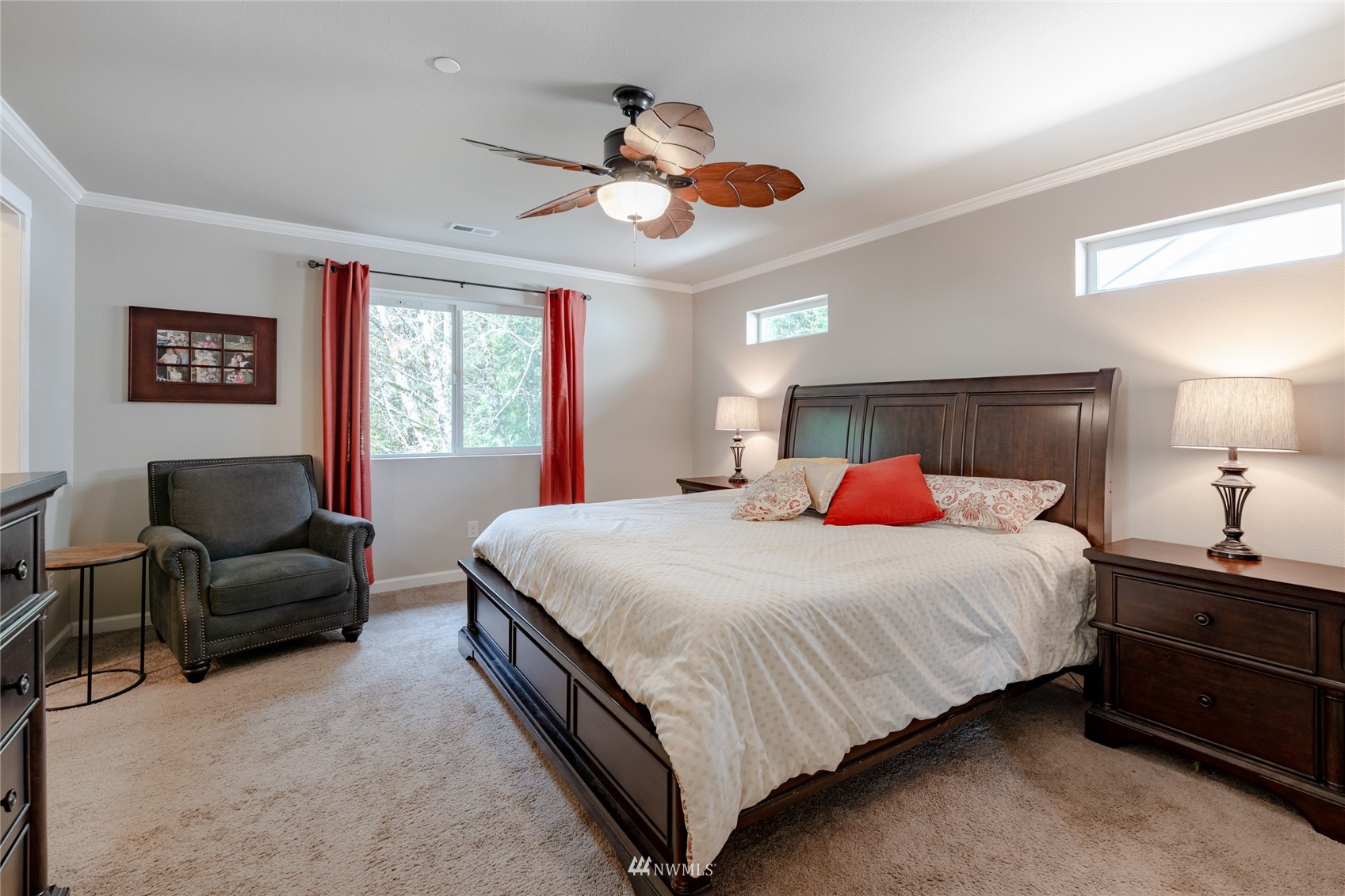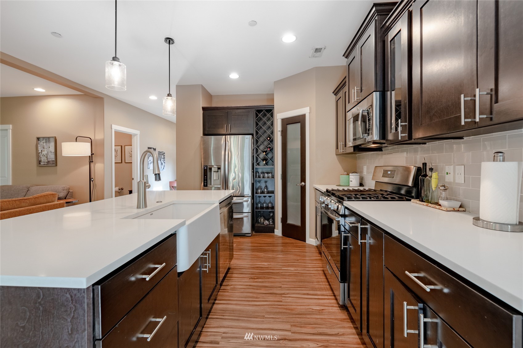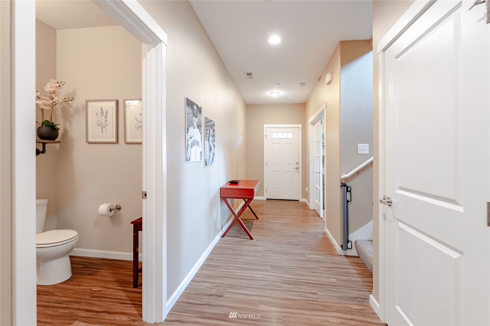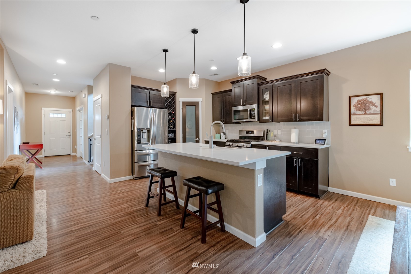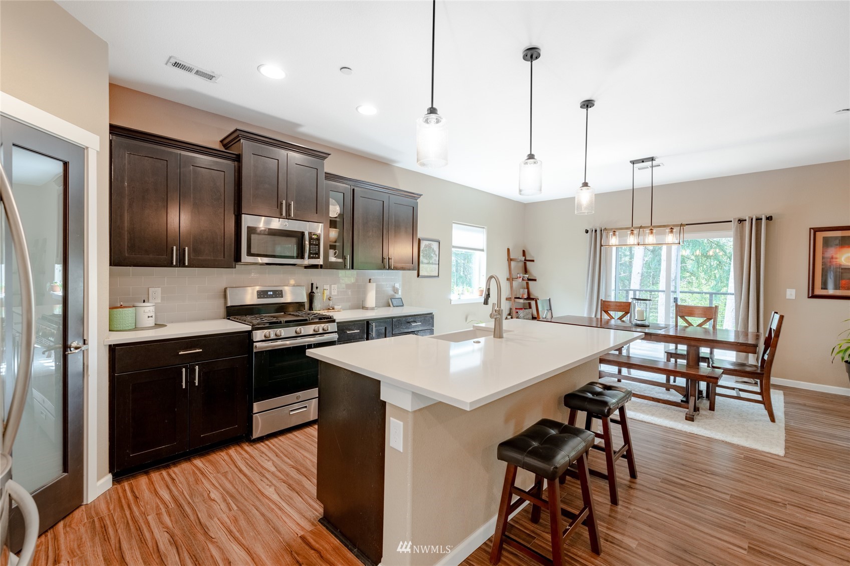 Beautiful home in the popular Westside of Olympia, close to schools/shopping, features a large covered front porch, chef's island in kitchen with a walk-in pantry, open concept to dining and living room, large mudroom, French doors to den off entry on the main floor, upstairs large primary bedroom features a 5 piece bathroom & large walk-in closet, upstairs second full bath w/2 sink, 2 nice sized guest bedrooms, large bonus room upstairs being utilized as a family room, laundry conveniently located upstairs for easy access. Back yard fenced in for furry friends and has a beautiful deck off dining & kitchen. Home backs to a greenbelt with walking trails, meaning no future neighbors. This is a must see home and won't last long on the market!