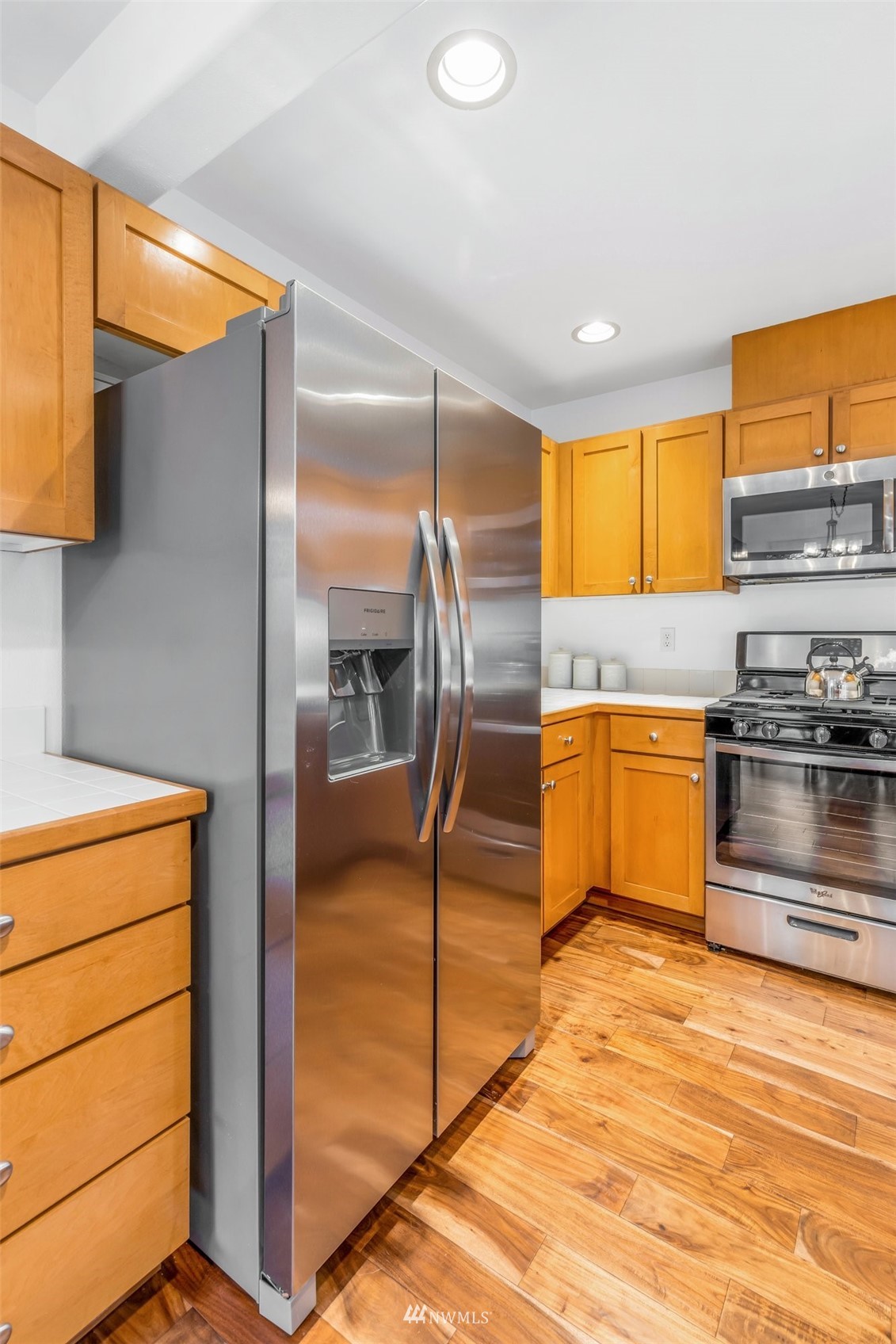 Fantastic location in a gated condominium development in upper Edmonds. Close to all amenities and main roadways.This large 3 bedroom/2.5 bath unit is a 2 story w/ lots of updated features.End unit w/2 car garage & 2 spots in front of the garage. A well kept unit that includes tankless hot water,new toilets, S/S appliances,newer engineered hardwood and carpet upstairs. There are 3 ductless mini splits for efficient heating & cooling. The primary bedroom has space for a king bed & the primary bathroom features a W/I closet, soaking tub and shower stall.The appliances are new & the hardwood flooring is hand scraped to give this home a fresh look along w/ newly painted interior walls. Outside is a fenced backyard area to enjoy!