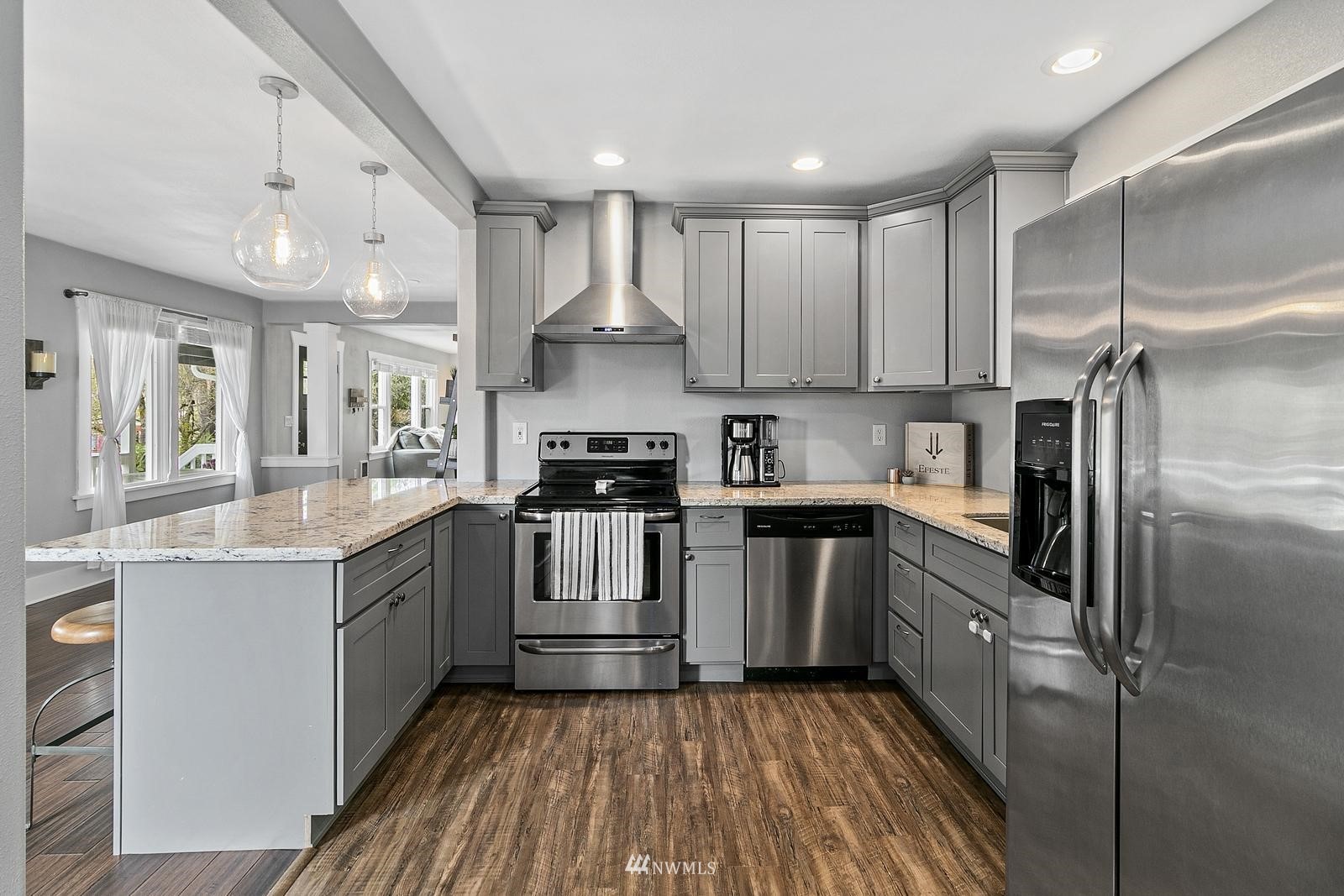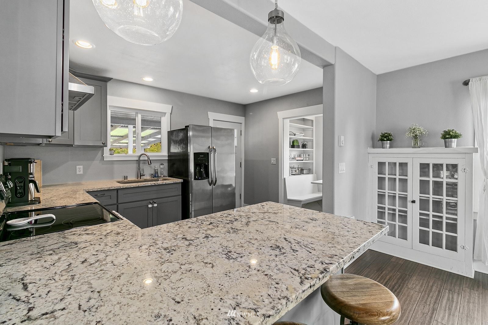 Remodeled craftsman home in DT Sumner on 1/4 acre lot. Walking distance to Loyalty Park and the Sumner Train Station. Standout features include: New detached garage with front & back garage doors, New exterior paint, full remodel in 2016; new electrical plumbing, light fixtures, floors, Frigidaire S/S appliances, seated nook in the kitchen, extra parking, Pickleball/sports court, outdoor living area with a covered back deck, level backyard with no neighbors directly behind, custom hobby shed, primary en suite with massive walk in shower & claw foot tub, dual sinks, huge laundry room, downstairs den perfect for work at home office, award winning Sumner schools easy freeway access and more. Home has been pre-inspected and is move in ready.