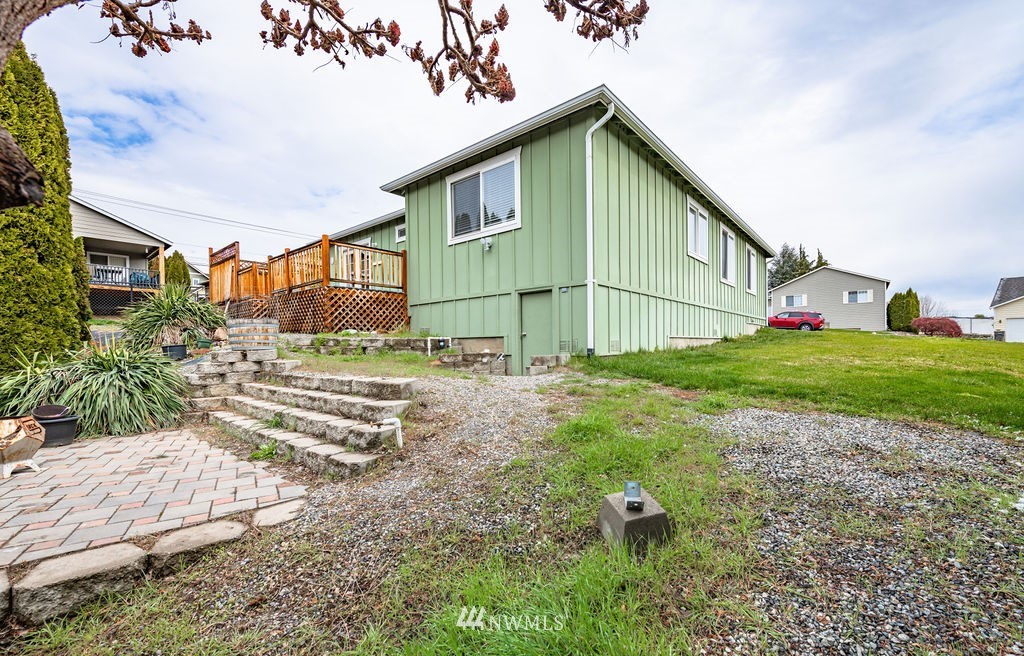 This one won't last long! Single level, cozy, affordable 3 bed 2 bath home in a quiet East Wenatchee neighborhood. This home provides over 1.300 sq ft, the primary bedroom prides it's own bathroom, french doors that go out to a deck, and is privately located off of the kitchen, the laundry room is off of the two car garage and home provides plenty of space for storage, including ample easy access storage under the home. Sprinkler system is on irrigation water.