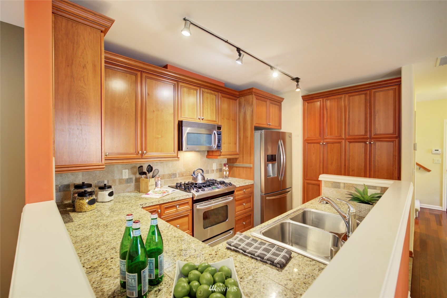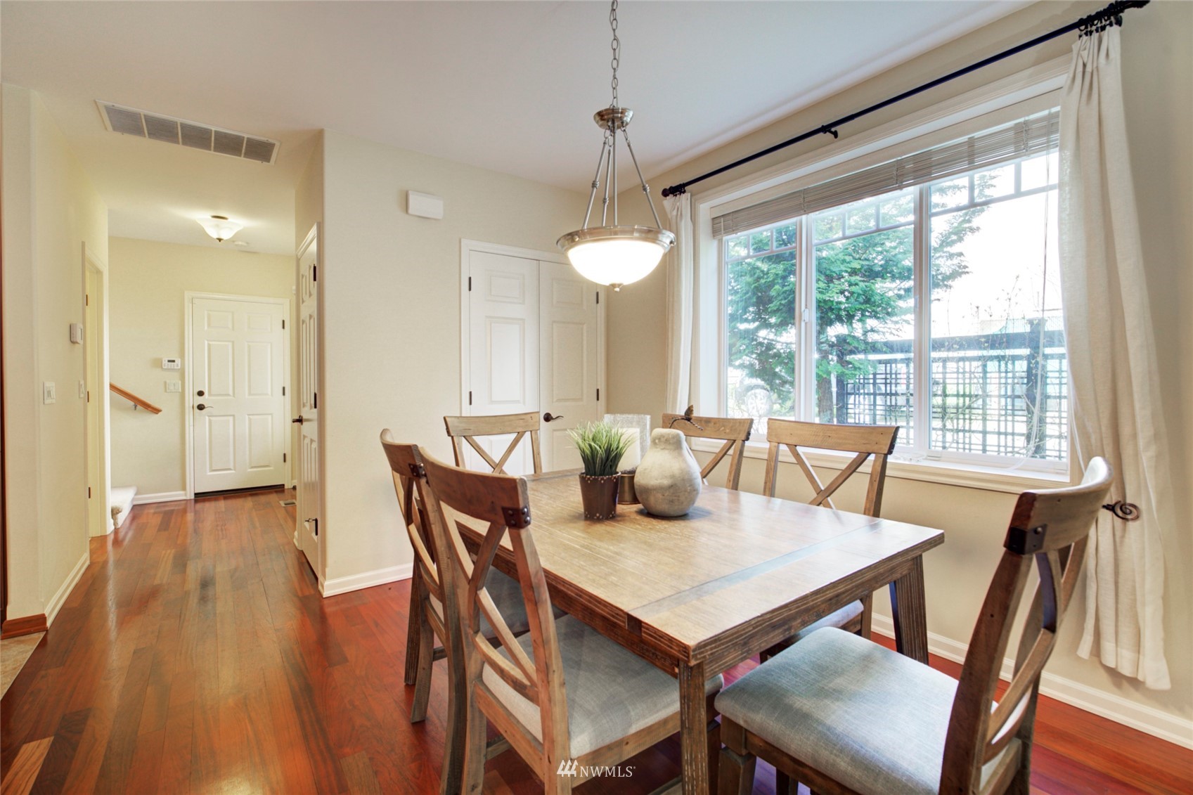 Beautiful and spacious townhome located just above the Edmonds Bowl. Features include high ceilings, formal dining, Brazilian Cherry hardwood floors, custom cabinets, granite countertops, S/S appliances, a gas fireplace with a great open floor plan that flows nicely out to a private patio and garden space. All three bedrooms and guest bath are upstairs including a primary, ensuite bath w/walk-in closet. Conveniently located in the 5 Corners neighborhood, near great restaurants, shopping, Yost Park and Pool, Edmonds Community College and Downtown Edmonds.