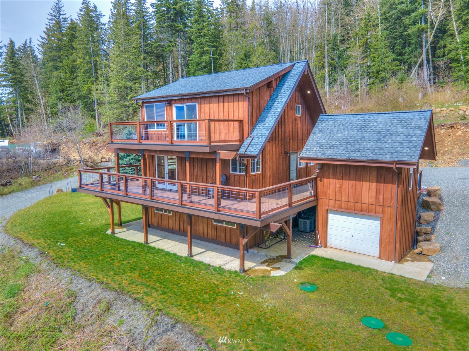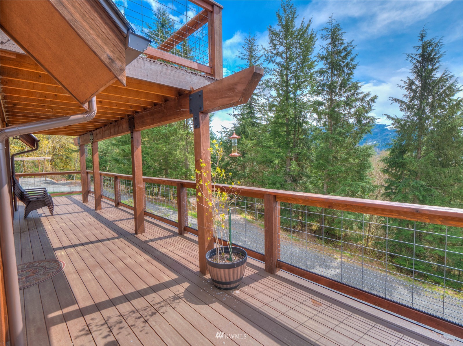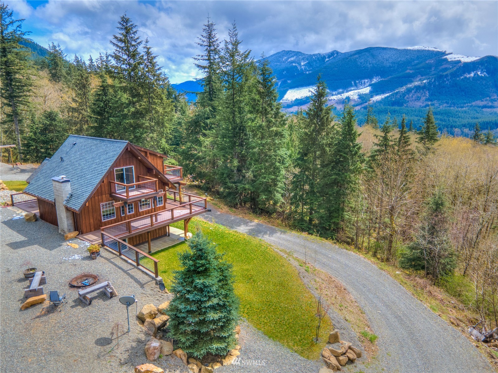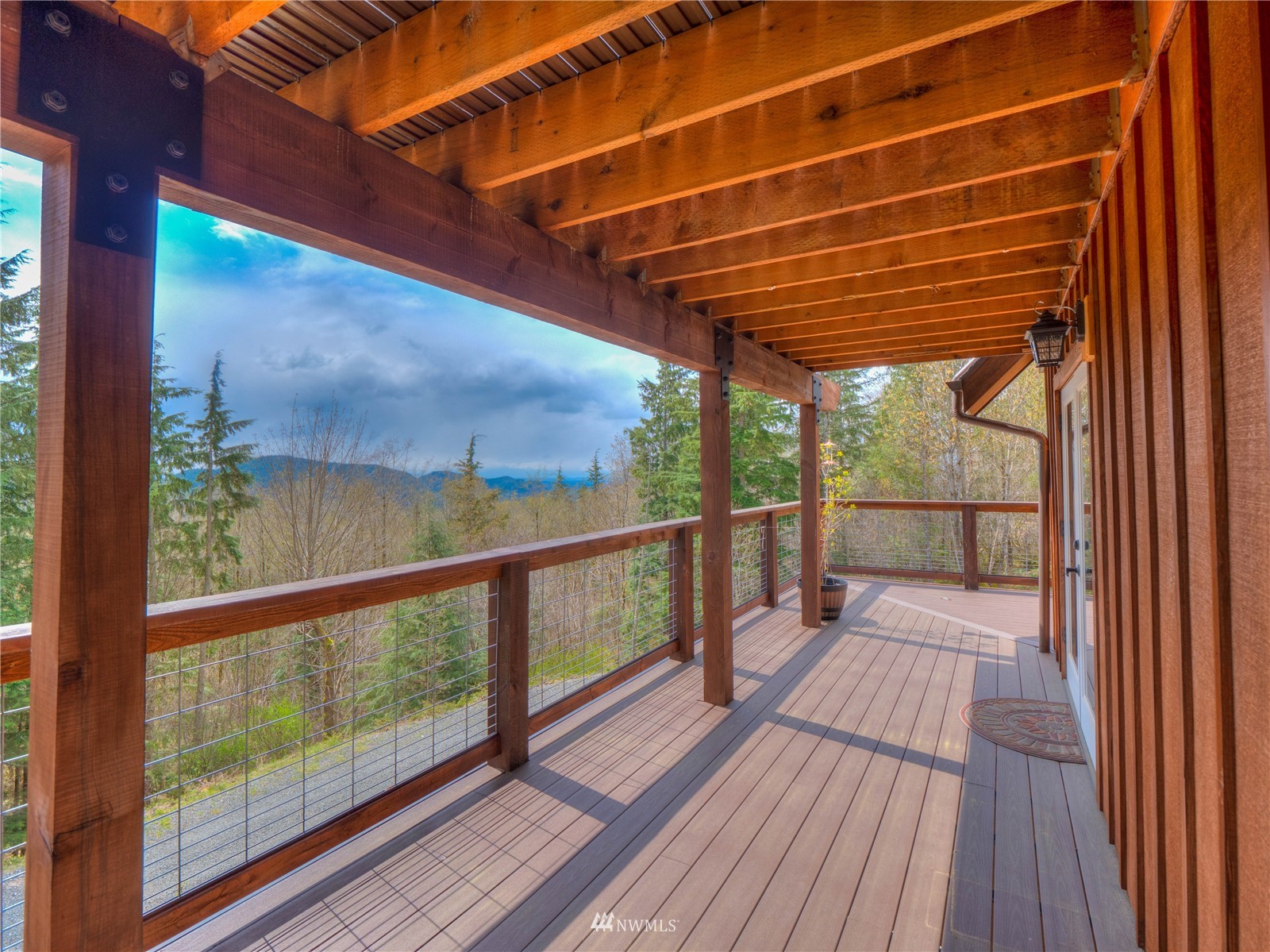2 PARCELS, SHY 10 ACRES Stunning territorial & sunset views from this meticulously refinished 3 bedroom, 2 bath home on 4.9 acres. LVP flooring throughout. Updated kitchen w/ Quartz counters, SS appliances & bar height island seating. Adjacent living room w/ pellet stove. Primary suite w/ vaulted tongue & groove ceiling, 2 view balconies & a private .75 bath w/ custom tile shower, walk-in closet and dual sink vanity. Forced air furnace w/ heat pump & AC. 2 bedrooms, a rec room & .75 bath in the fully finished daylight basement. Streaming capable internet service. Newer wrap around TimberTech decking on the main. New well in 2017. New roof in 2021. The ultimate private setting yet close to Maple Valley/Covington amenities.