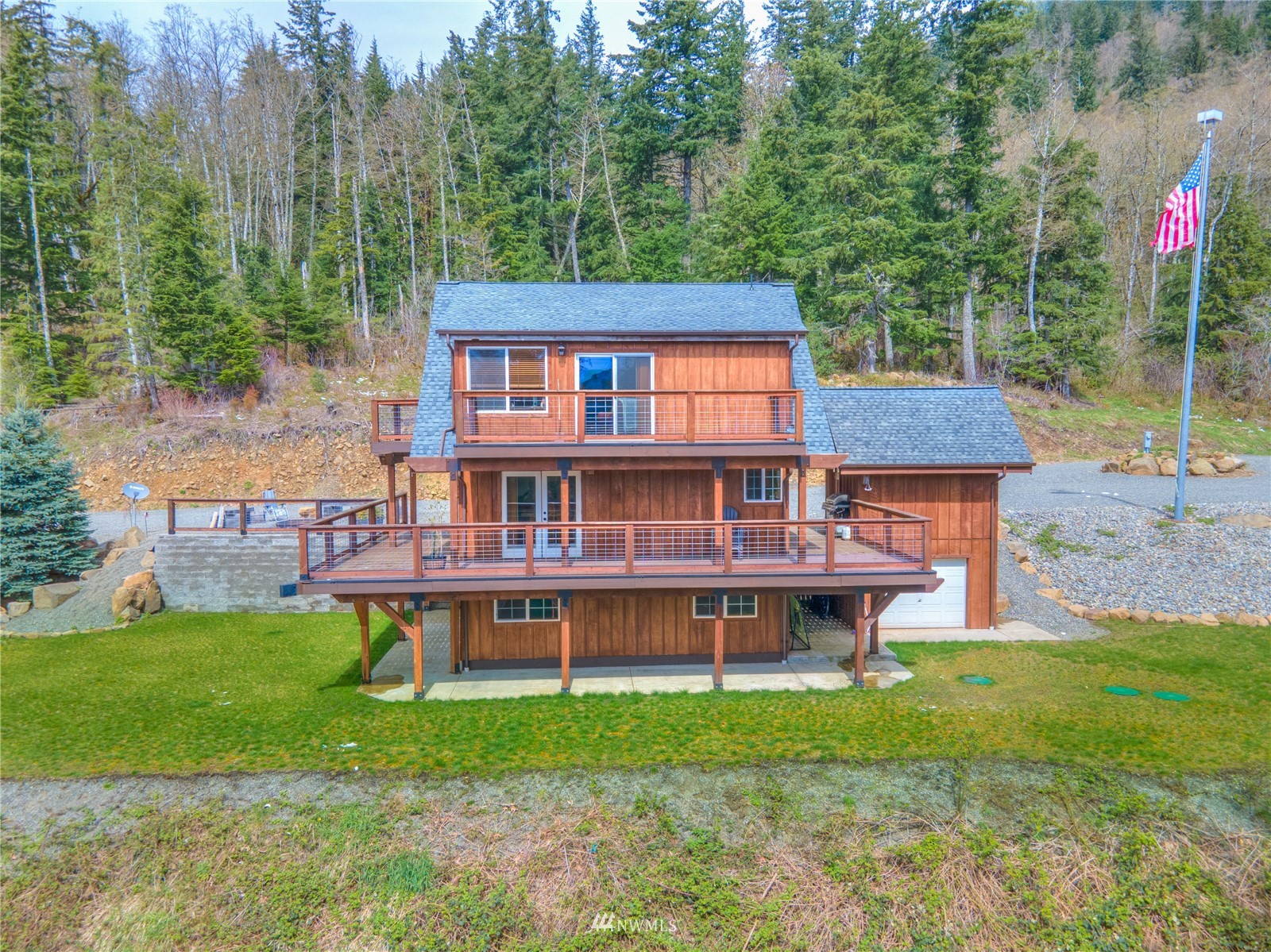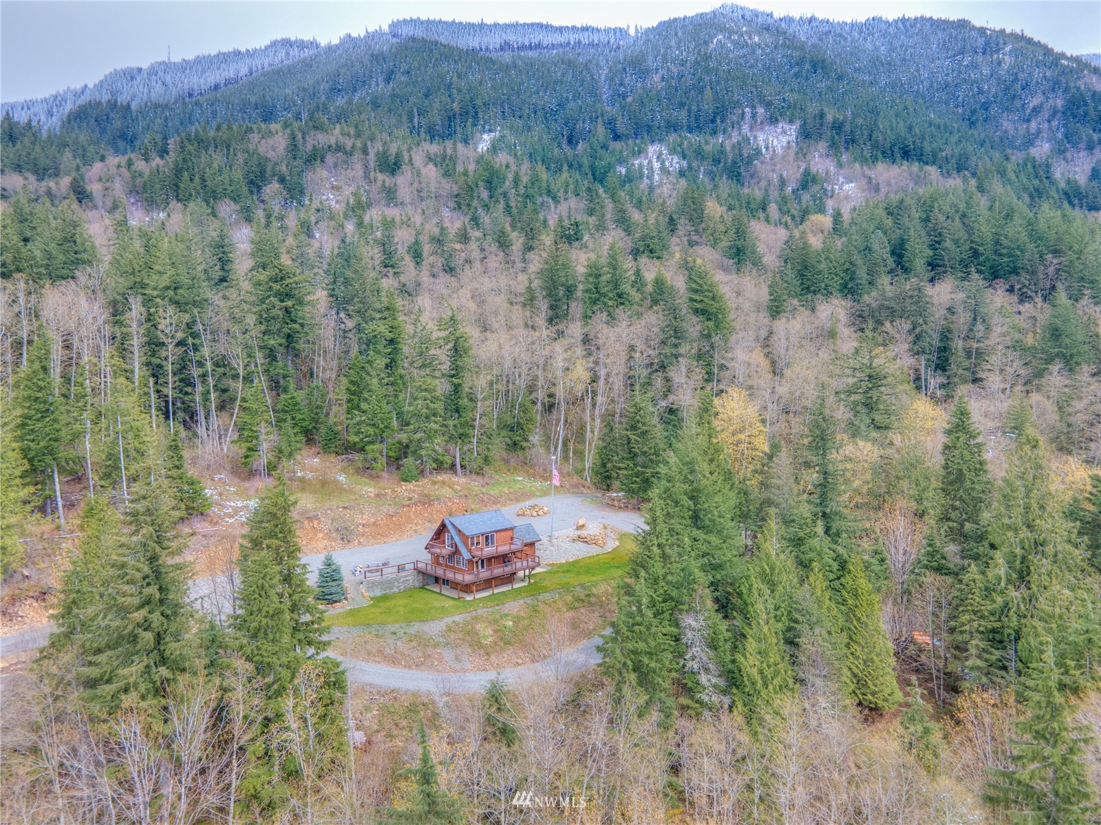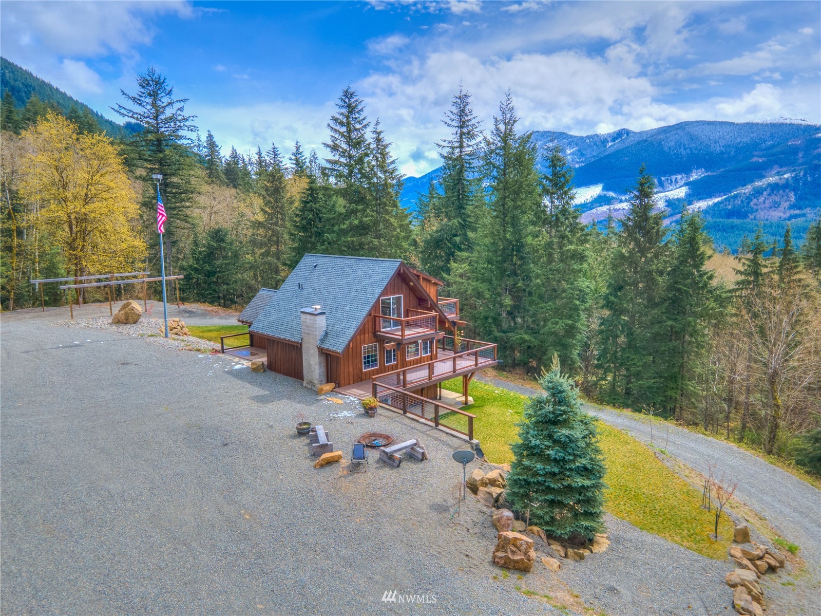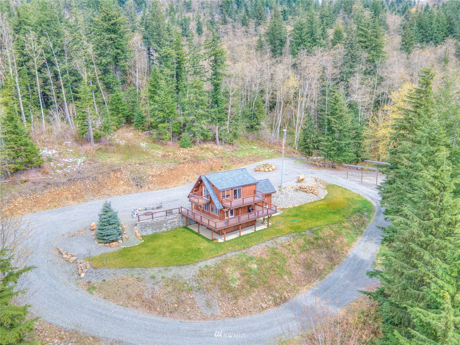 2 PARCELS, SHY 10 ACRES Stunning territorial & sunset views from this meticulously refinished 3 bedroom, 2 bath home on 4.9 acres. LVP flooring throughout. Updated kitchen w/ Quartz counters, SS appliances & bar height island seating. Adjacent living room w/ pellet stove. Primary suite w/ vaulted tongue & groove ceiling, 2 view balconies & a private .75 bath w/ custom tile shower, walk-in closet and dual sink vanity. Forced air furnace w/ heat pump & AC. 2 bedrooms, a rec room & .75 bath in the fully finished daylight basement. Streaming capable internet service. Newer wrap around TimberTech decking on the main. New well in 2017. New roof in 2021. The ultimate private setting yet close to Maple Valley/Covington amenities.