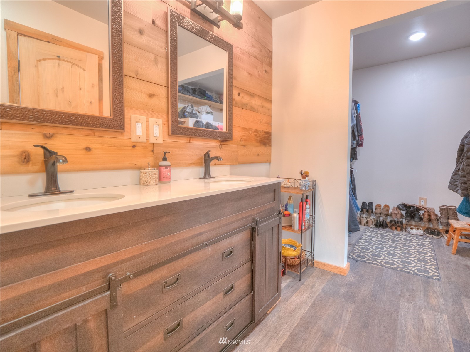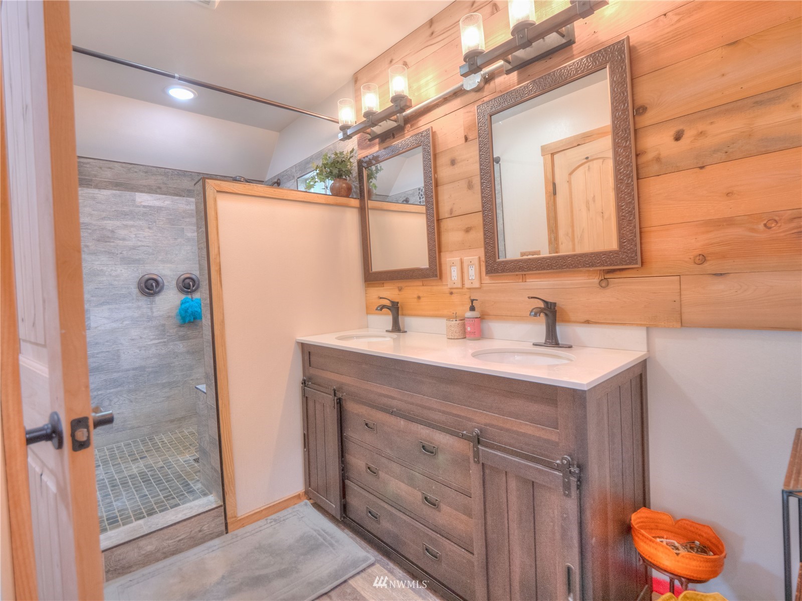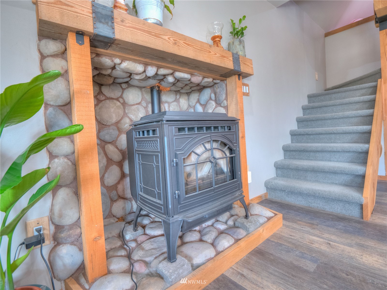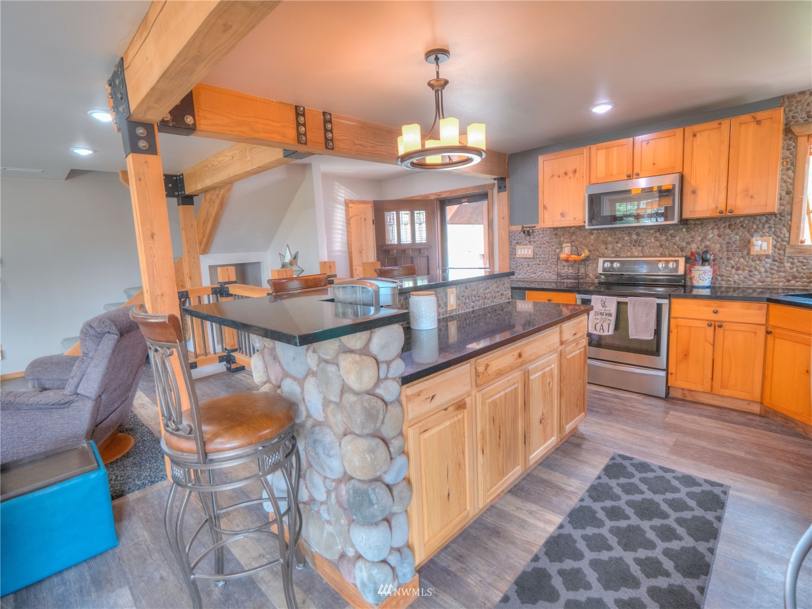 2 PARCELS, SHY 10 ACRES Stunning territorial & sunset views from this meticulously refinished 3 bedroom, 2 bath home on 4.9 acres. LVP flooring throughout. Updated kitchen w/ Quartz counters, SS appliances & bar height island seating. Adjacent living room w/ pellet stove. Primary suite w/ vaulted tongue & groove ceiling, 2 view balconies & a private .75 bath w/ custom tile shower, walk-in closet and dual sink vanity. Forced air furnace w/ heat pump & AC. 2 bedrooms, a rec room & .75 bath in the fully finished daylight basement. Streaming capable internet service. Newer wrap around TimberTech decking on the main. New well in 2017. New roof in 2021. The ultimate private setting yet close to Maple Valley/Covington amenities.