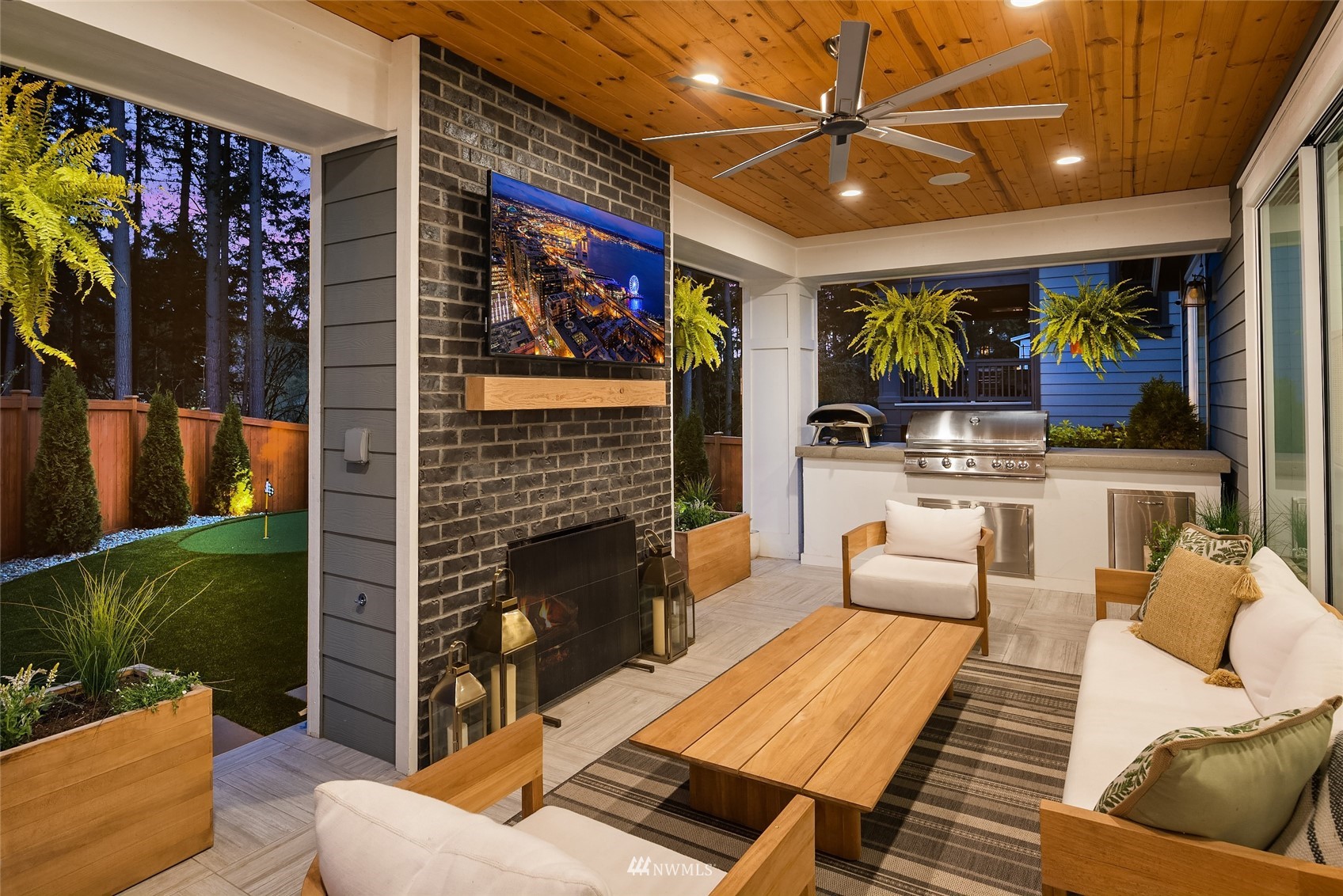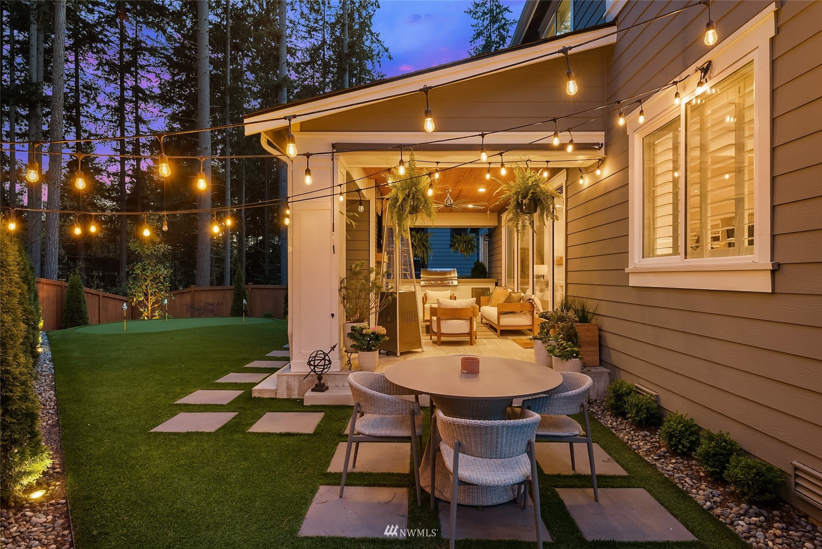 This stylish, well-dressed home boasts elegant finishes, designer fixtures, and quality craftsmanship. Gorgeous hickory hardwood floors span throughout the home. Open concept great room blends into chef's kitchen w/ top of the line appliances, custom vent hood and cabinetry, an oversized center island, and walk-in pantry. 16ft multi-stacking doors transform the great room to create perfect indoor/outdoor flow. Primary suite offers elevated millwork, a spa-inspired bath, and 2 walk-in closets. Fully fenced backyard features outdoor living room w/ a fire place, TV, speakers, built-in gas grill, turf, putting green, and beautiful outdoor lighting. Over $200k in upgrades. Excellent location - close proximity to shopping, dining, and freeways.
