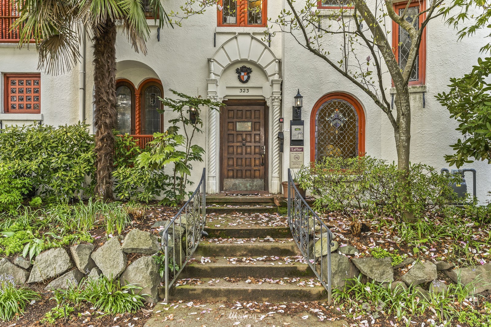 Set in the best part of Capitol Hill, the Spanish Revival-style La Flor is a boutique building with resort-style vibes & historic charm. With just 13 units, this small, well-run HOA offers a comfortable, peaceful place to live just blocks from the bustling dining & nightlife corridors of Cap Hill. This corner unit bathes in warm sunlight with palm trees & lush gardens outside. Inside, find original hardwoods, high coved ceilings, vintage leaded glass & other quaint historic elements & fixtures. A large bedroom, updated kitchen w/ newer appliances, the option to add in-unit W/D, & an extra storage unit bring this unit into the 21st century. Everything is within mins: top-rated dining, bakeries, breweries, Farmers Market, parks, transit!