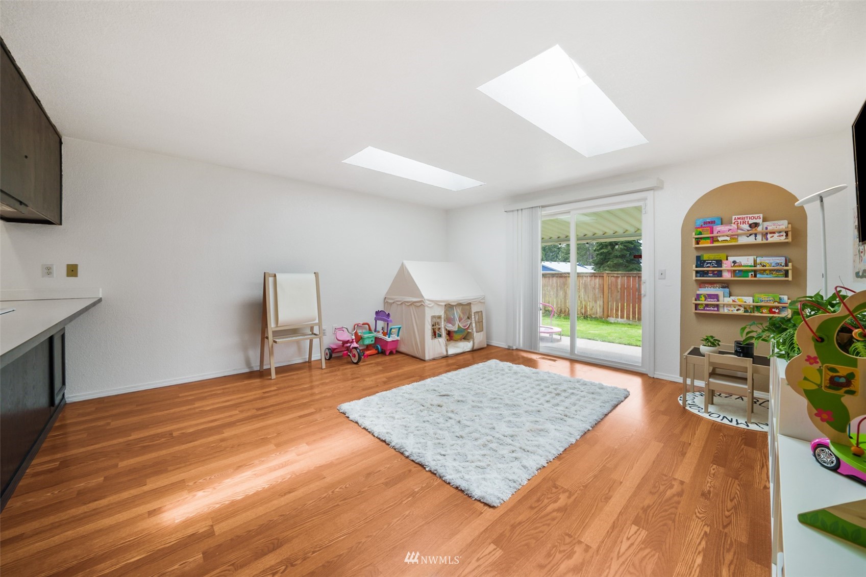 The most charming rambler! 1666 sf, 3 bed/1.75 bath home on a nice, level .14 acre lot! Fenced back yard, covered patio & low maintenance landscape. Laminate hardwood floors, vaulted ceilings and skylights give this home a very spacious feel! Formal living with beautiful wood fireplace, family room and formal dining with slider access to the back. New interior paint throughout! Tons of great space for entertaining! Generous kitchen offers tile floors, recently painted cabinets and plenty of storage/prep space. All appliances are included, even the washer/dryer! Primary Suite offers a private 3/4 bath (newly installed light fixtures) and his & her closets. Excellent location - minutes to shopping, dining and easy freeway access.