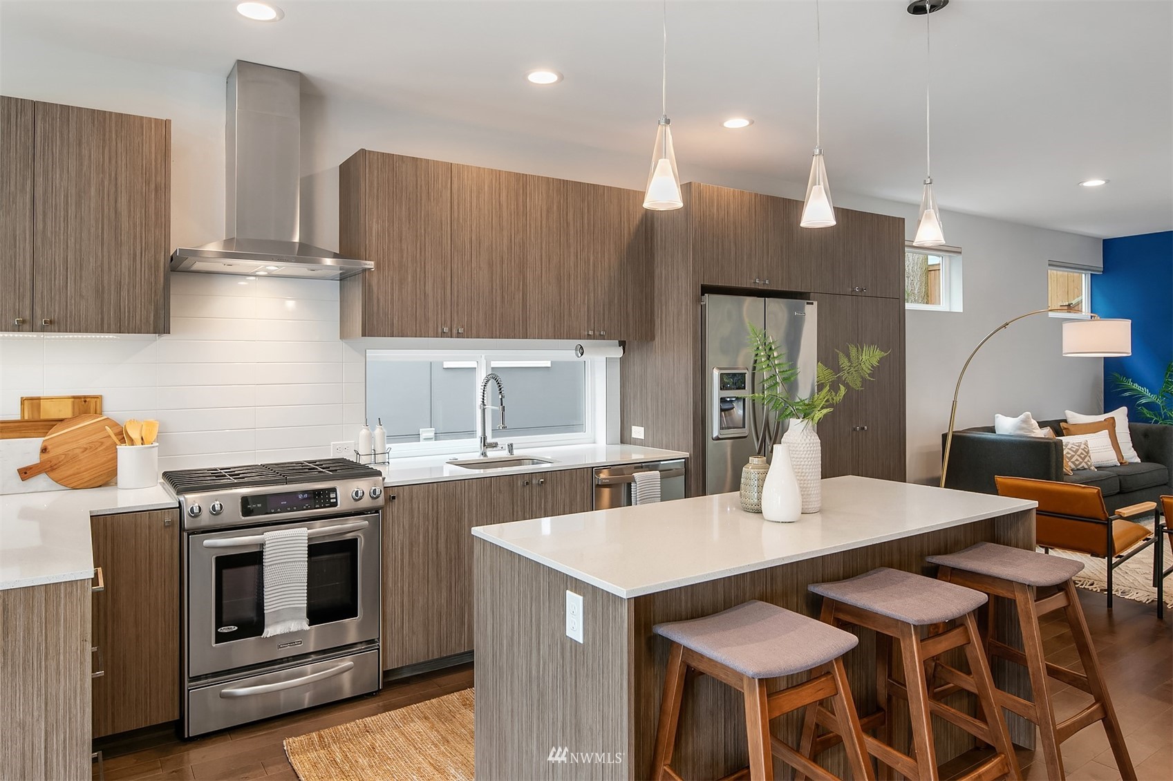 Rare opportunity to purchase an Isola home that looks brand new! This modern Built Green hm is packed w/energy efficient features for savings & function. Quality finishes throughout a spacious & open flr plan. Gourmet kitchen w/quartz counters, custom cabinets, instant hot & wet bar. Family rm w/fireplace & 75” smart TV. Loft enclosed for private office, bonus rm, 4th bd. Lrg primary suite w/spa-like bath & remote blinds. High ceilings, hrdwd flrs, lots of natural light & plenty of storage. Zone AC w/app control, USB outlets, Fiber optics & HRV system. 2 car garage w/Flow Wall storage. Driveway & off-street parking. Easy access to Hwy99, I5, buses, grocery, light rail, ride shares. Blocks from the community pool, Northacres park & schools!