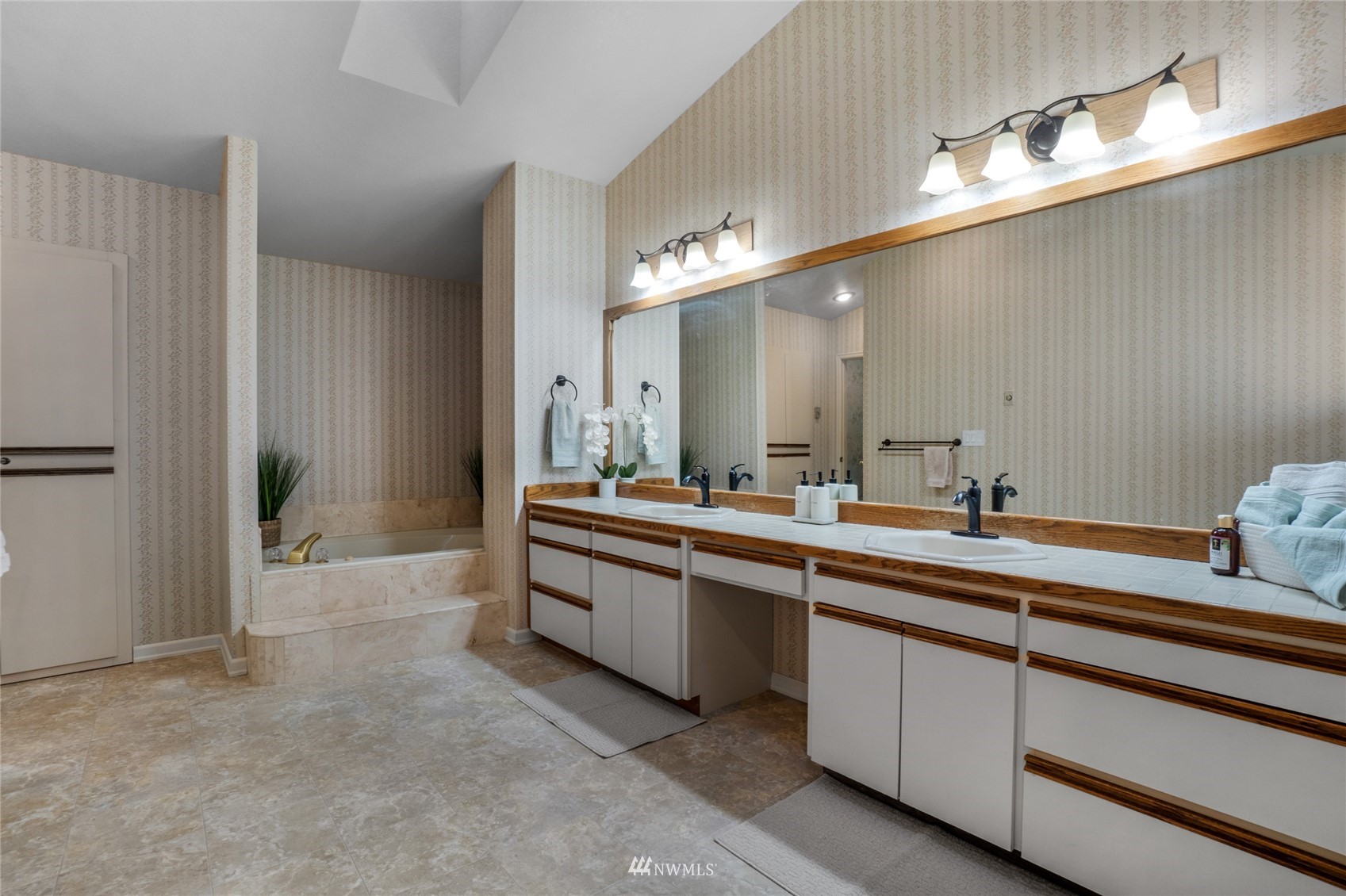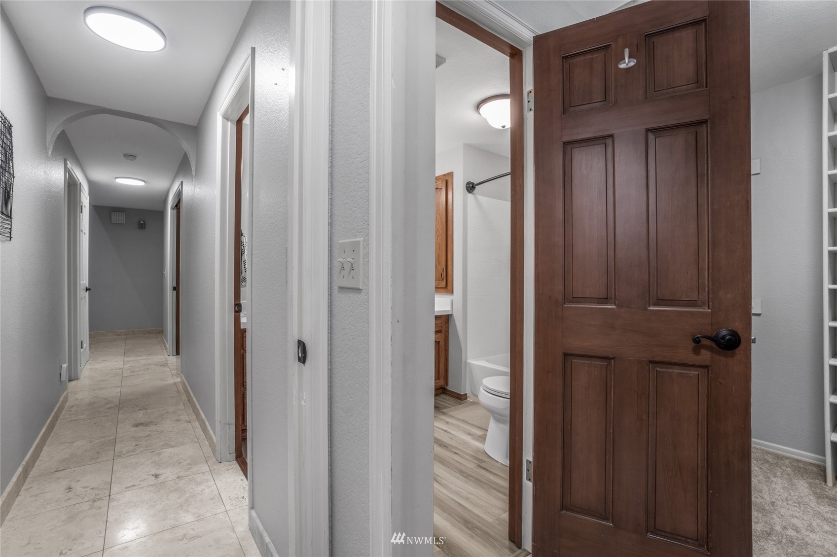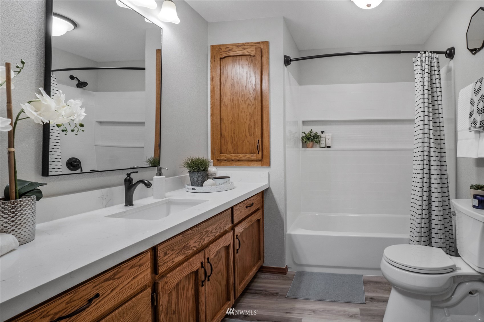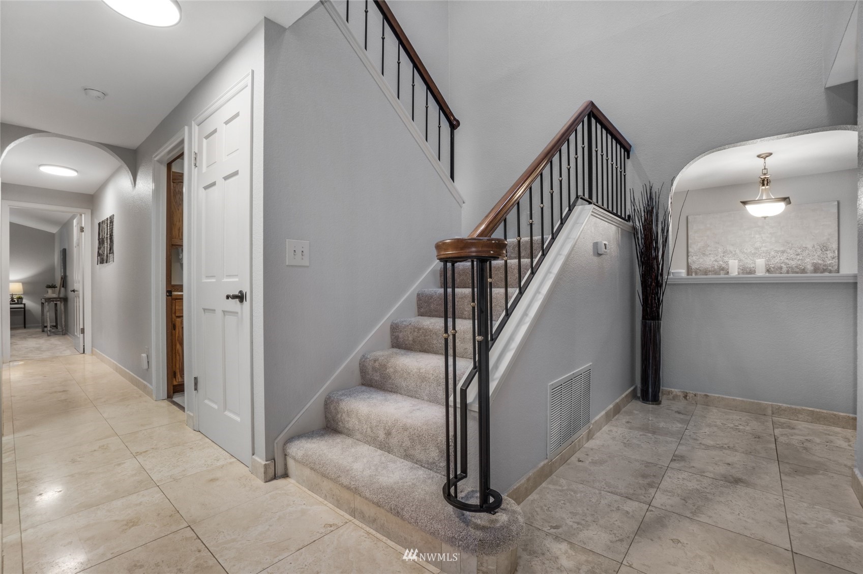 Nestled in the heart of Mill Creek and all that it has to offer is Trilliuim Boulevard. Enter into your massive main floor living space with stylish updates/finishes throughout including travertine tile.The chef inspired & fully updated kitchen features white shaker cabinets, custom deep sink, & sleek marble countertops. Main floor living is easy with an expansive room & full bath en-suite, home office/den and beautiful entertaining living room. Fully fenced backyard features a patio space with private and secluded greenspaces and updated deck-a great place to gather with friends or relax after a long day. The top floor acts as your private oasis,2 walk in closets,5 piece primary bathroom, and cozy fireplace!2 car garage and storage galore!