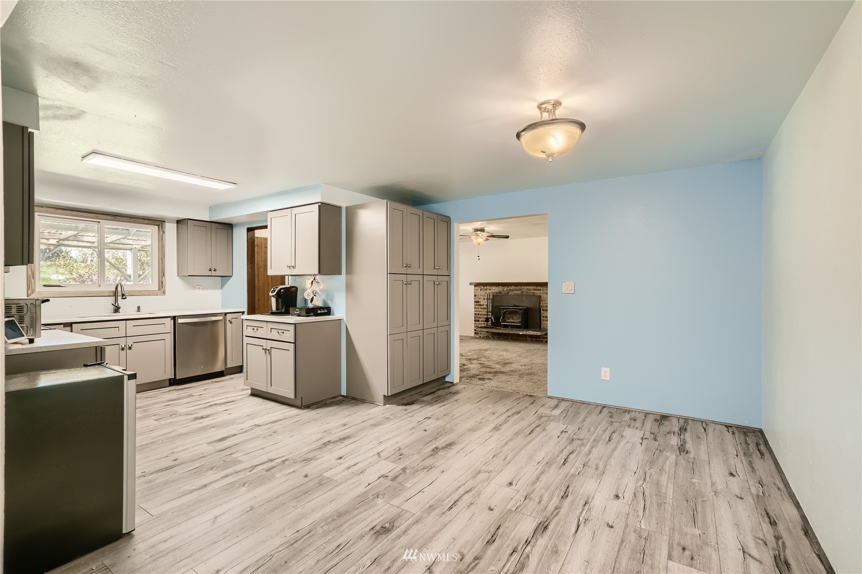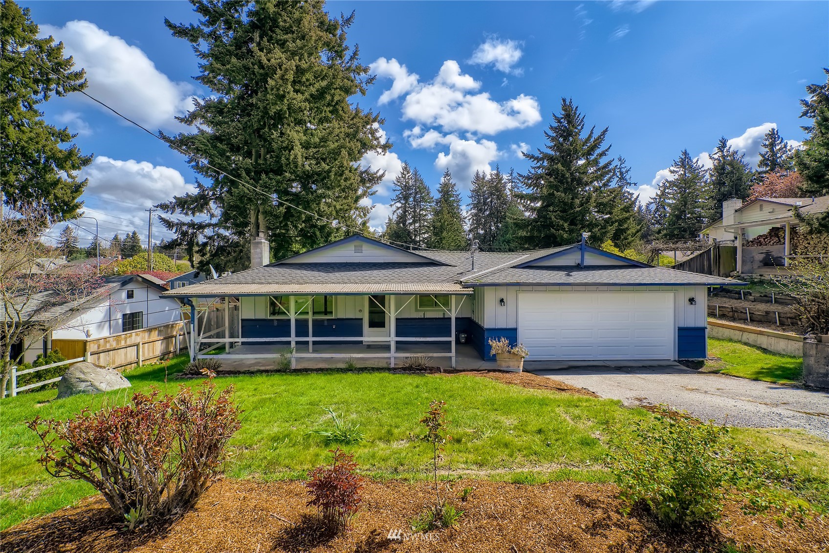 Incredible location for this updated one level home....close to freeways, shopping, parks and more. Enjoy the newly renovated kitchen with its wonderful soft grey cabinetry,white quartz counters and new flooring. This home features two living areas with the formal living room featuring a wood burning fireplace to the more casual great room off of the kitchen and dining room, both getting new carpeting before closing. The primary suite is generous in size and has a brand new 3/4 bath! With two additional bedrooms and a good sized hall bath, this home has lots of space to stretch out. Brand new insulated garage door, mature landscaping that features fruit trees, rose bushes and more. Great back yard with a shed and room to play!