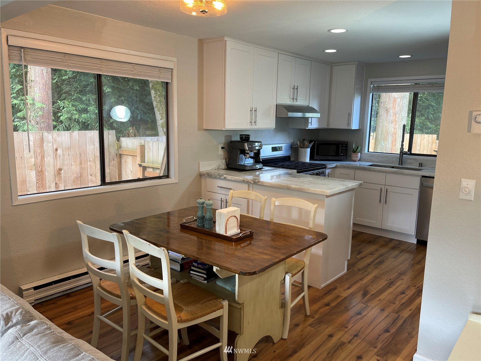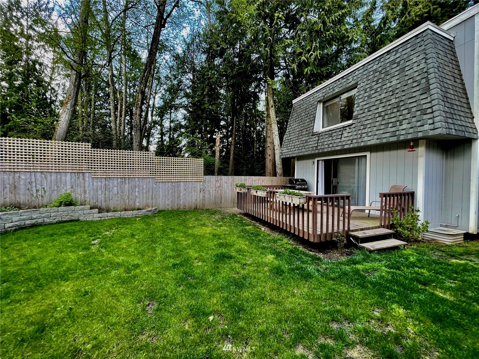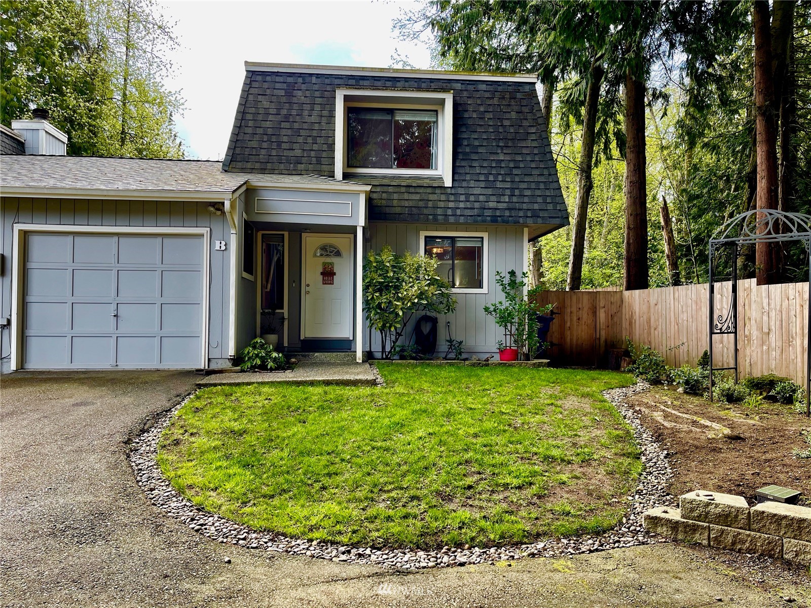 Updated! 2 bedroom, 1.5 bath condo in great neighborhood with private wooded setting. New kitchen with stainless appliances, including gas range. Kitchen has large pantry and opens to dining area and family room with sliders to spacious deck. Gas fireplace sets the mood and warms you on those cooler days. All new yard, fencing, drainage and garden beds. New roof, newer hot water tank. Upstairs features 2 sizable bedrooms. Master features walk-in closet. Huge linen closet in hall. Both baths have been updated. Extra long garage offers generous laundry area and assess to fully fenced back yard.