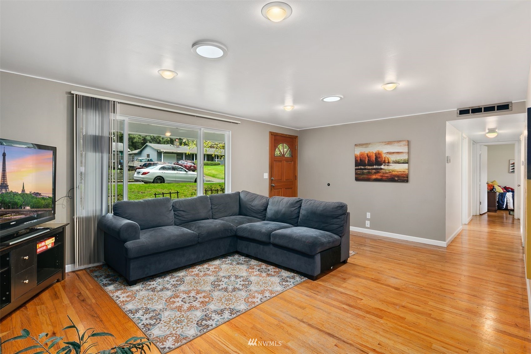 Nice & clean, move-in ready 3 bedroom, 1 bath rambler with a 1 car garage. Beautiful original hardwood floors & economical gas heat. White vinyl insulated windows w/ blinds. The living room features a wood burning fireplace w/ gas starter & blower. Nice dining room w/ a slider to the multi-level covered deck, perfect for al fresco dining. The kitchen offers lots of counter space, stainless appliances with 5 burner gas range & walk-in pantry. Bath with heated tile floor, new cabinet & tile tub surround. The fully fenced yard is just under 1/4 acre!