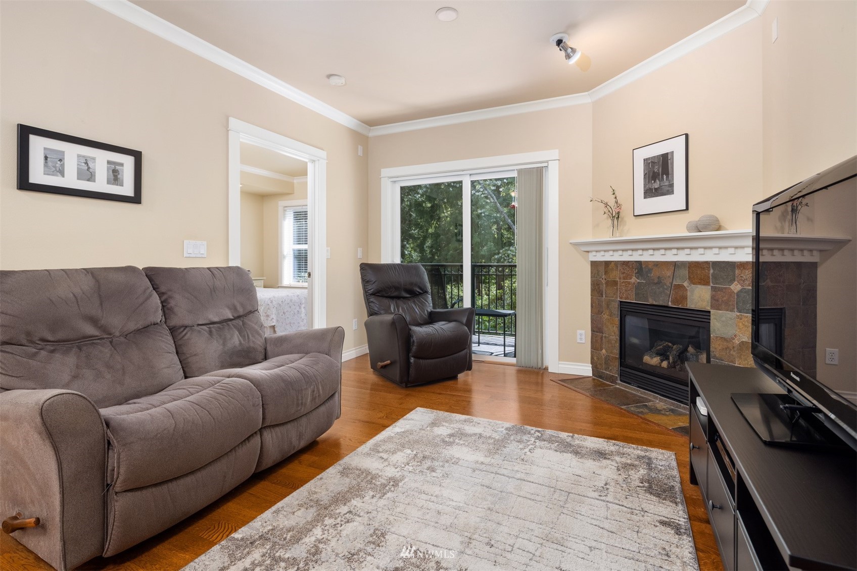 Modern, upscale ground floor unit in Old Fairhaven motif that overlooks green belt and Padden Creek. Easy walk to Shops, Dining, Entertainment, Parks, Trails and Services. In-floor Radiant Heat, Gas Fireplace, 9' celings, crown molding & other modern features. 2 Assigned Parking Spots and a Storage Closet in secure underground garage.