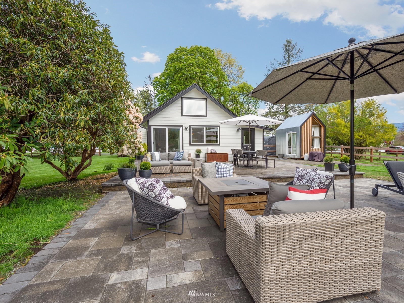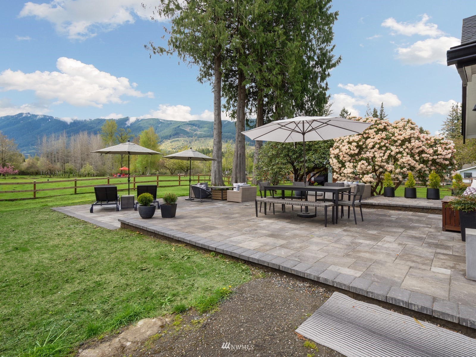 Almost 3 acres w/views of Mt Si & sits next to Tollgate Farm Park, this charming farmhouse has been completely renovated from top to bottom - Solid Hardwood flrs, over 50k in back/front patio + 40k in fencing. Chef's dream kitchen ftrs new appl, quartz counters & gray cabinets. Expansive family rm w/vaulted ceiling. Main flr beds share a full bath & private master suite is on the upper level. Work from home in your separate exterior office - internet and 20amp circuit. Additional out buildings include a workshop & pole barn for your toys. Don't miss beginnings of a tiny home & direct access to Tollgate Park for trails. Relax on your expansive back patio and take in views of Mt Si and all that nature has to offer - Over 200k in upgrades