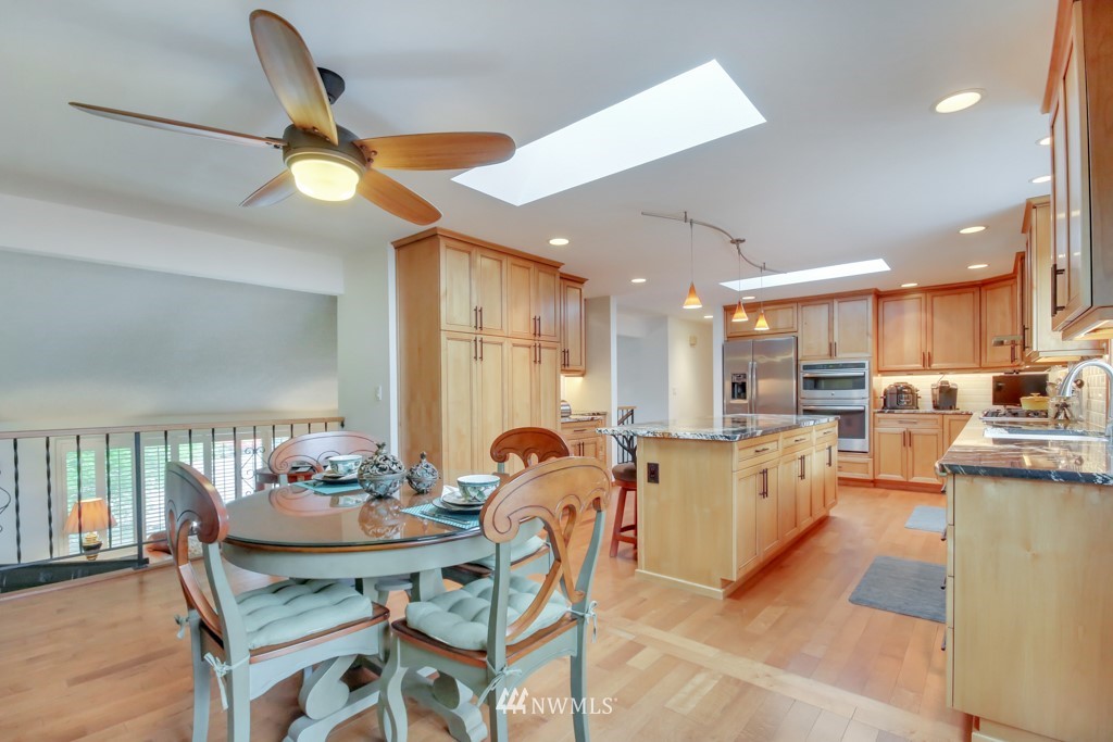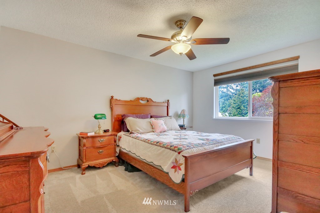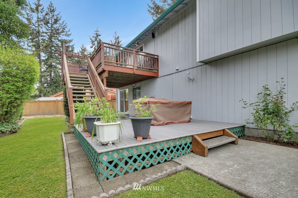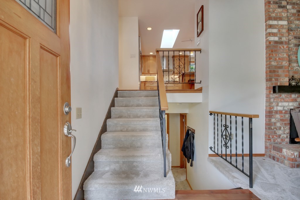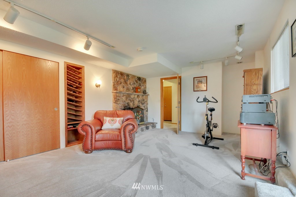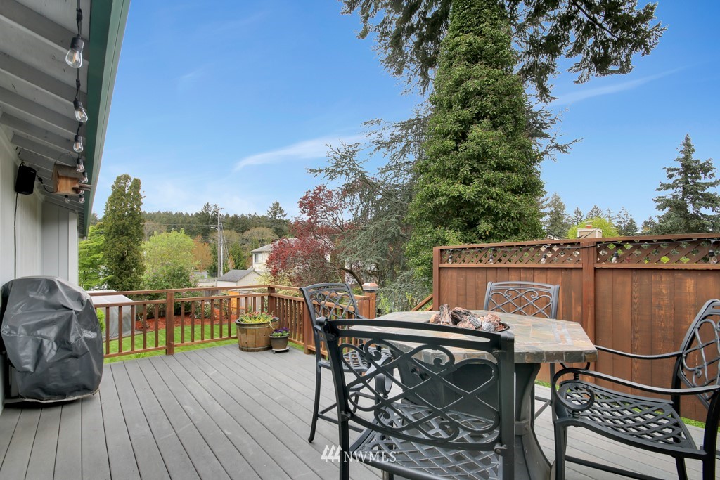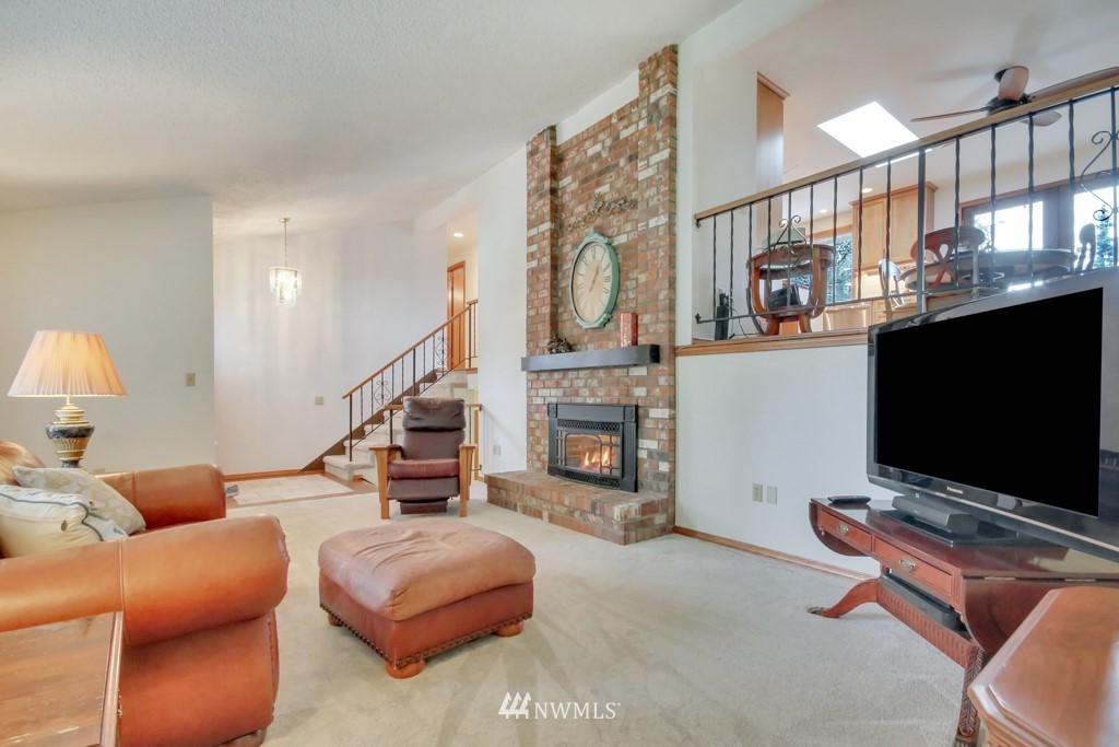 Welcome to this well maintained home near Chambers Bay! You will appreciate all of the updates completed for you! As you enter, there is a formal living room w/gas fireplace & new carpet. Up 1/2 flight of stairs is the remodeled kitchen that includes granite counters, a large island w/bar seating, pantry storage, wine fridge, & formal dining space. Down the hall are 2 bedrooms, a full remodeled bath, & a Primary Suite w/double closets, new carpet, remodeled bath w/tile floors & shower surround. Large bonus room downstairs w/new carpet, wood burning fireplace, remodeled 3/4 bath. & lg storage space. The 50 yr roof was new in 2017, There is a 2 story Trex deck & spacious yard to entertain. New garage doors, close to shopping, schools & Golf!