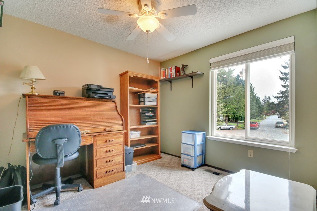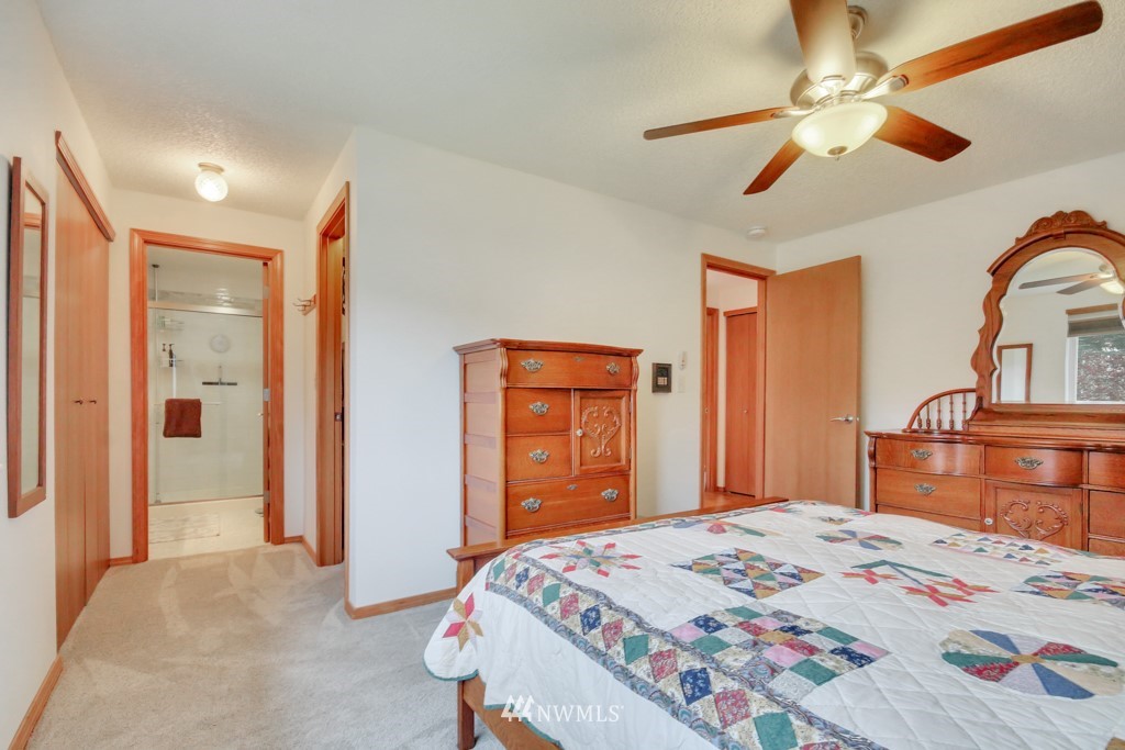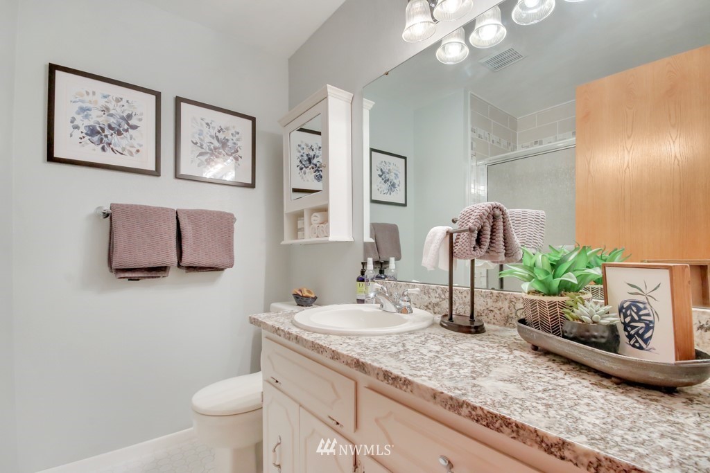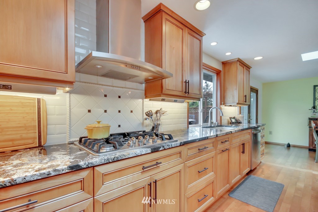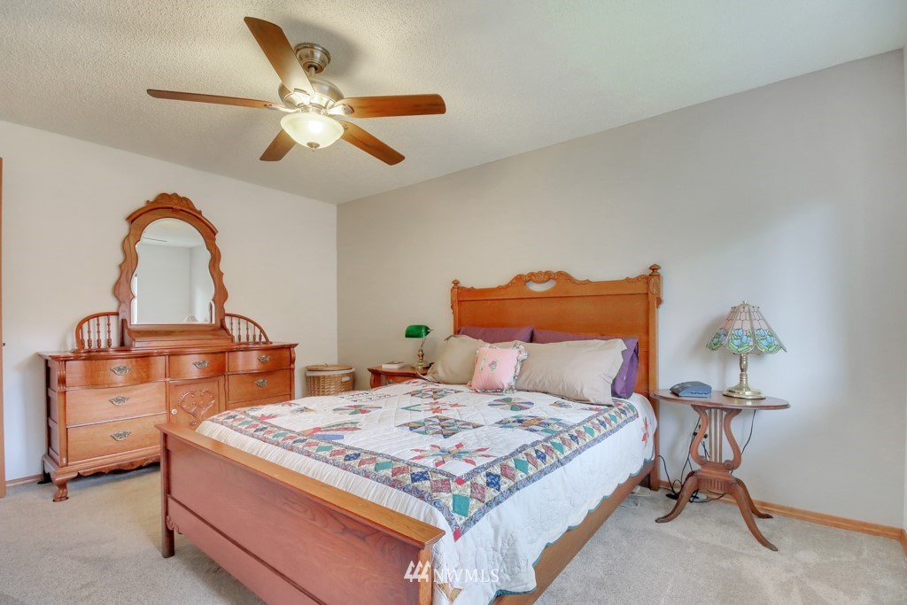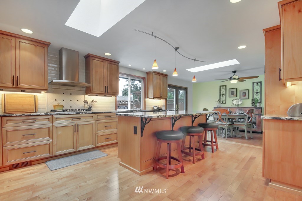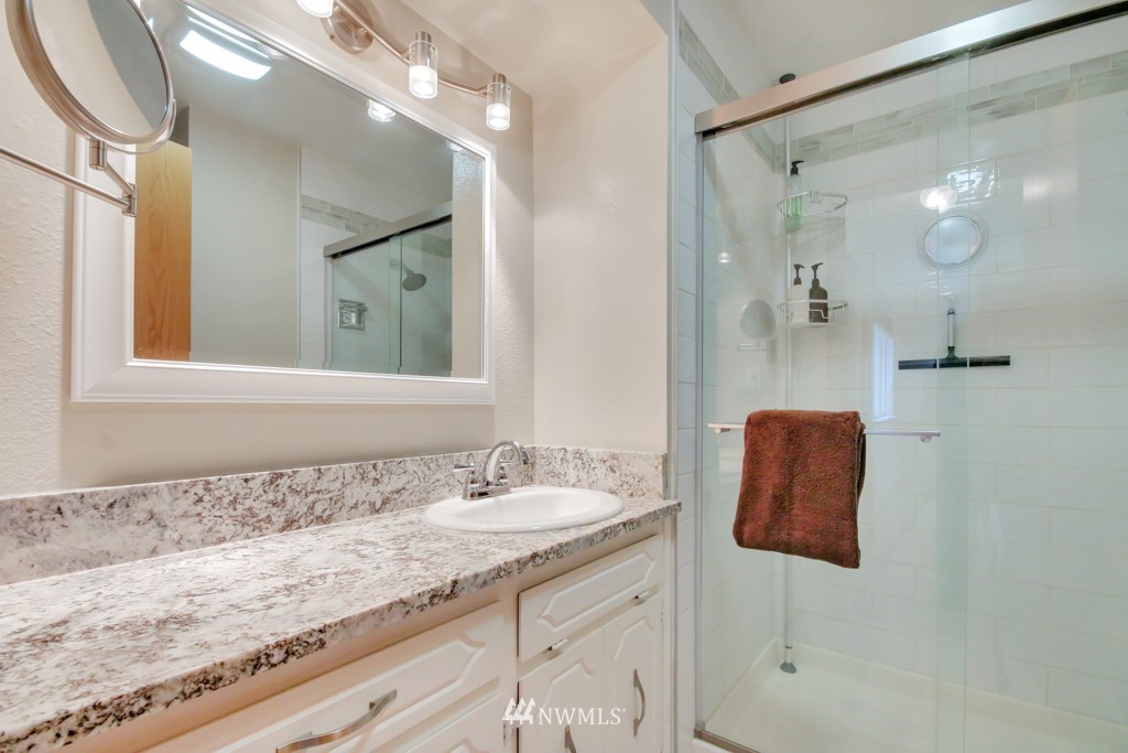 Welcome to this well maintained home near Chambers Bay! You will appreciate all of the updates completed for you! As you enter, there is a formal living room w/gas fireplace & new carpet. Up 1/2 flight of stairs is the remodeled kitchen that includes granite counters, a large island w/bar seating, pantry storage, wine fridge, & formal dining space. Down the hall are 2 bedrooms, a full remodeled bath, & a Primary Suite w/double closets, new carpet, remodeled bath w/tile floors & shower surround. Large bonus room downstairs w/new carpet, wood burning fireplace, remodeled 3/4 bath. & lg storage space. The 50 yr roof was new in 2017, There is a 2 story Trex deck & spacious yard to entertain. New garage doors, close to shopping, schools & Golf!