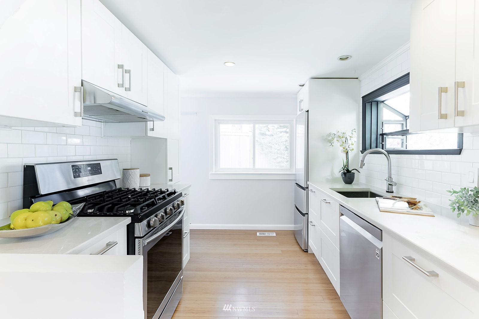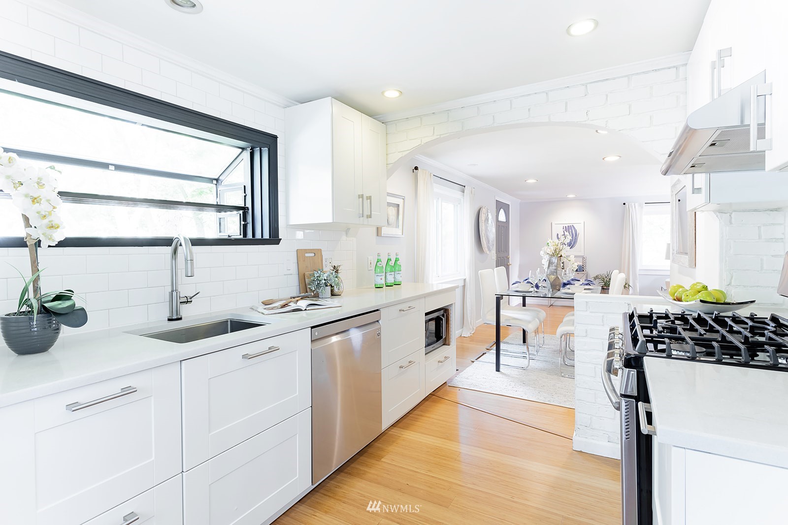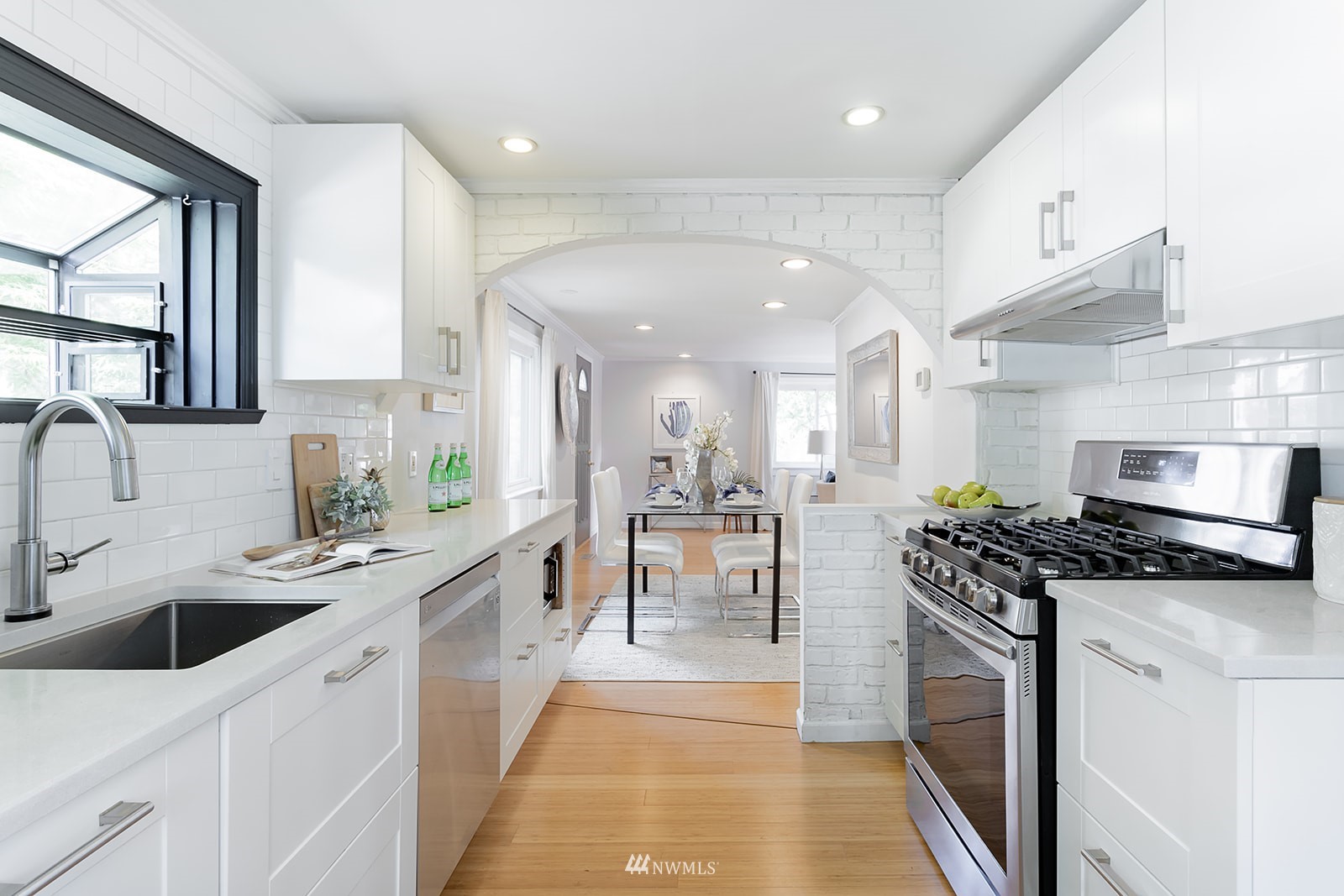 Welcome to Wedgwood! Don’t miss out on this 2 bed 1 bath updated Cape Cod home on a large lot with plenty of off street parking and a private 2 car garage.This is the perfect condo/townhome alternative. Stunning, completely updated kitchen, ready for the aspiring chef, with a gas range and quartz counters. The spacious primary bedroom (can fit a King) boasts a walk-in closet and ensuite access to the updated bathroom Don’t miss the lower level which includes a second bedroom, office/flex space and laundry room with exterior access - possible room for an additional bath? Possible ADU addition in the back yard/garage? Pre-inspection and sewer scope is available.