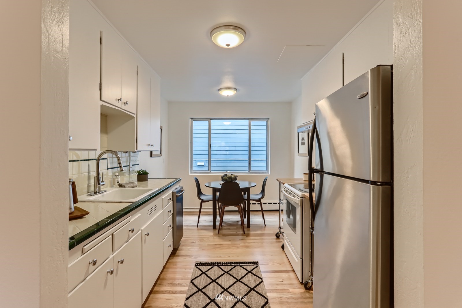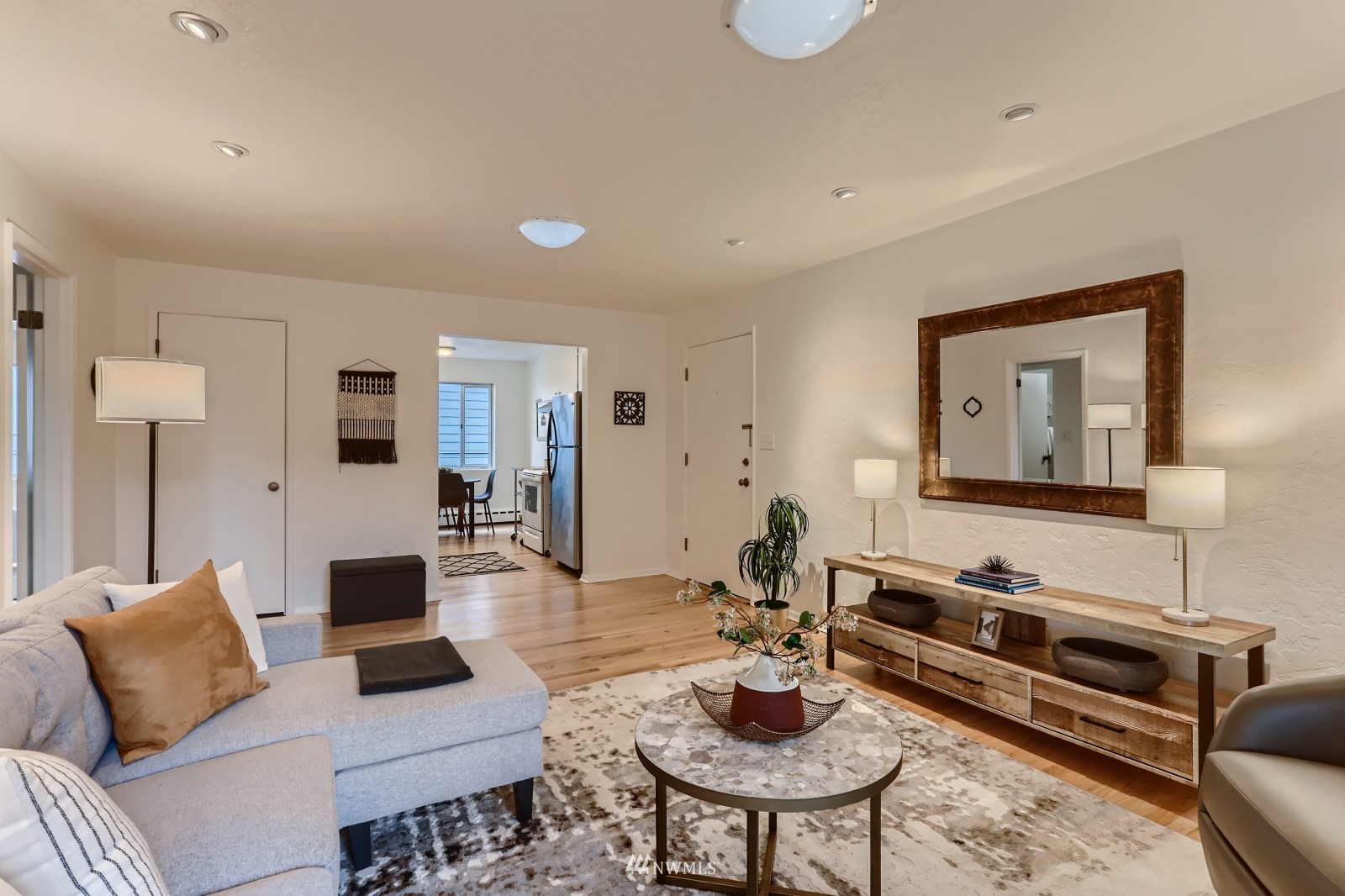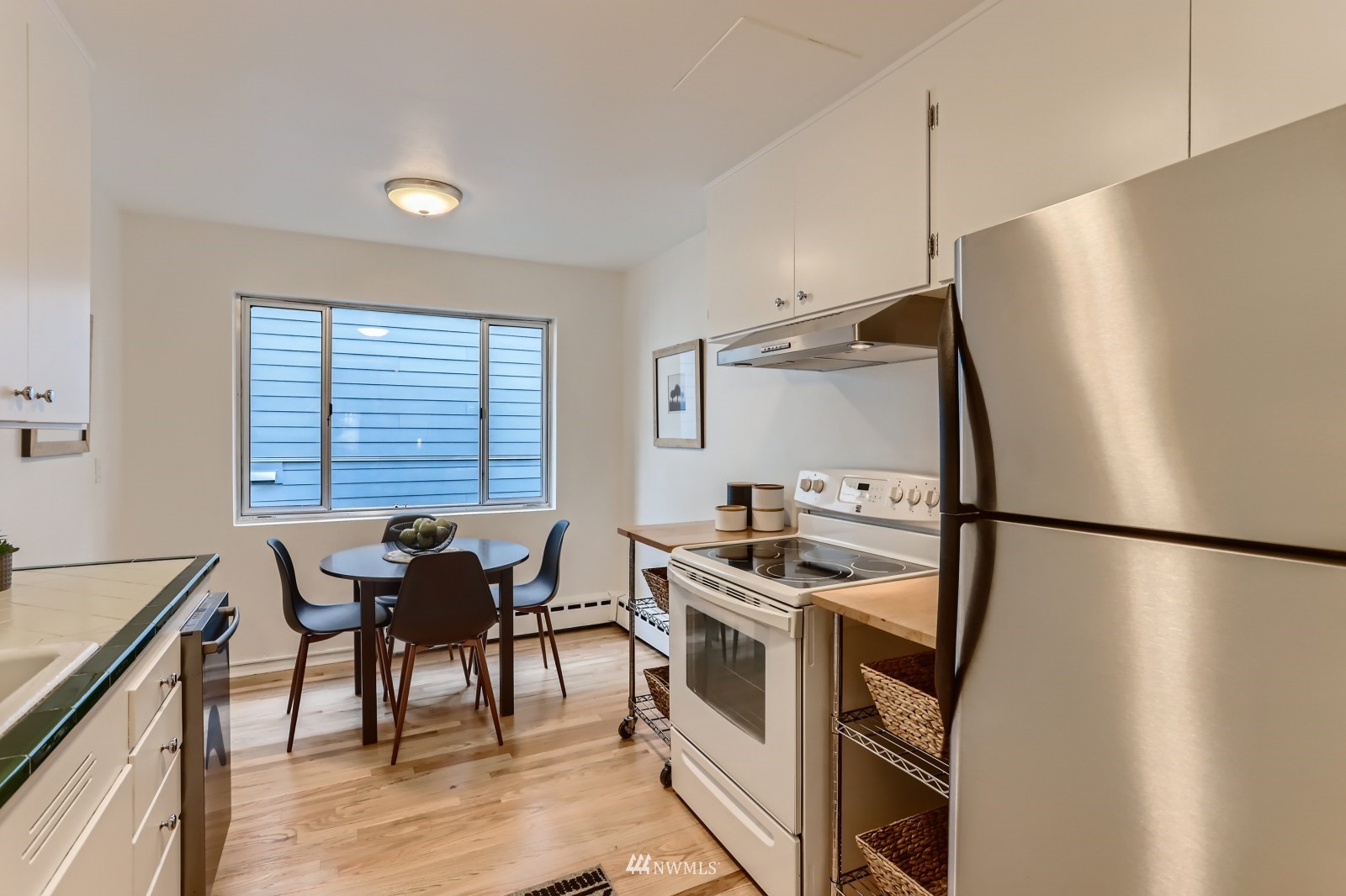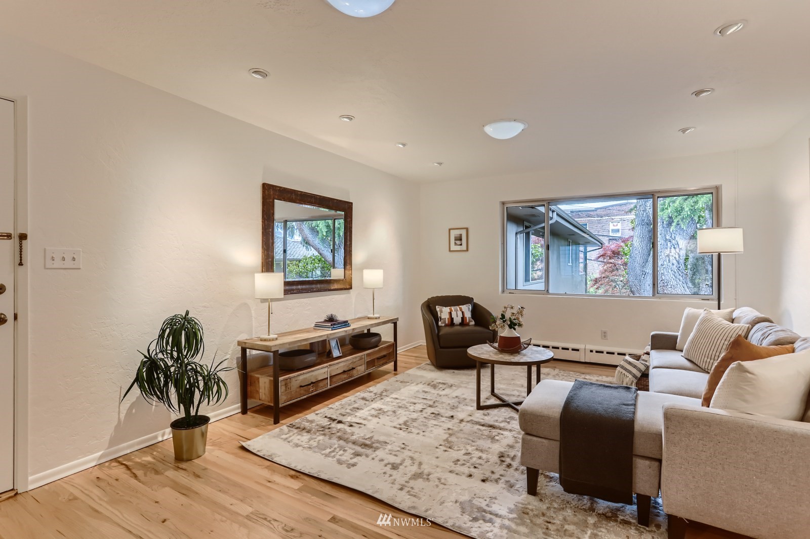 New Price! Centrally located in Lower Queen Anne, this private courtyard facing unit feels like an in city retreat. Spacious and light filled, enjoy newly refinished hardwood floors and fresh paint throughout. Spacious primary bedroom, 2nd bedroom provides flexibility for WFH office or guest room. Updated appliances in kitchen and updated bathroom complete this gem. Laundry and storage unit located on lower level. Close proximity to neighborhood restaurants, coffee, shops. Seattle Center and Climate Pledge Arena are blocks away. Minutes to SLU, Downtown, and transit. Well run HOA, No Rental Cap, Pet friendly! Washer/Dryer can be installed in unit. Please stop by today.